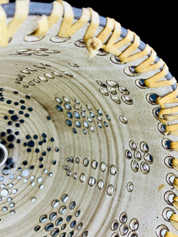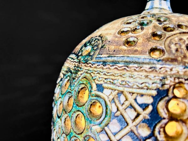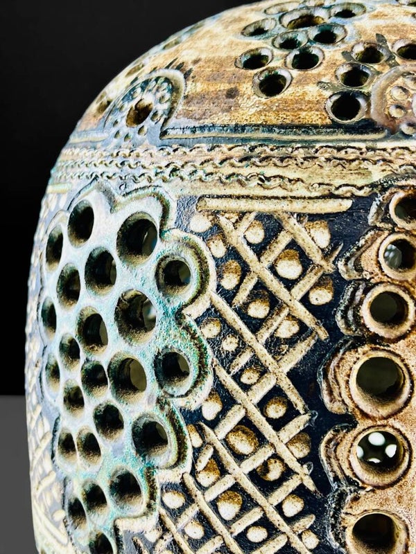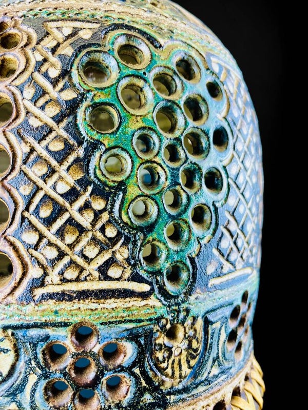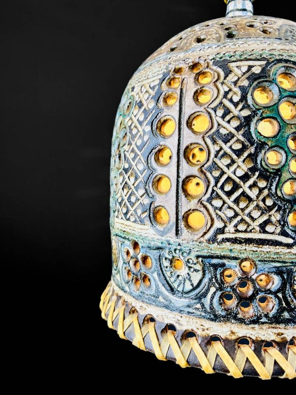 Beautifully elaborated hanging lamp by Henk Jacobs, a piece from his studio in Gennep, "Pottery De Champignon".
