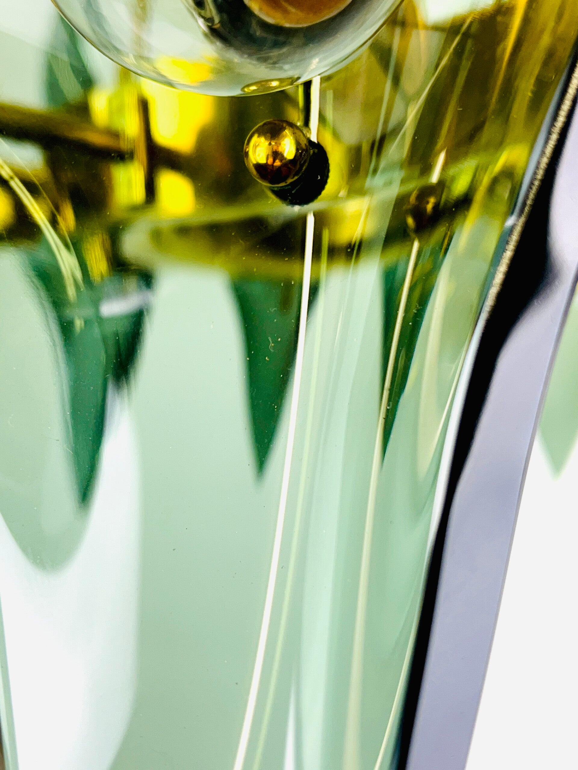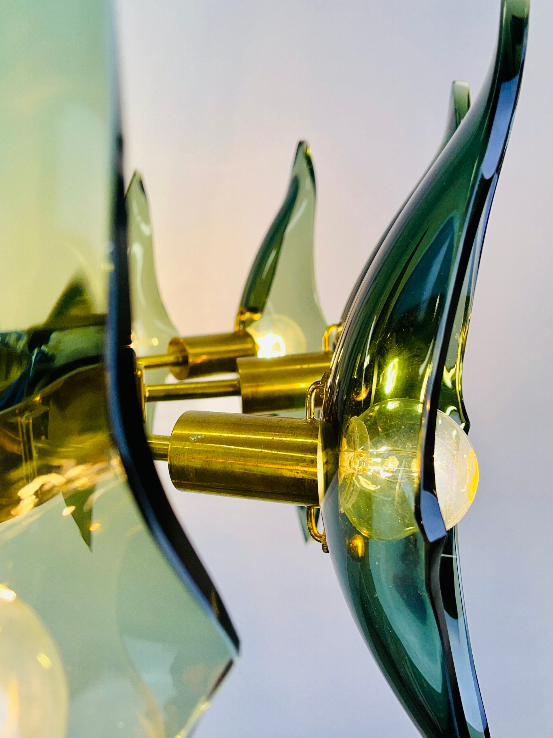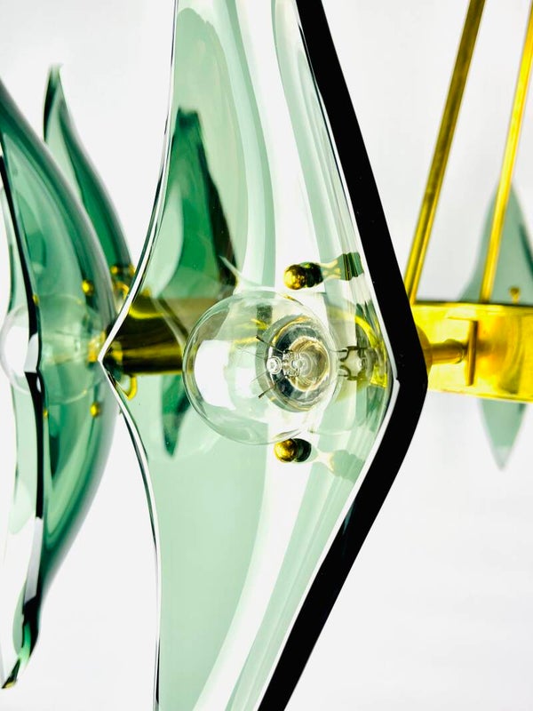 The glassware is made of green cut crystal. The wall mounting is made of solid bronze, high-quality finish, all parts are made of solid polished bronze.