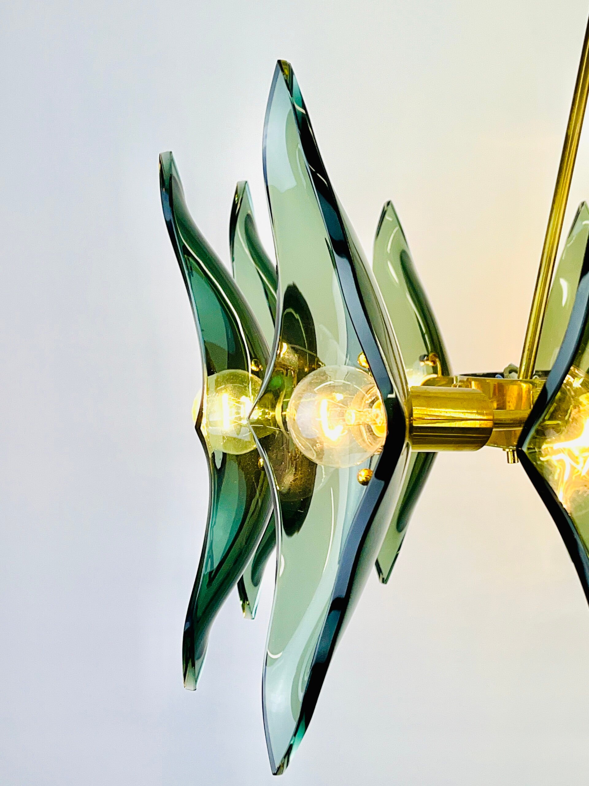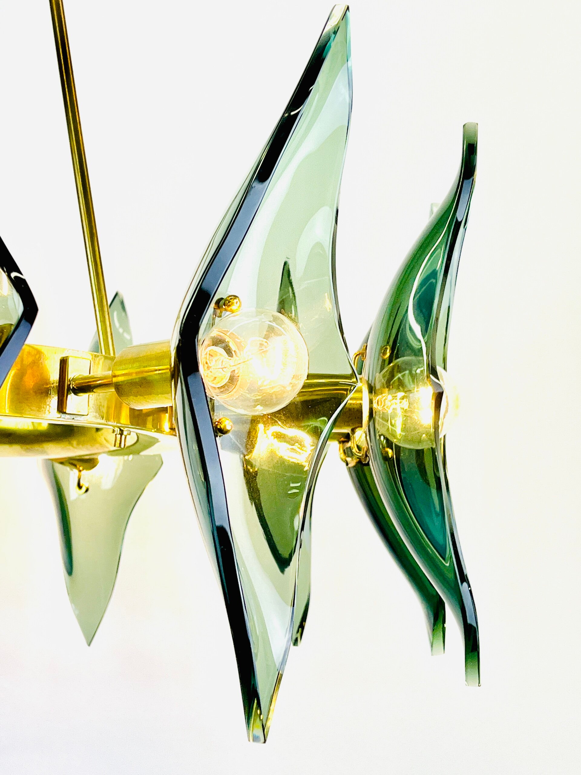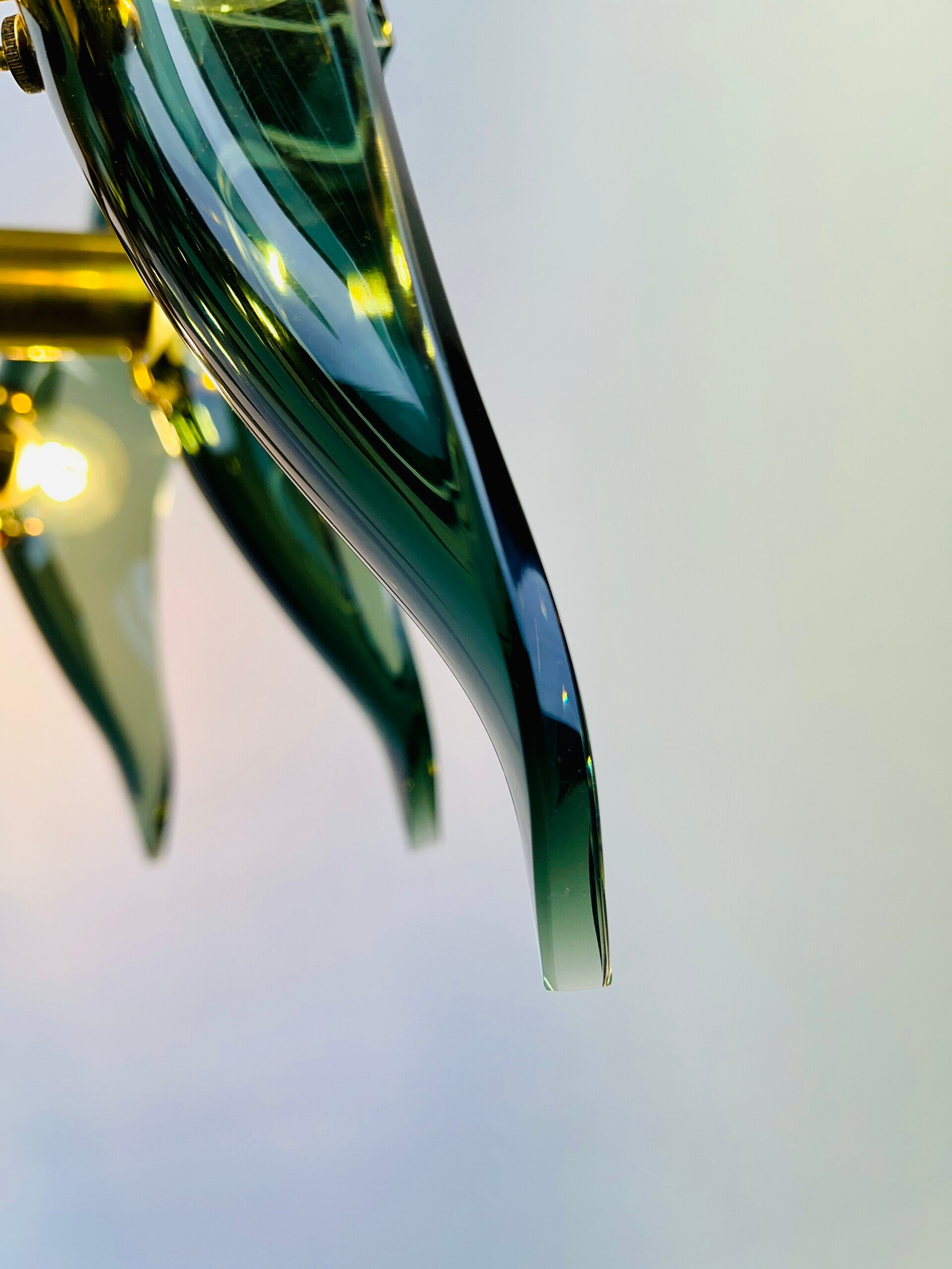 The glassware is made of green cut crystal. The wall mounting is made of solid bronze, high-quality finish, all parts are made of solid polished bronze.