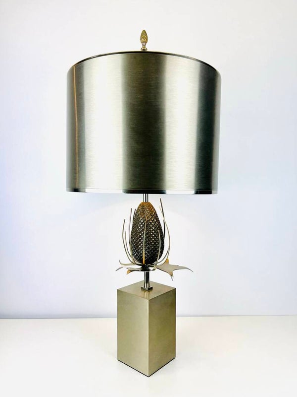 Beautiful bronze table lamp type Chardon from the naturaliste collection, designed by Chrystiane Charles for Maison Charles. The lamp is marked on the back.