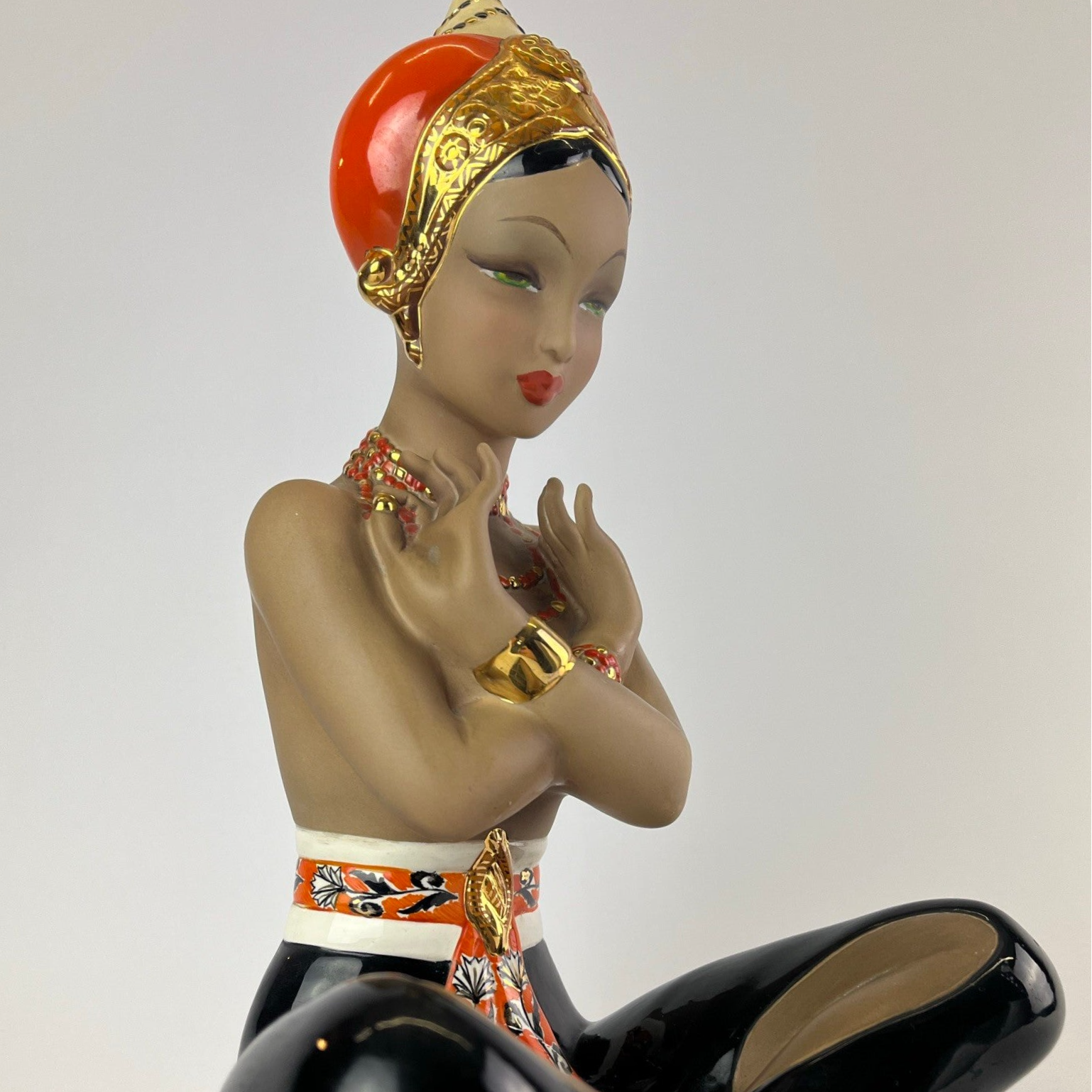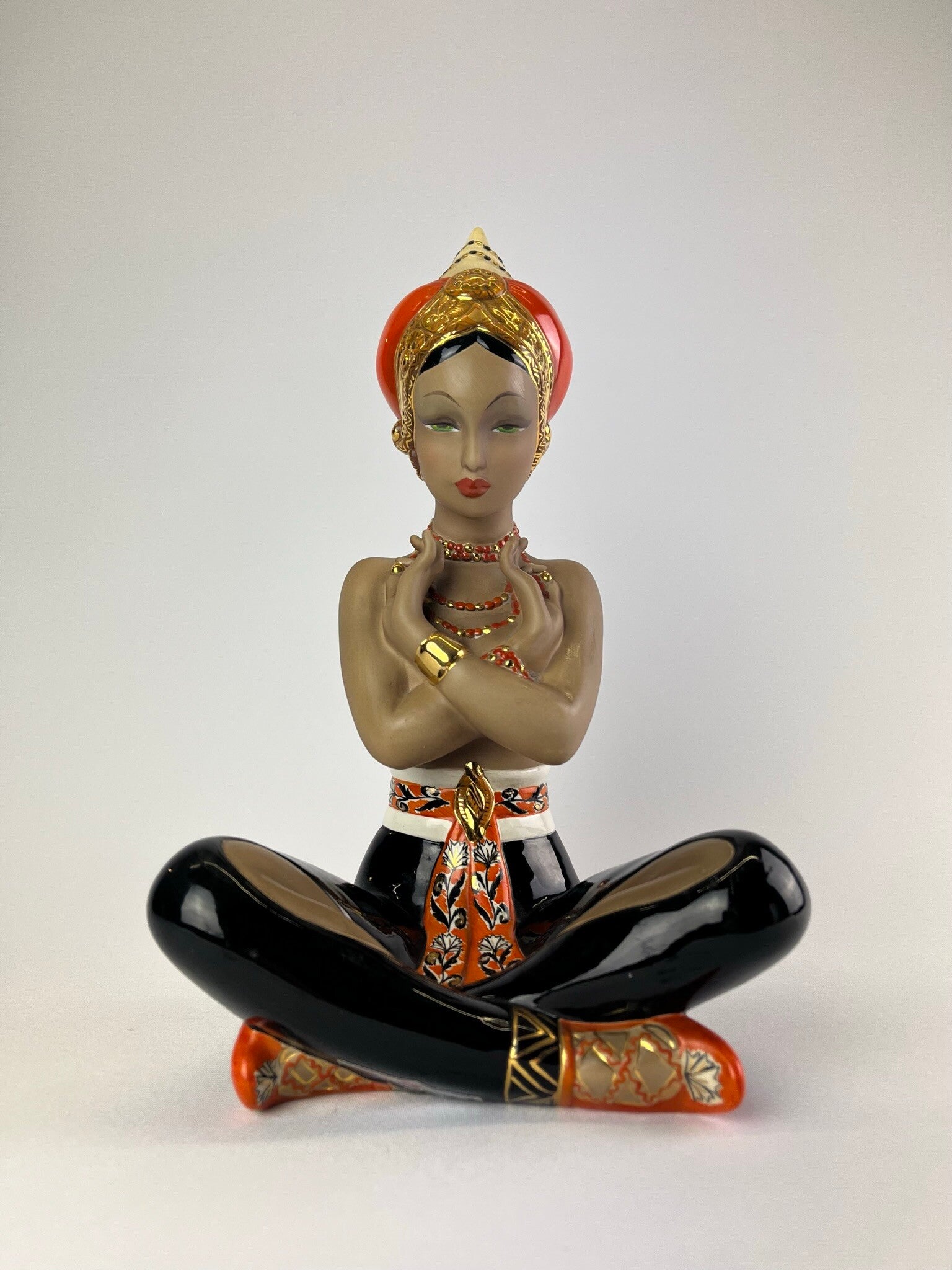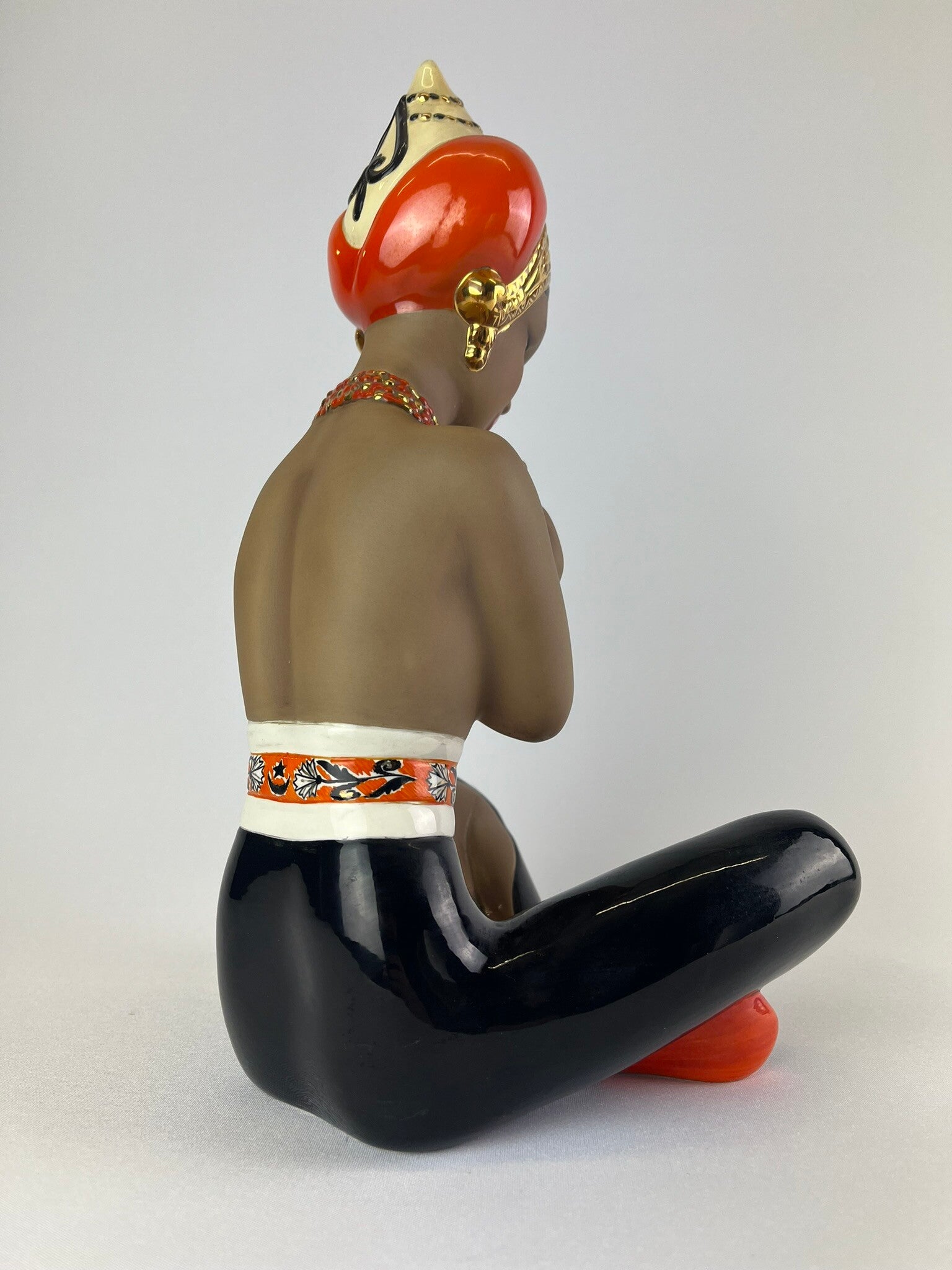 CIA Manna, Danzatrice orientale, Polychrome underglaze and opaque cast ceramic sculpture. Turin, 1950s.