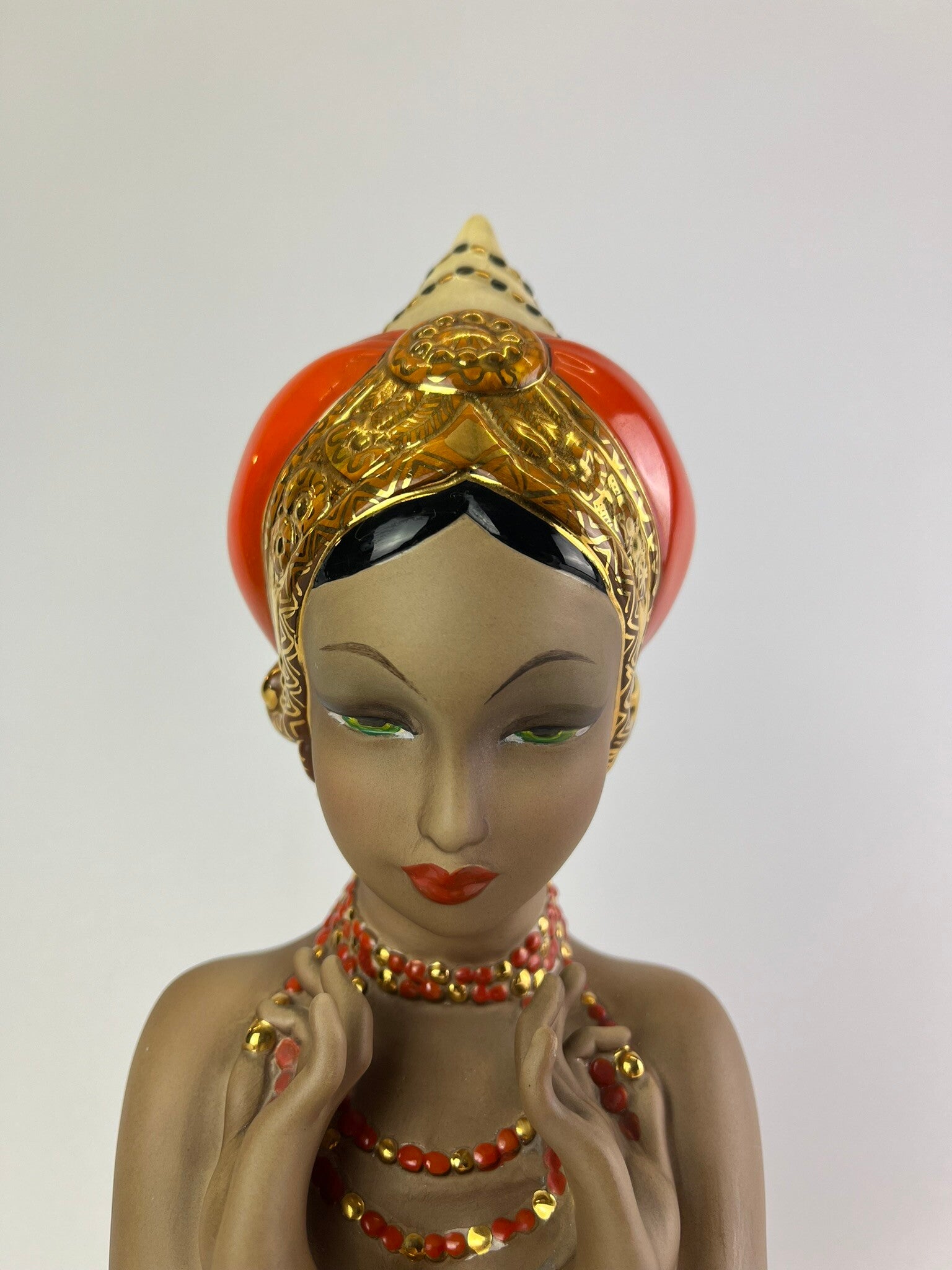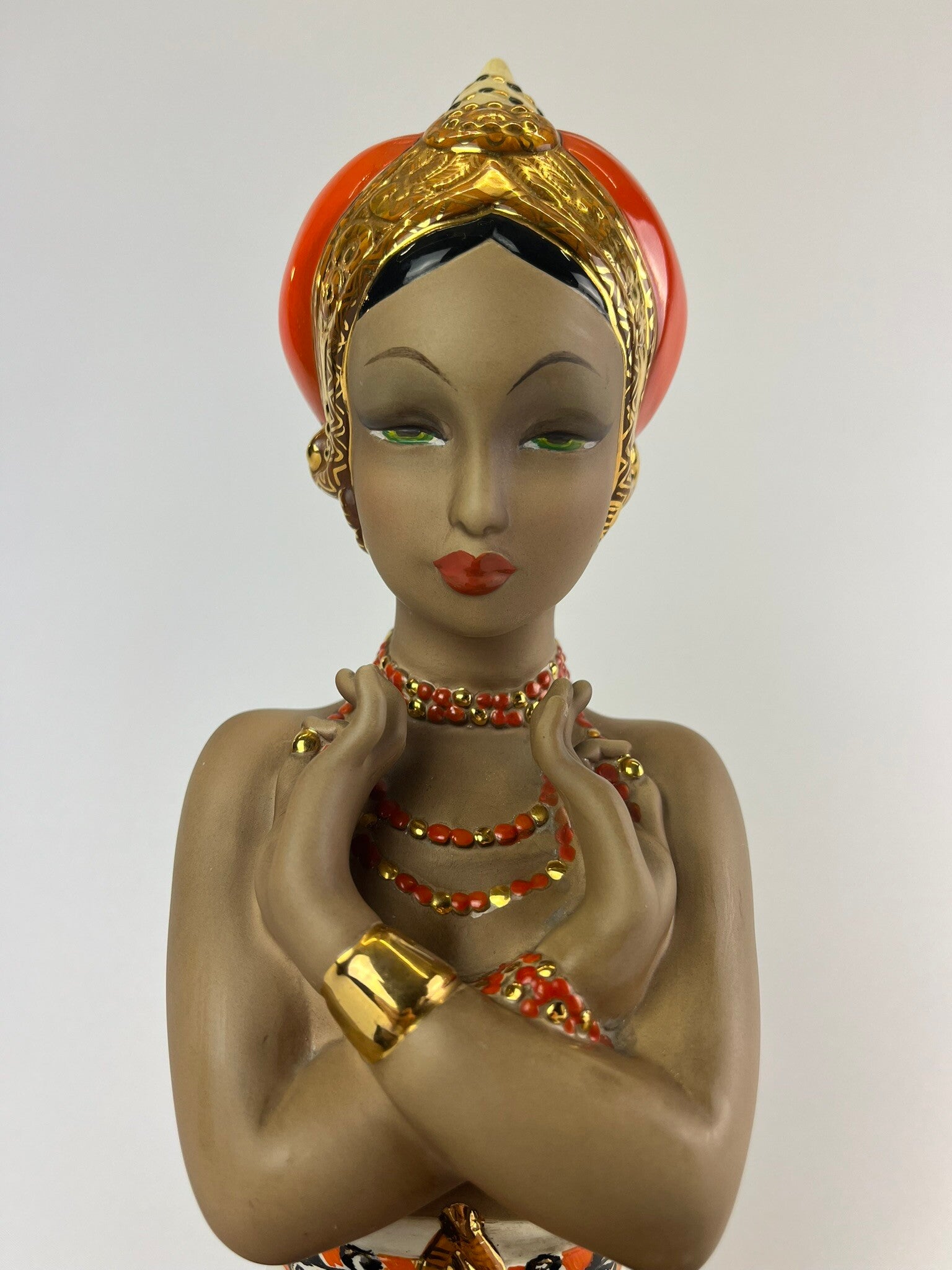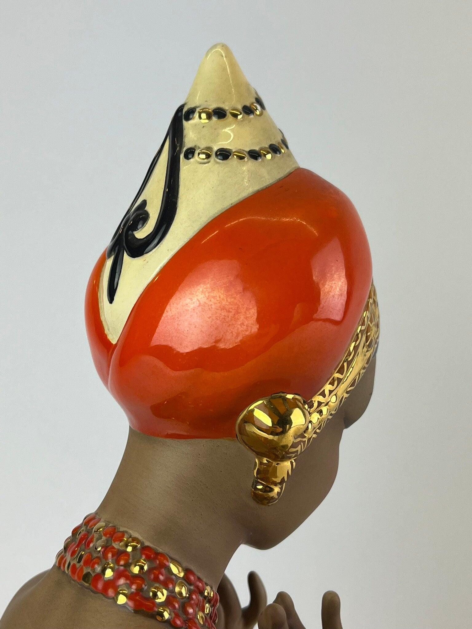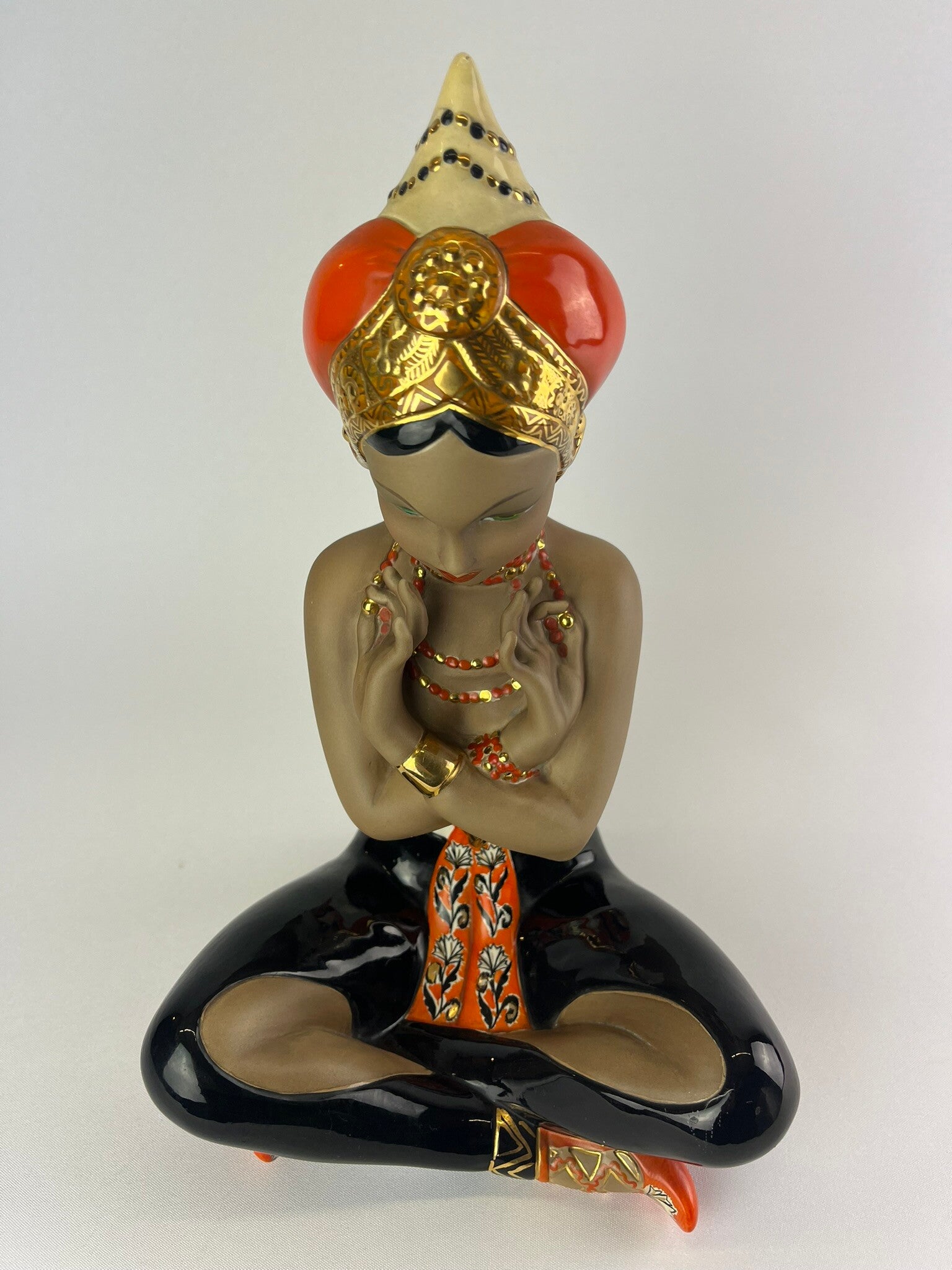 CIA Manna, Danzatrice orientale, Polychrome underglaze and opaque cast ceramic sculpture. Turin, 1950s.
