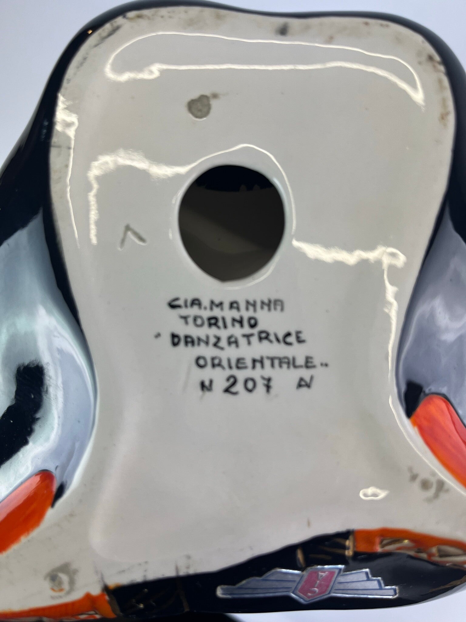 Signed under the base "C.I.A. MANNA TORINO DANZATRICE ORIENTALE", numbered "N.207"and with the paper label under theleg.