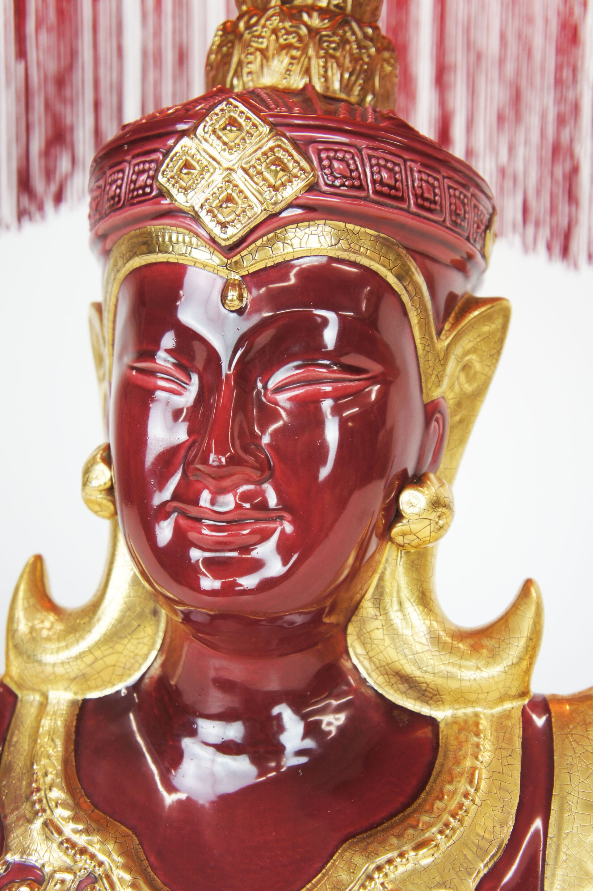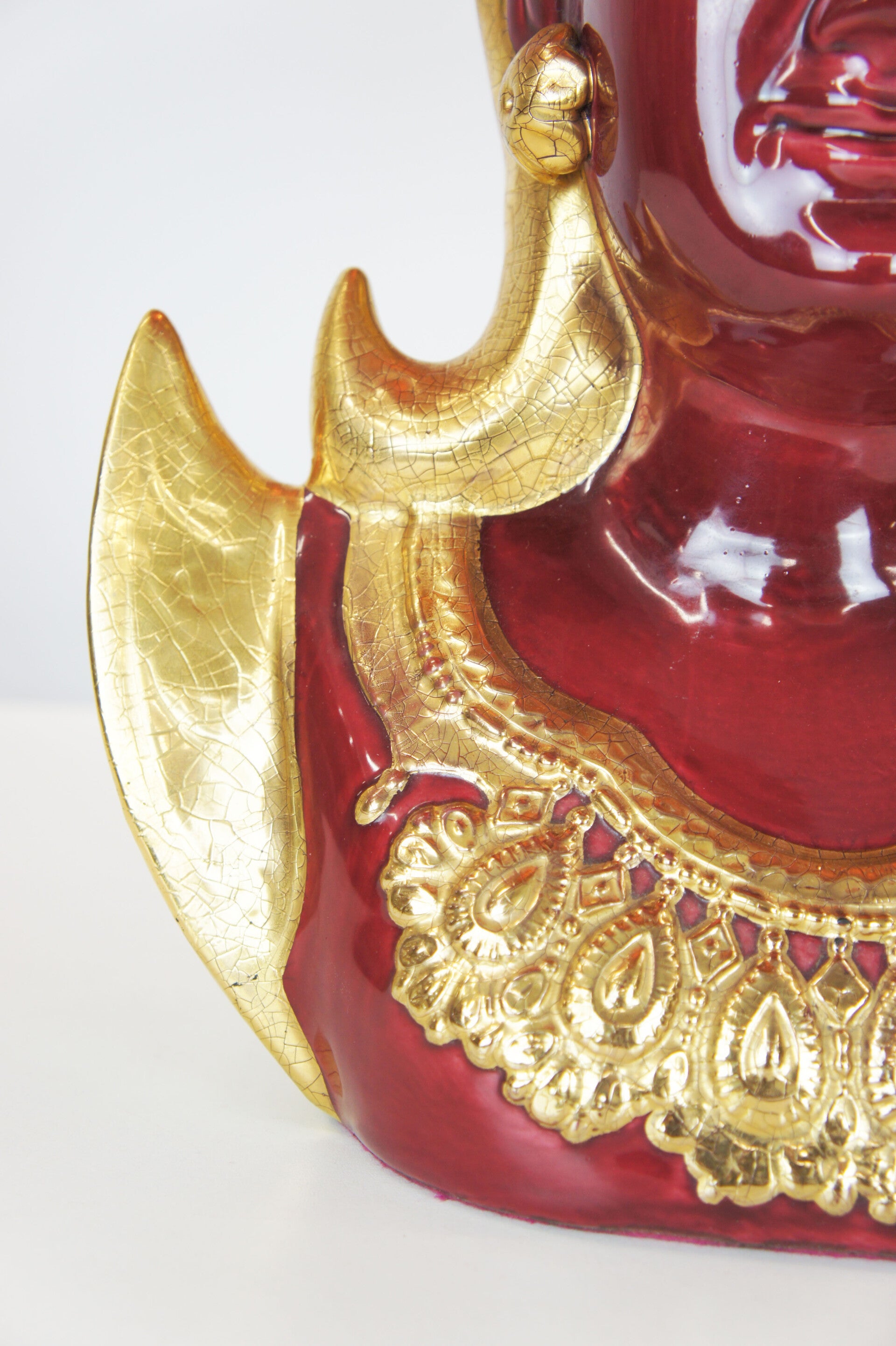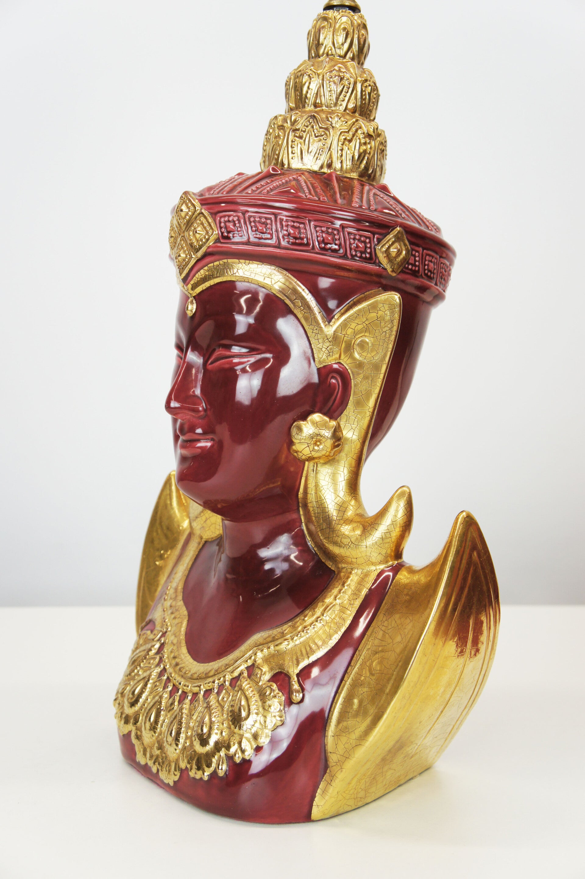 Italian Red & Gold Ceramic Thep Phanom - Table Lamp - 70s