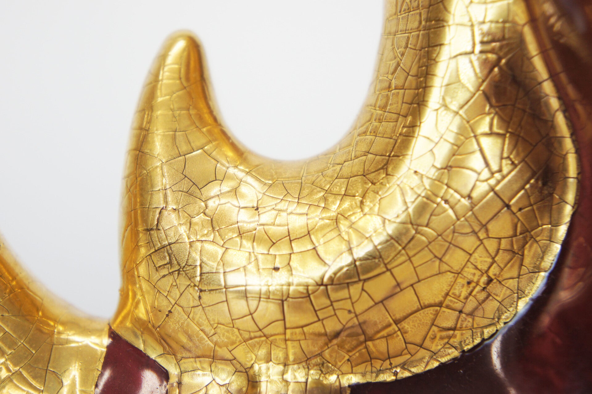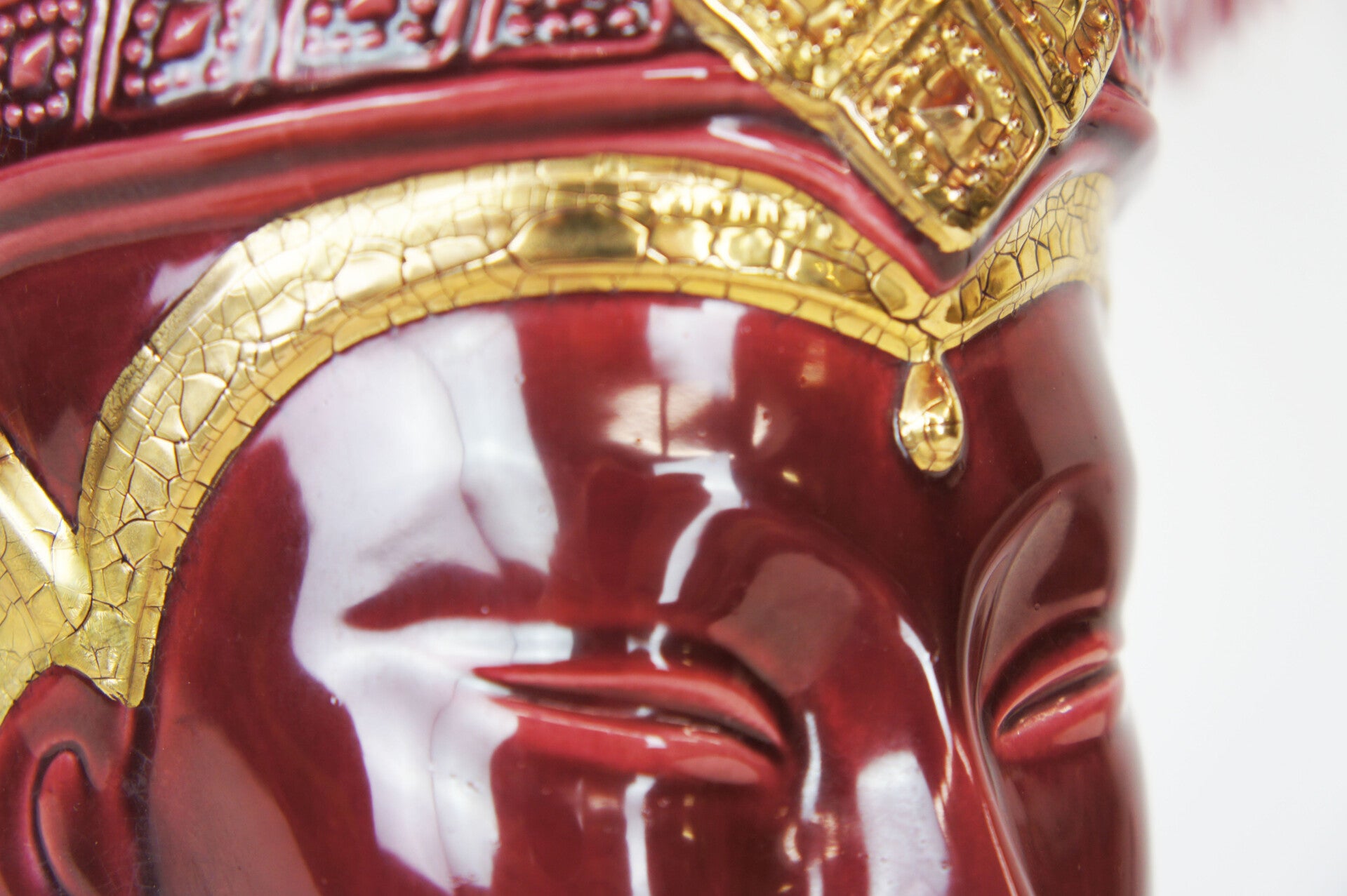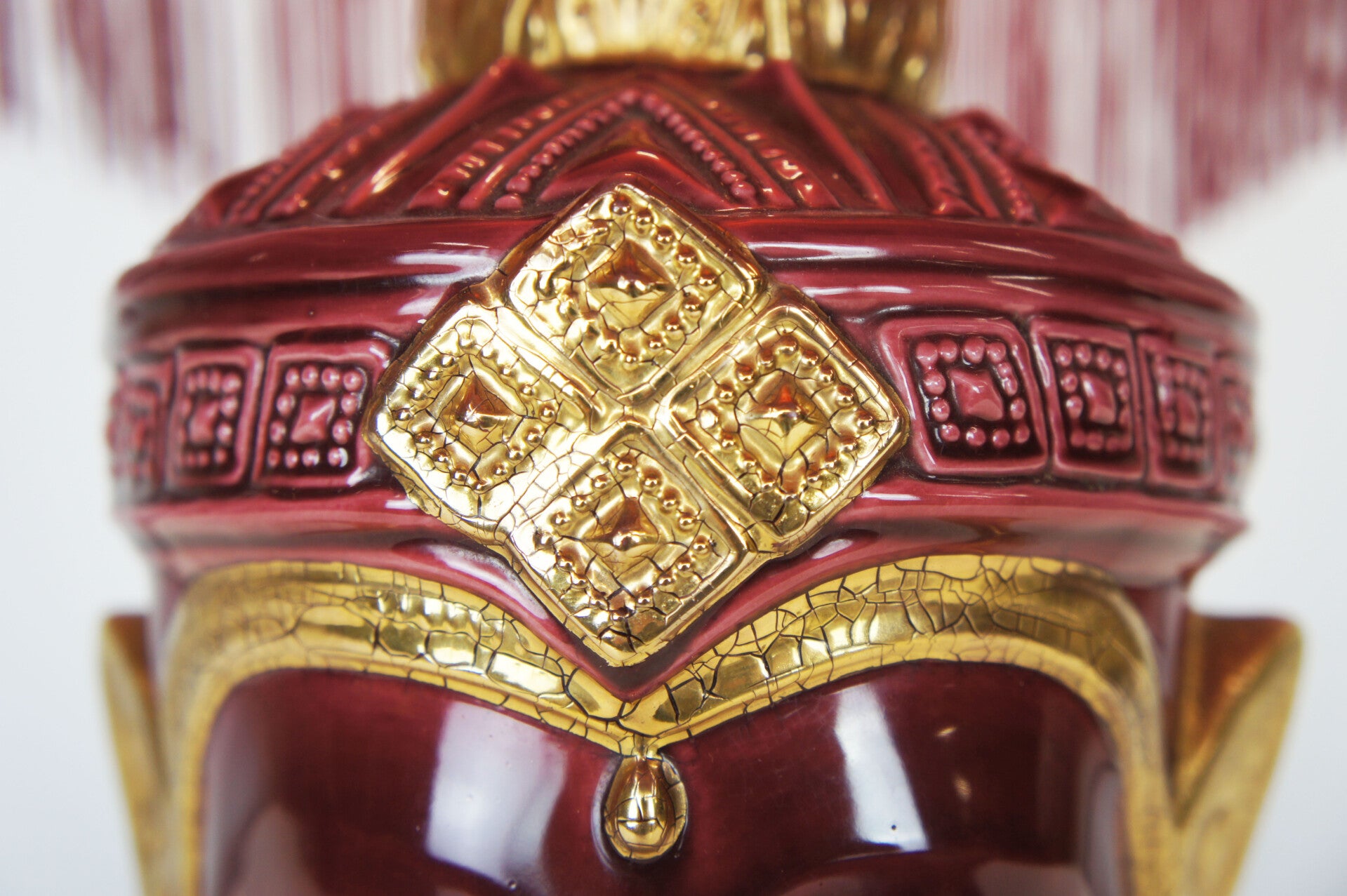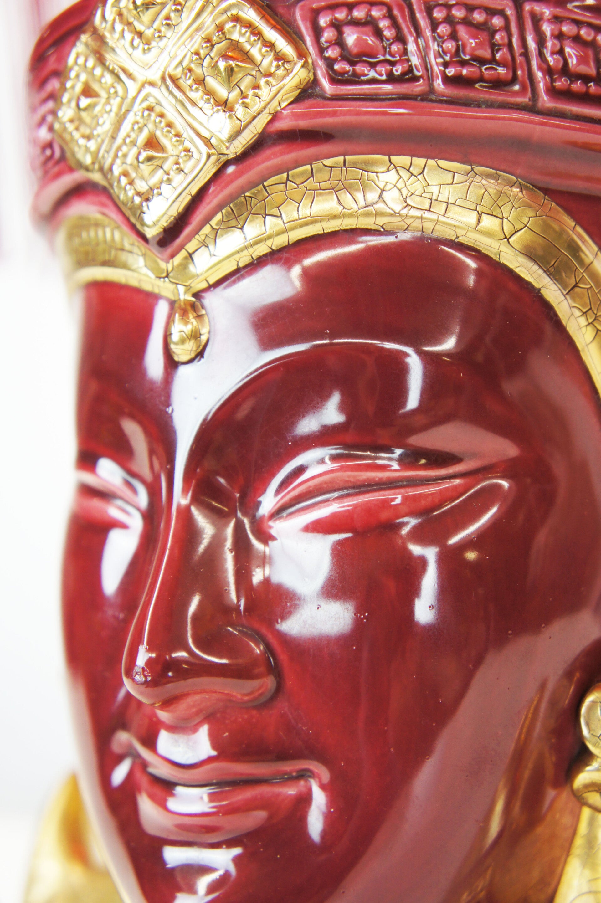 This exceptional piece is of Italian origin from the 1970s. A dark deep red glaze was applied, finished with a gold lacquer. A very detailed piece.