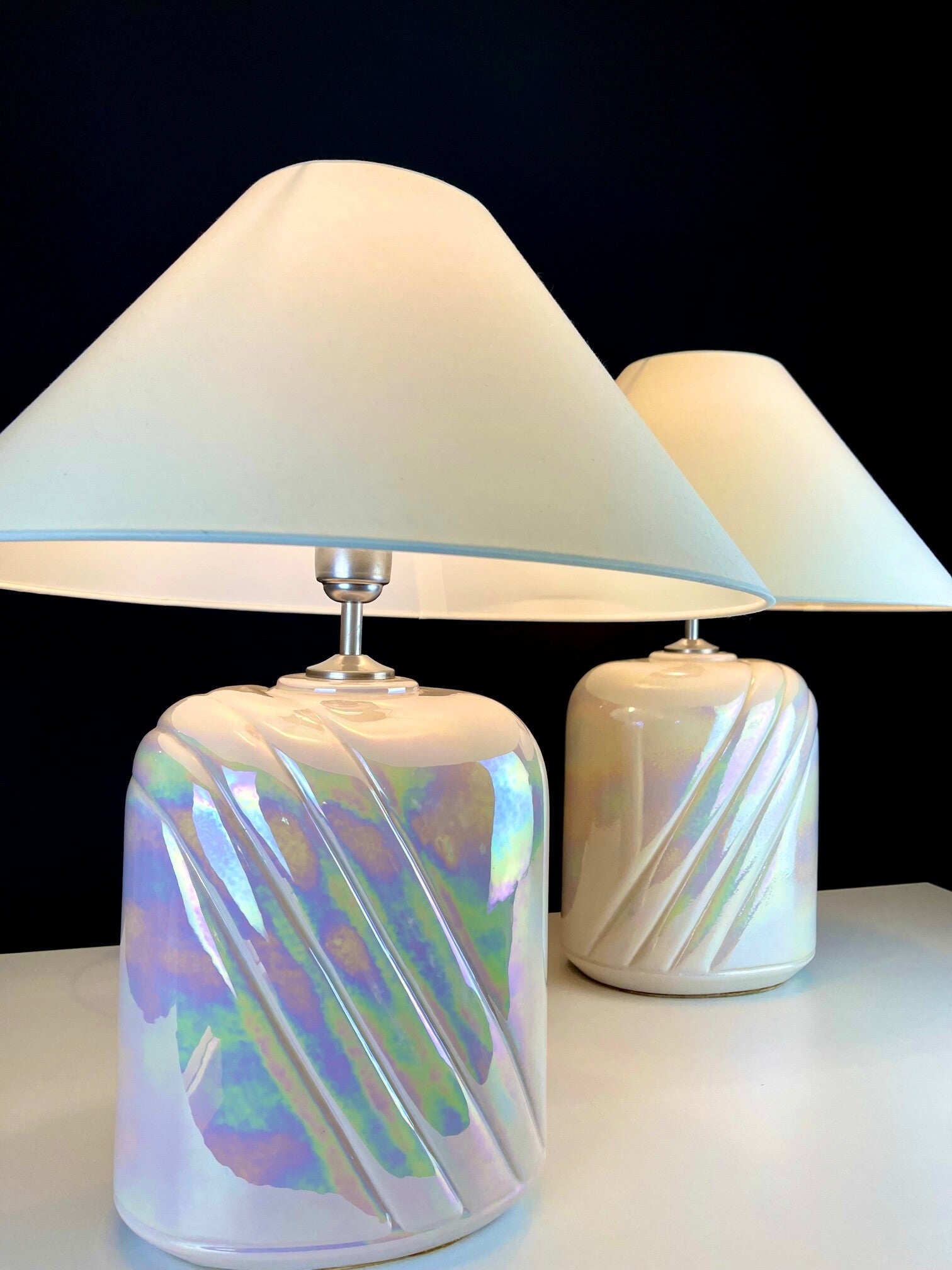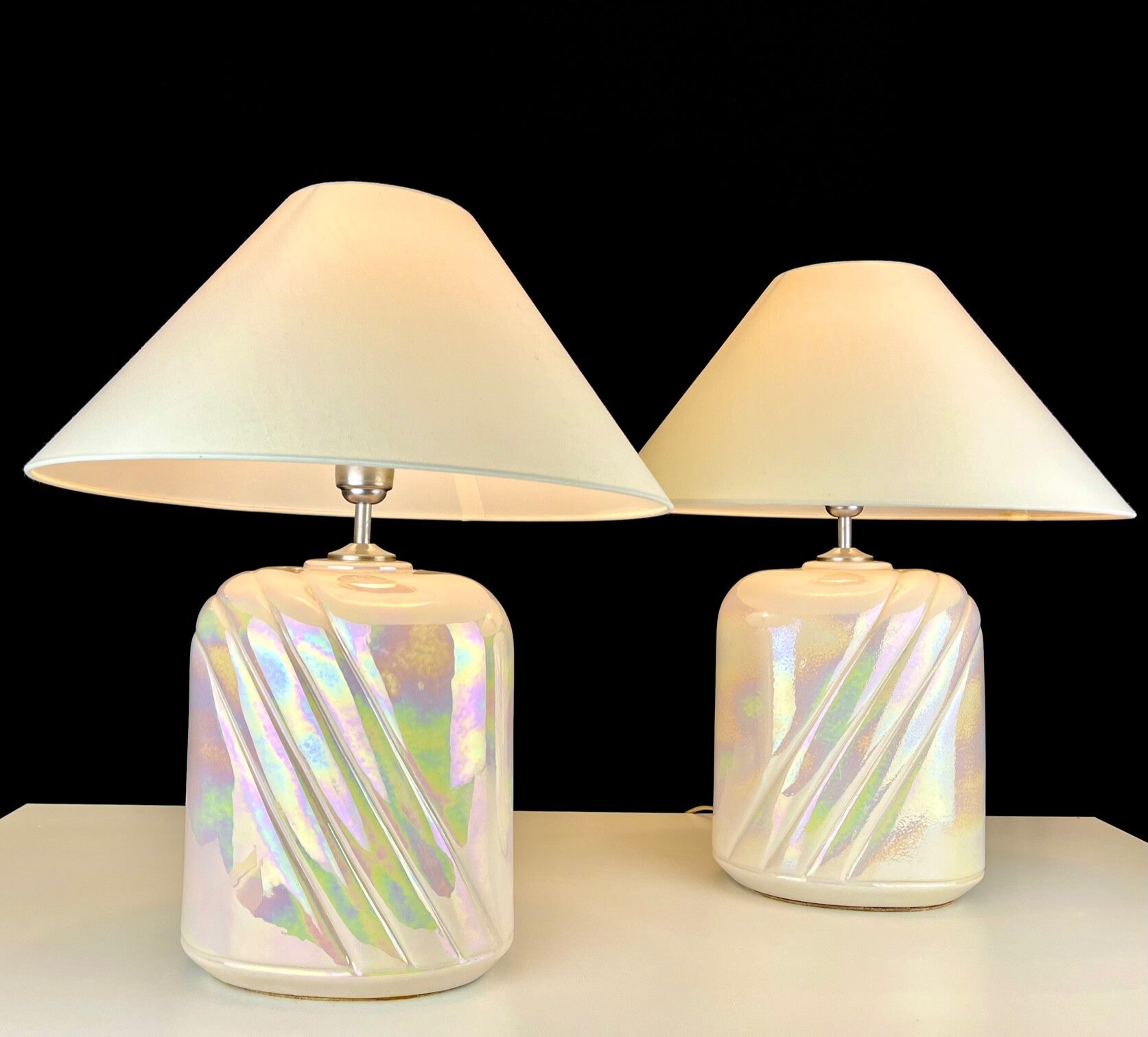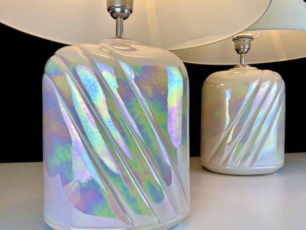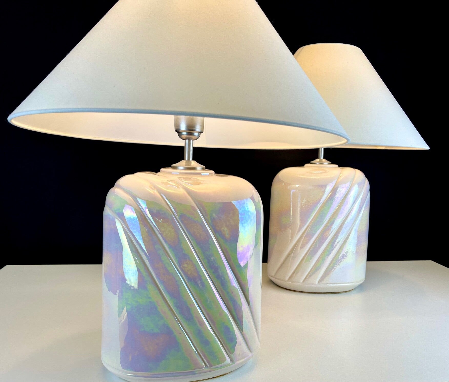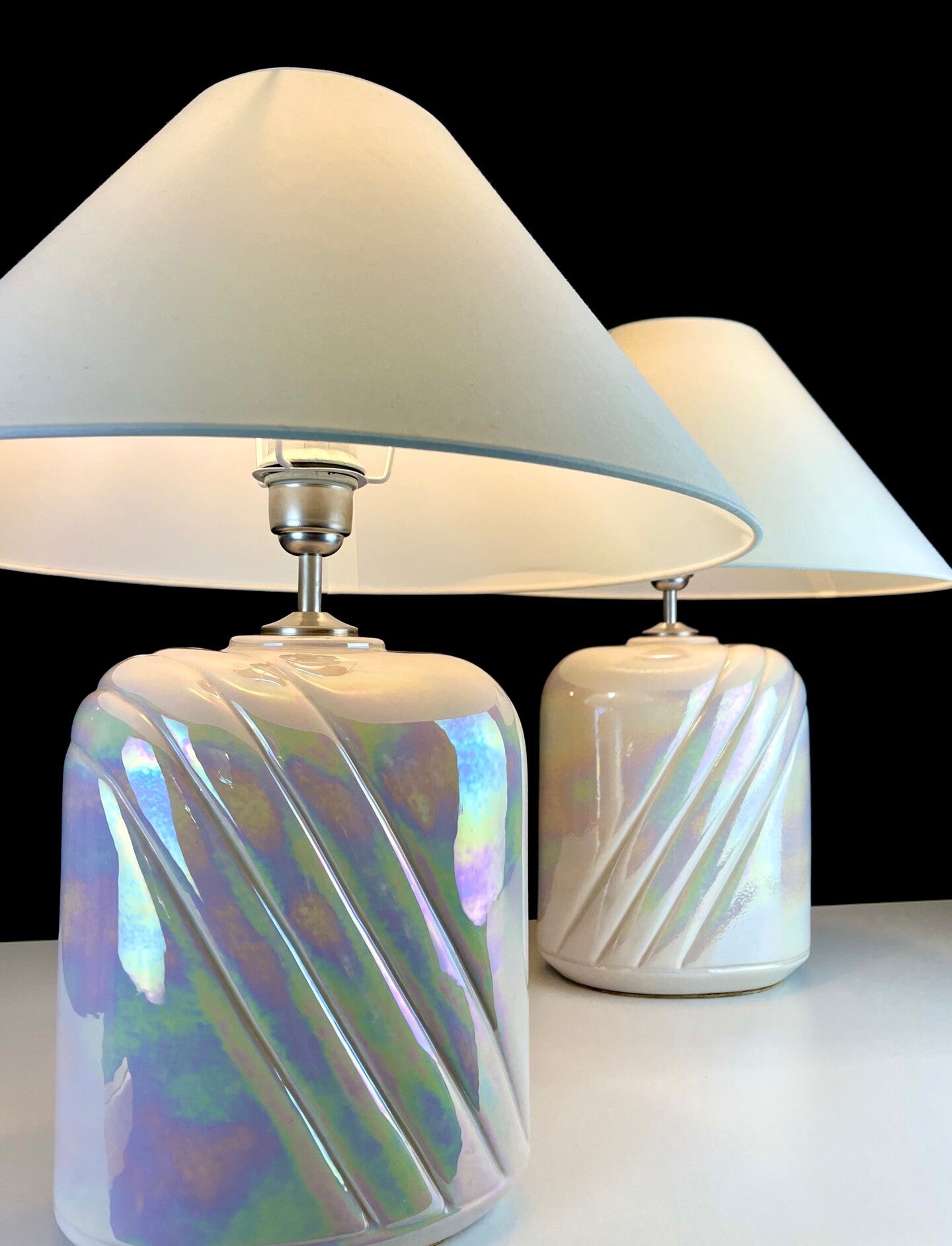 A pair of table lamps in iridescent glazed ceramics by Tomasso Barbi.