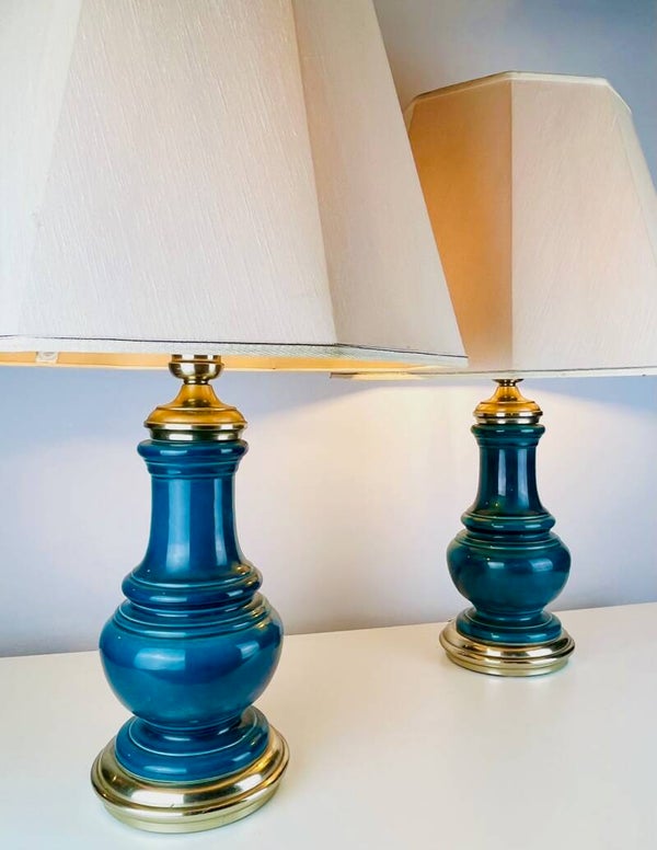 Beautiful pair of blue glazed table lamps in ceramics from the 1960s by the Italian Elle Gomiero.