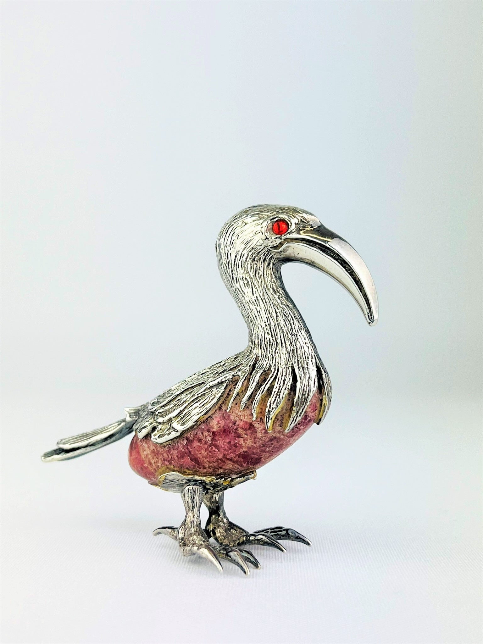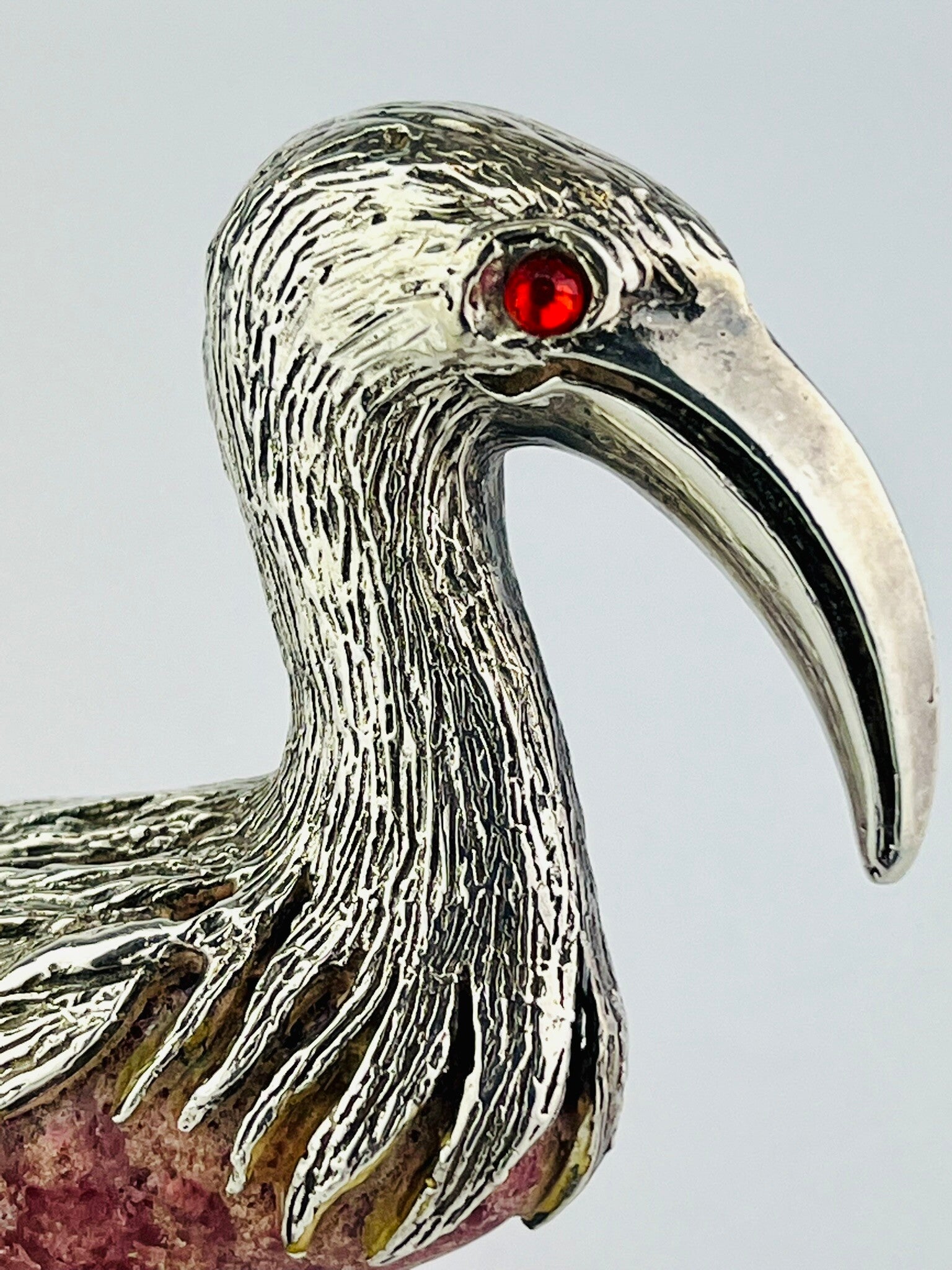 Italian Silver Ibis Sculpture - Rock Crystal Rhodochrosite