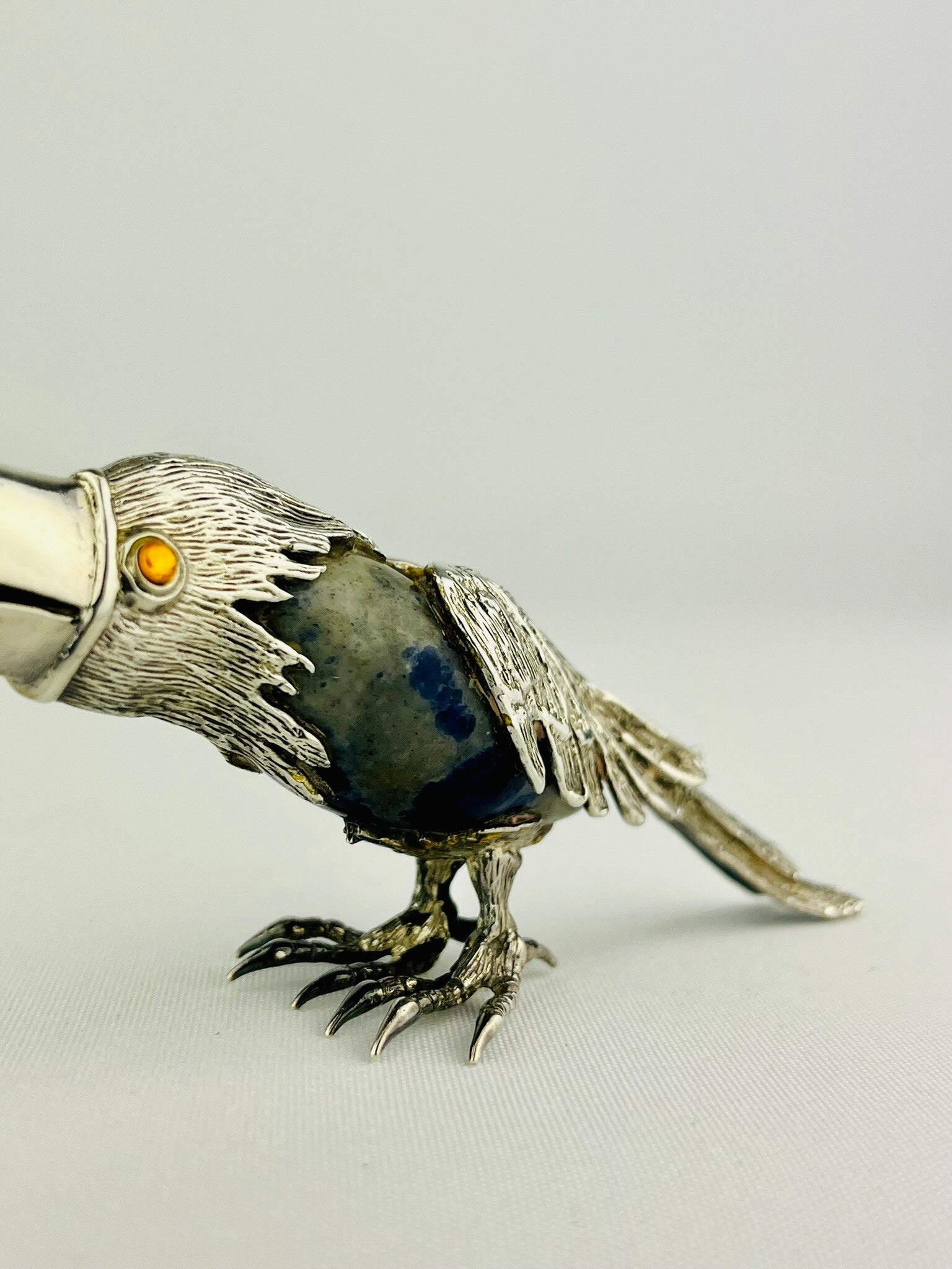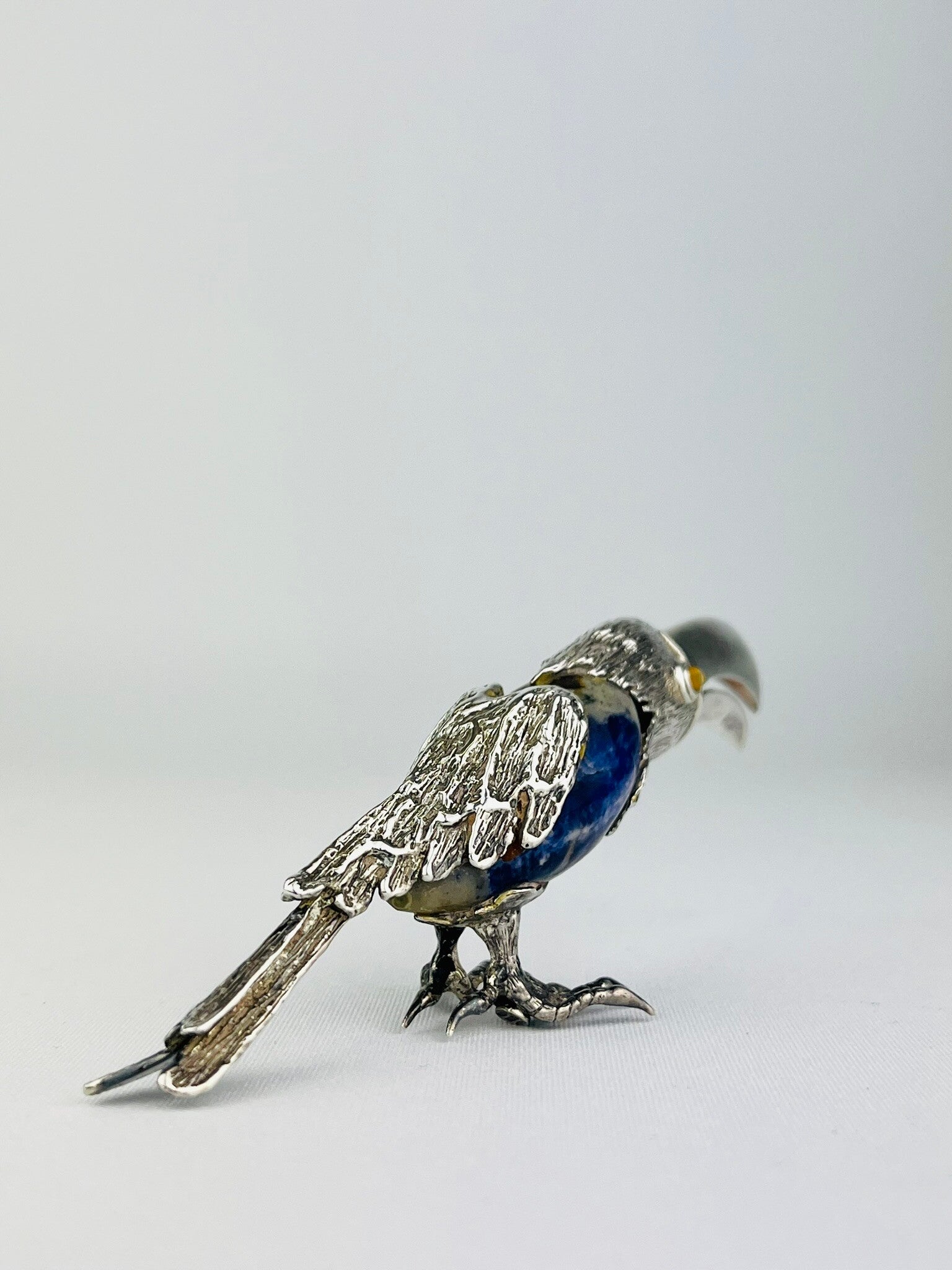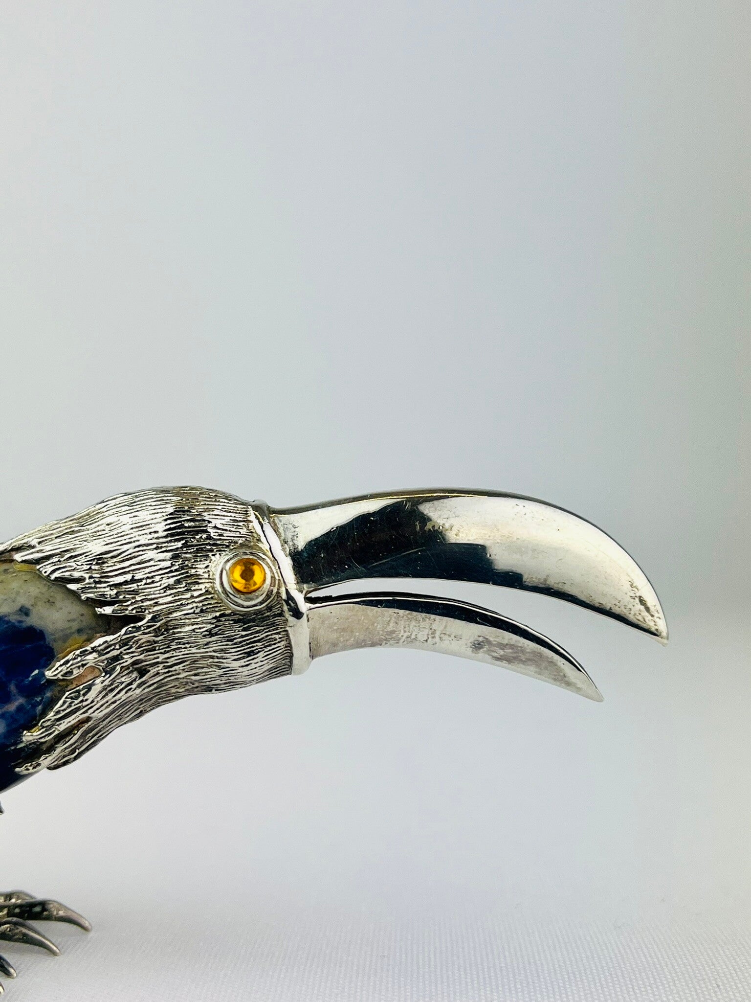 Italian Silver Toucan Sculpture - Blue Lapis Lazuli Gemstone