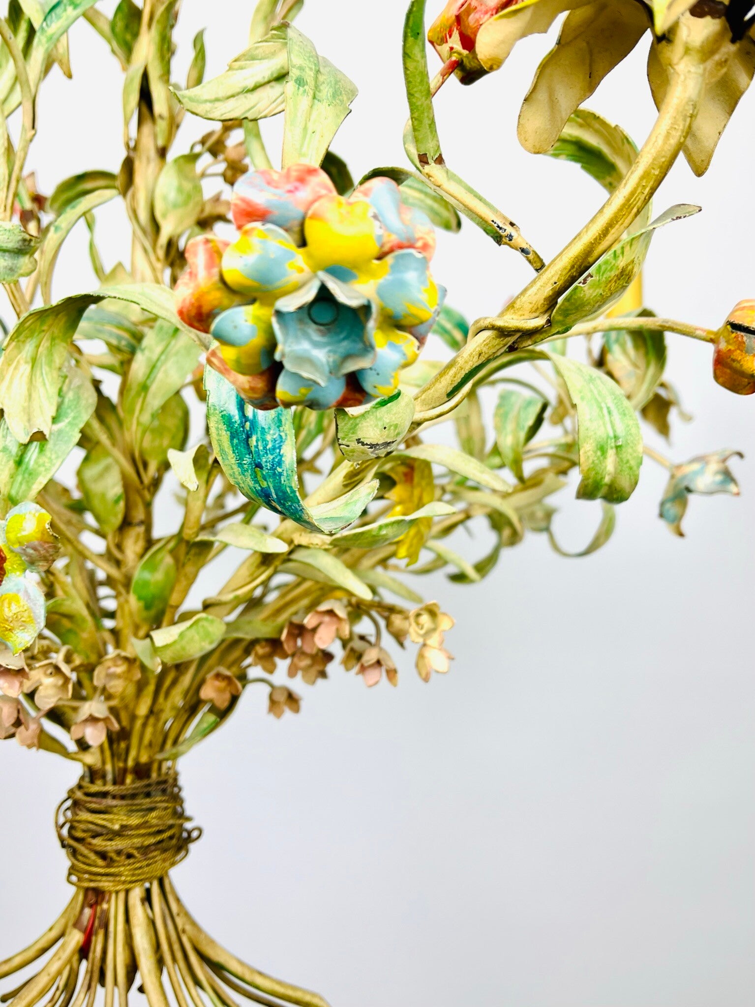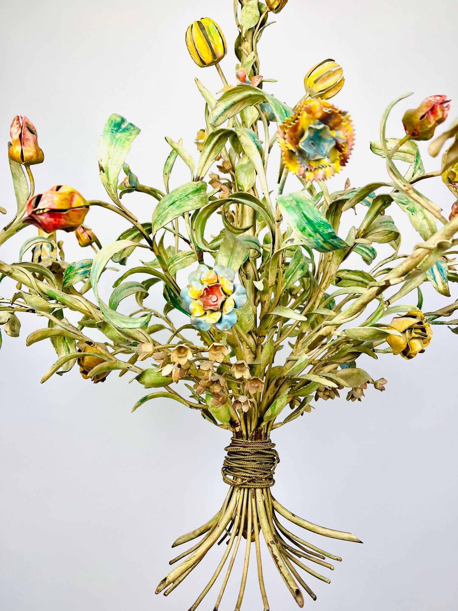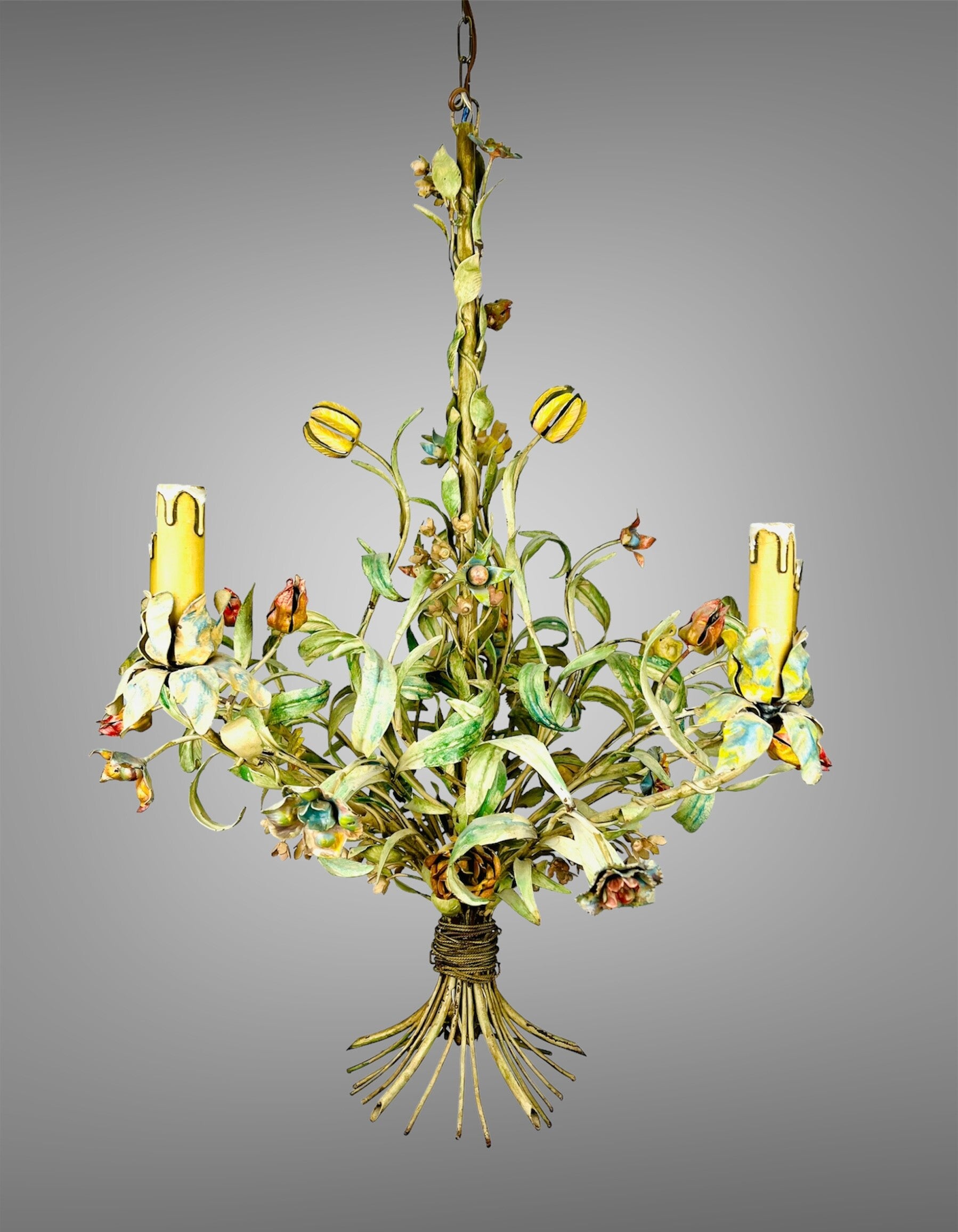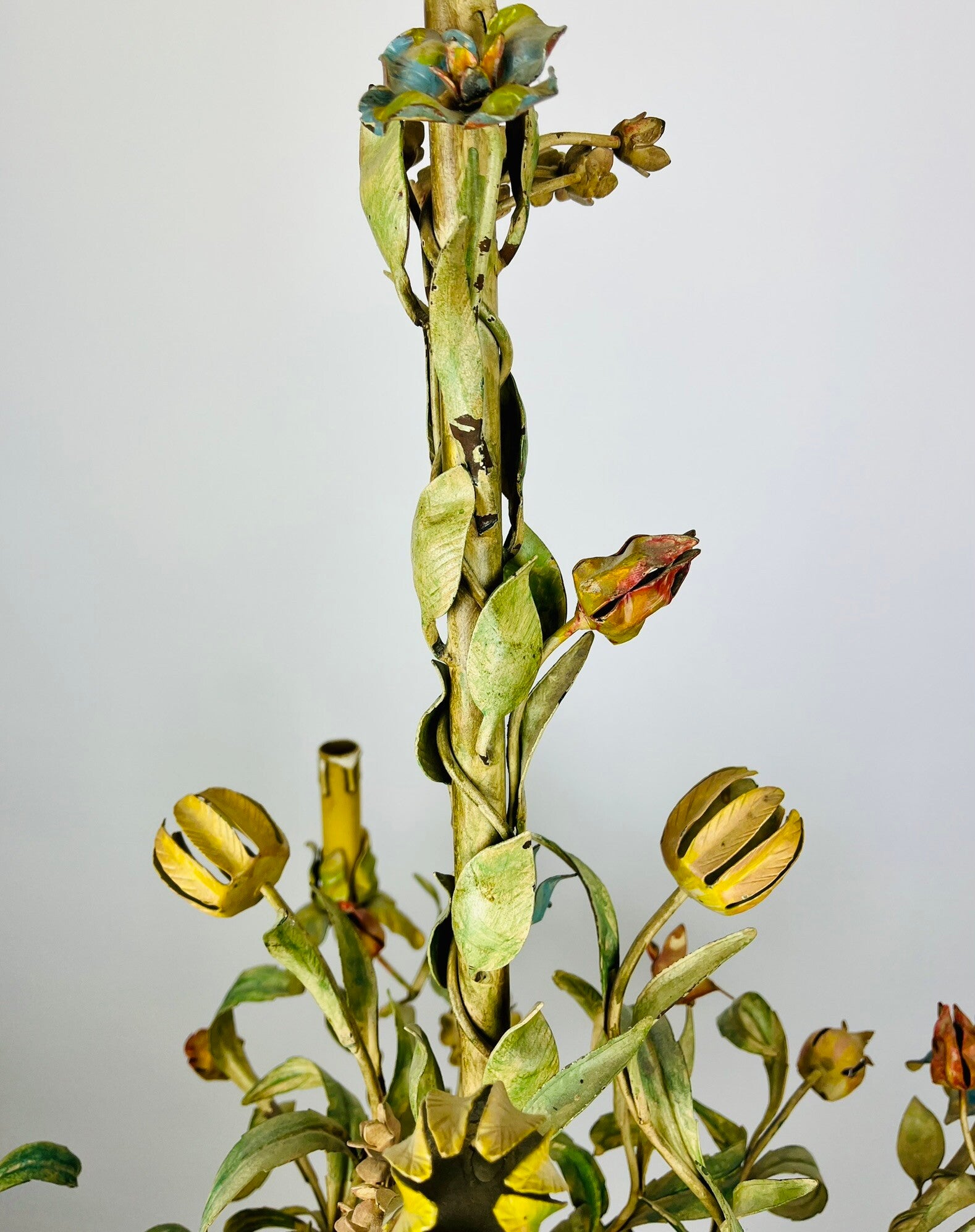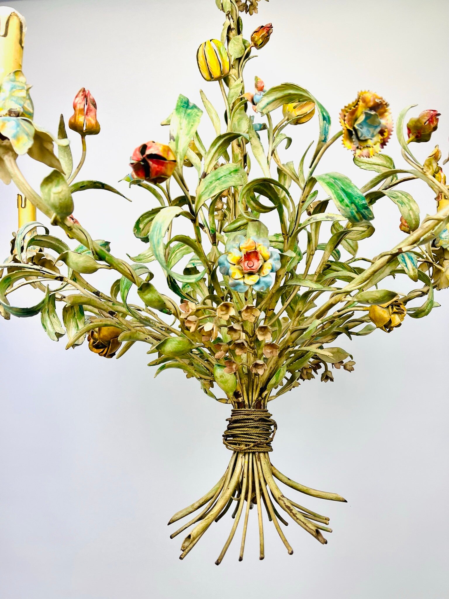 Italian Tole Chandelier - 1950s - Colorful Floral Bouquet