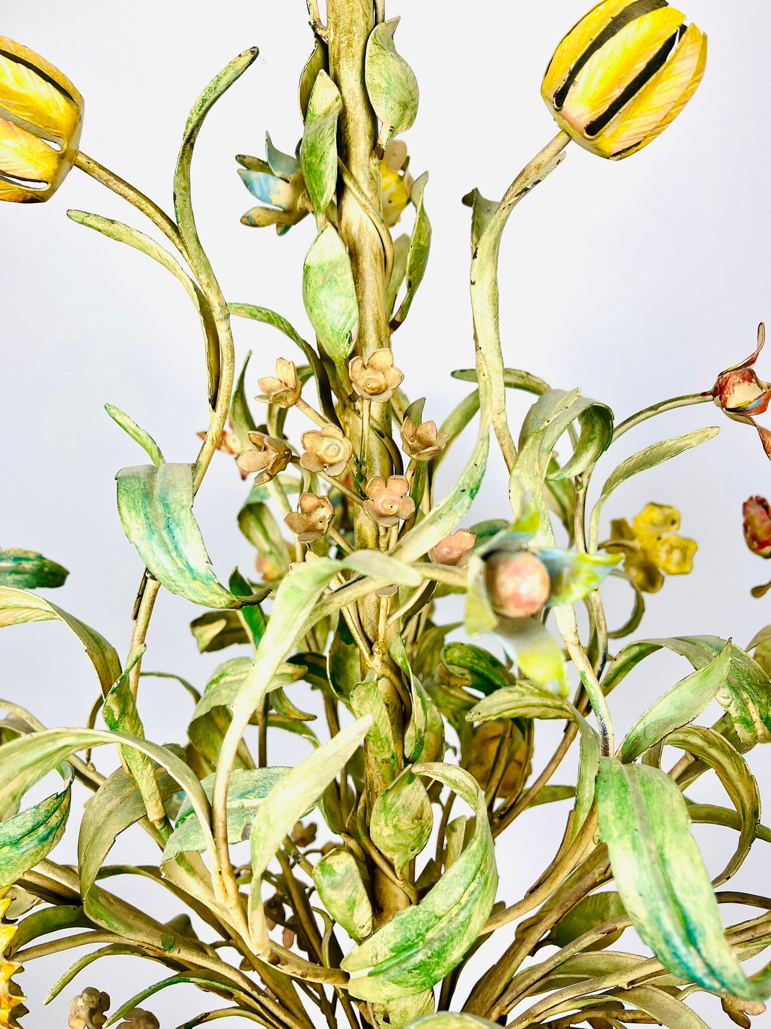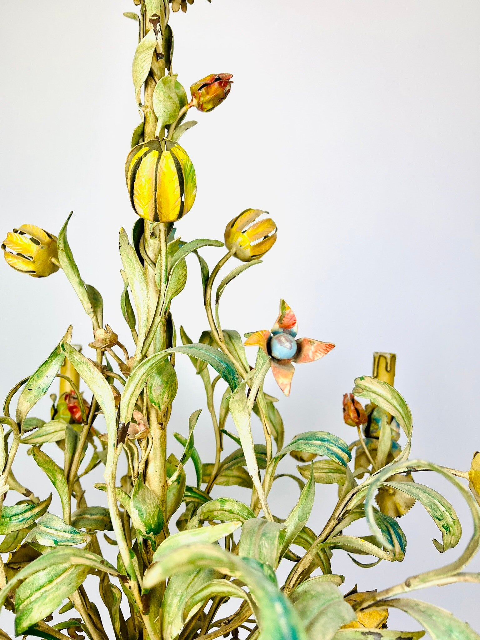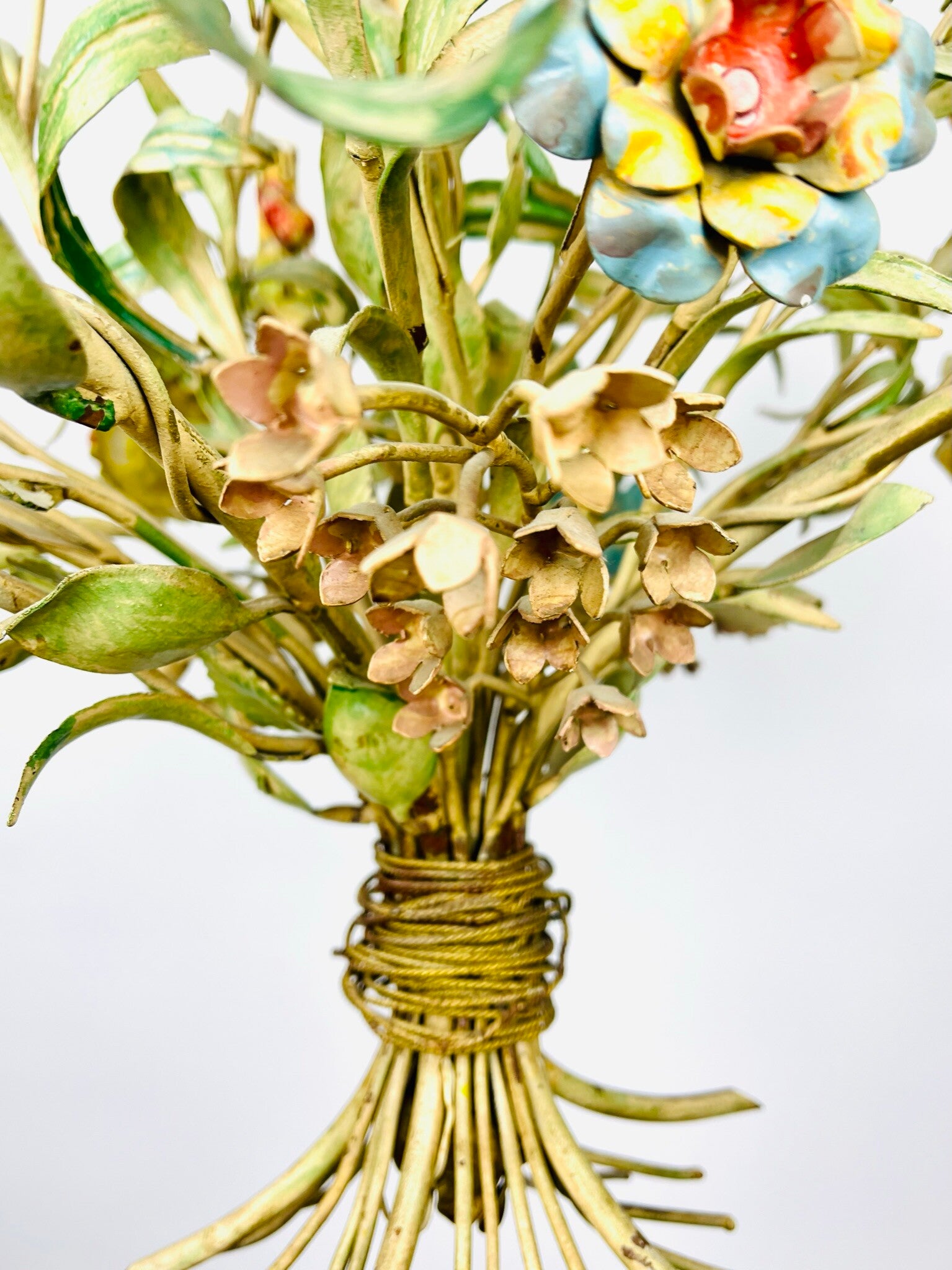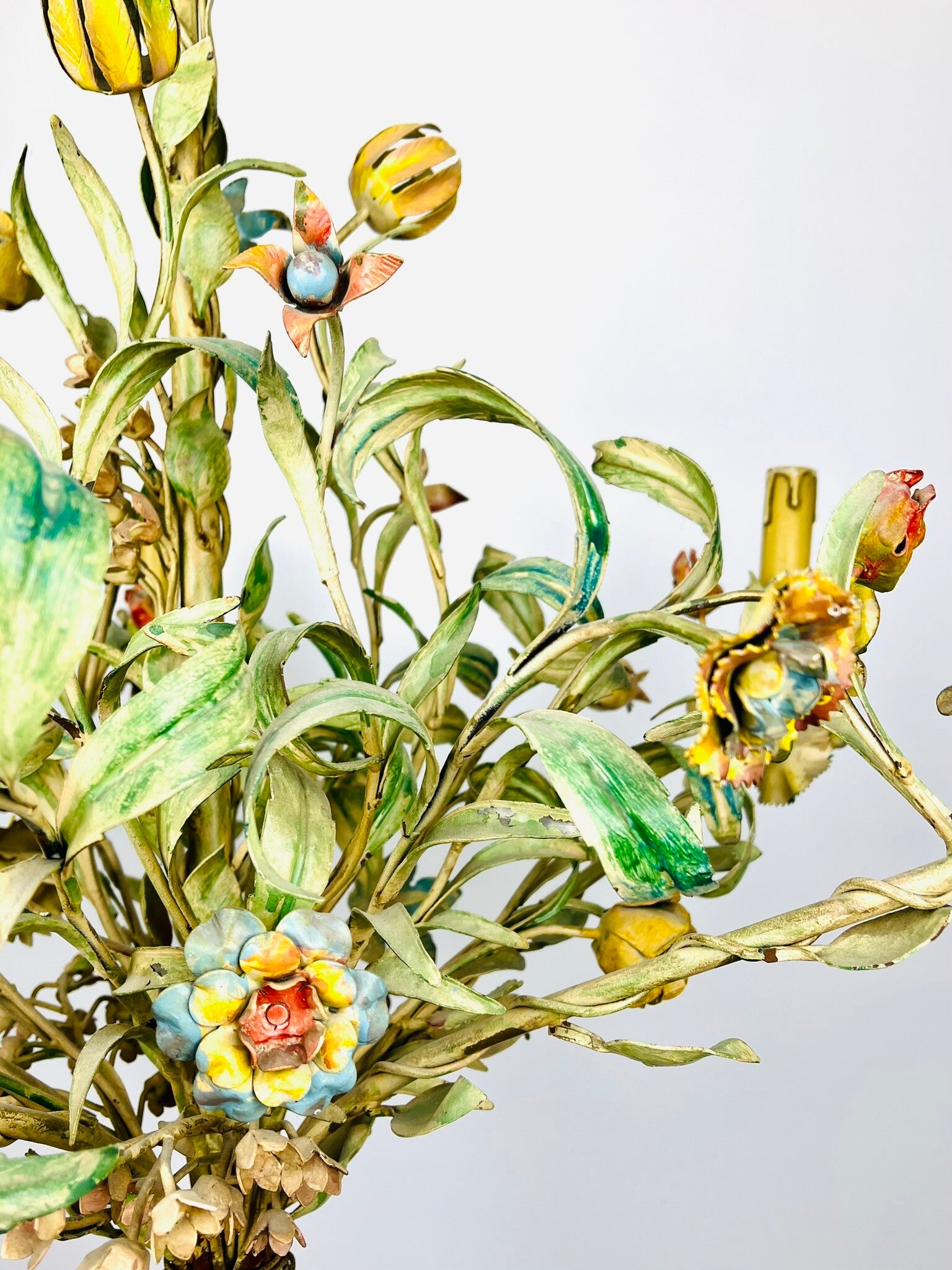 Italian Tole Chandelier - 1950s - Colorful Floral Bouquet