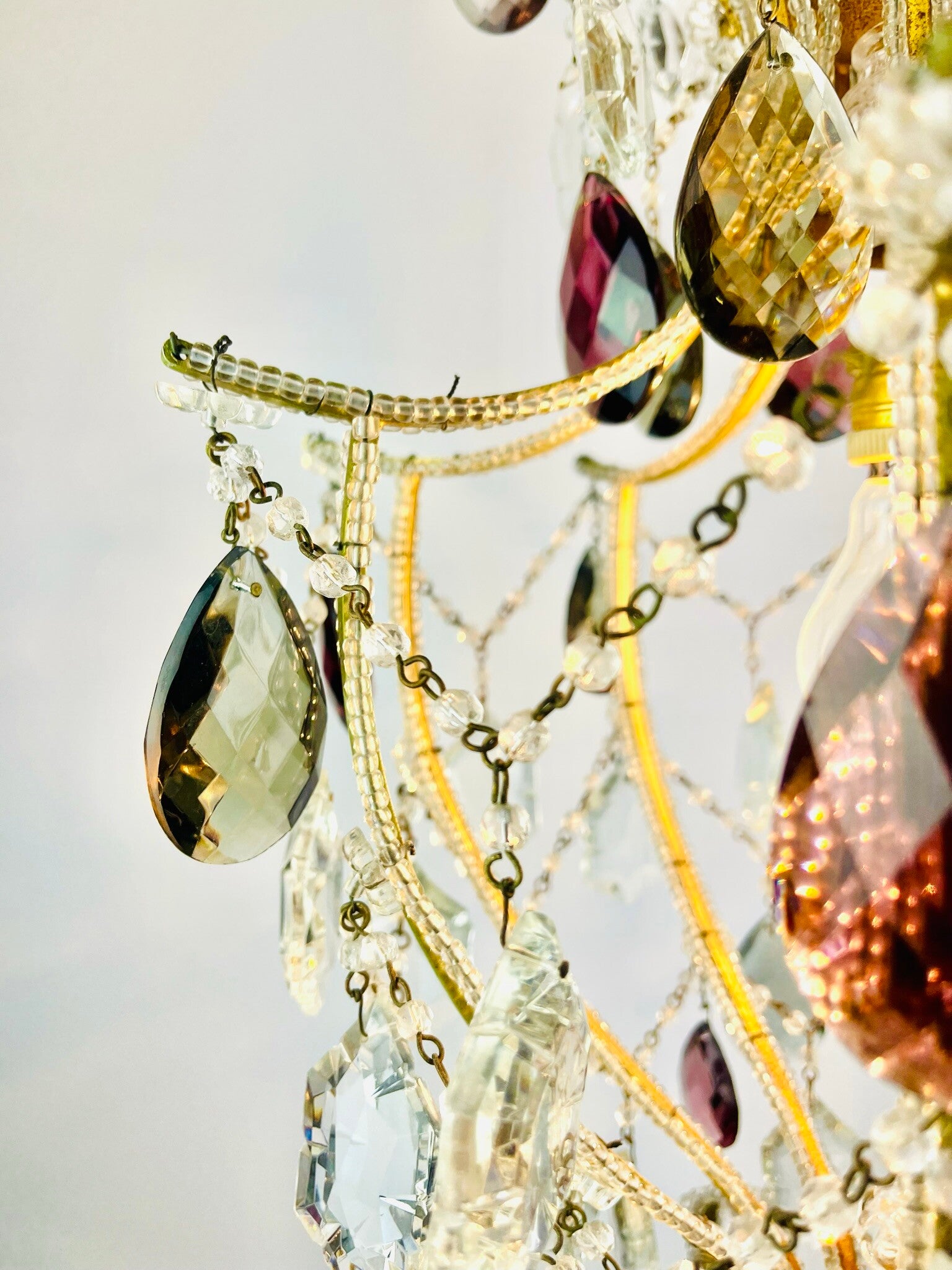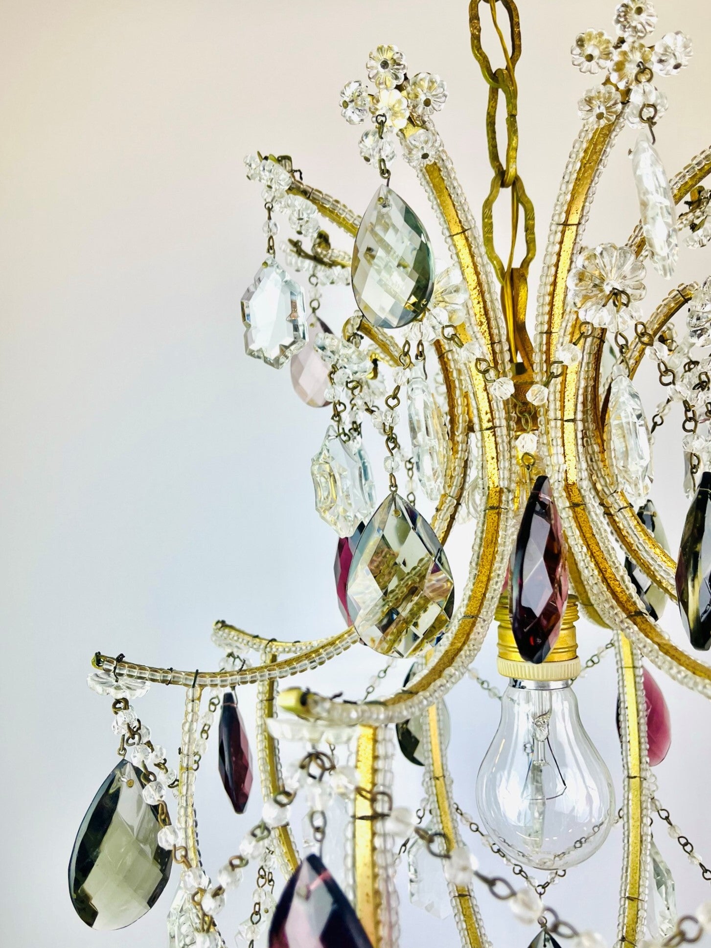 This chandelier is a real eye-catcher because of its beautiful colors, even when it is not lit, the crystals provide a beautiful reflection of daylight.