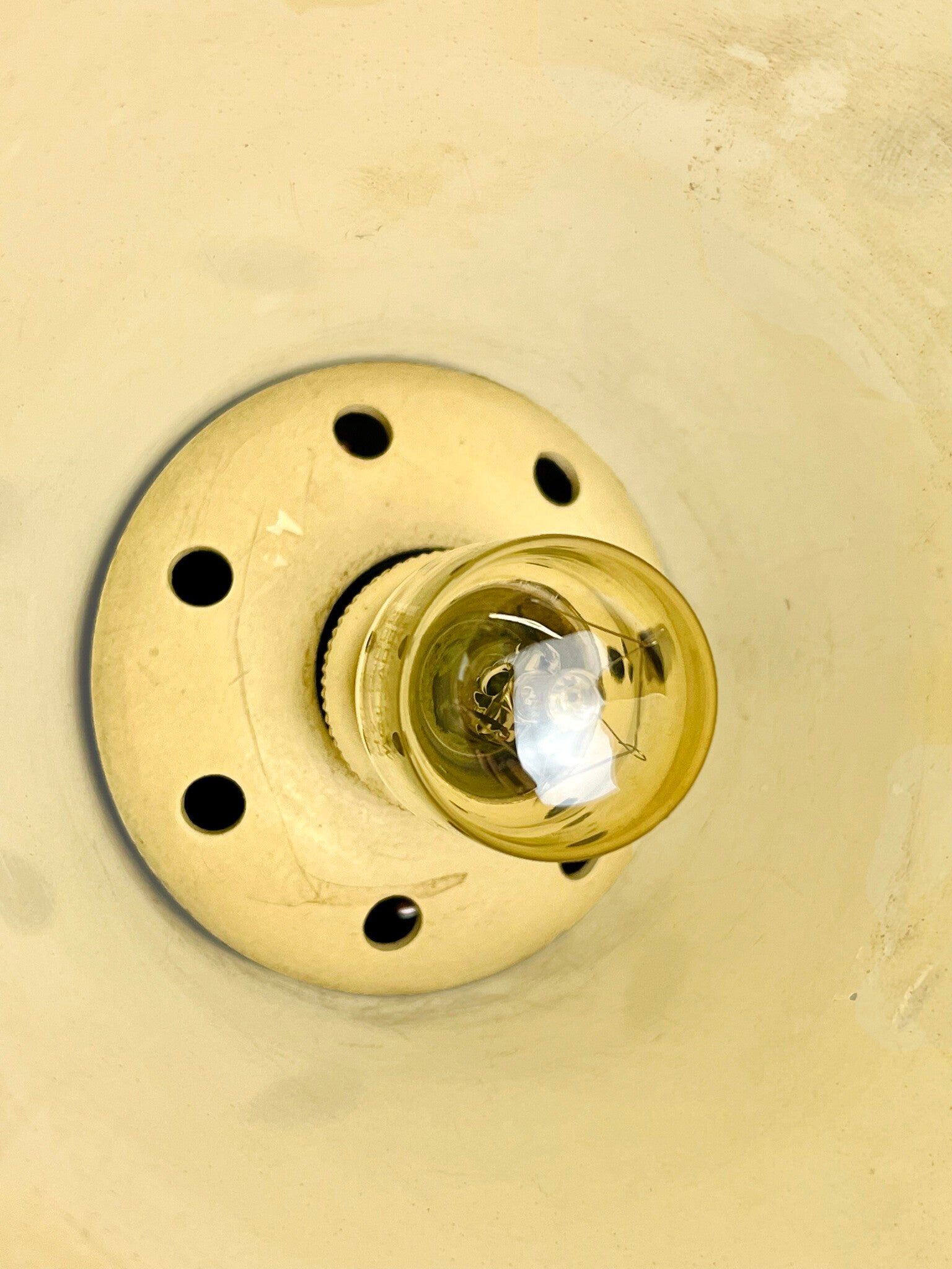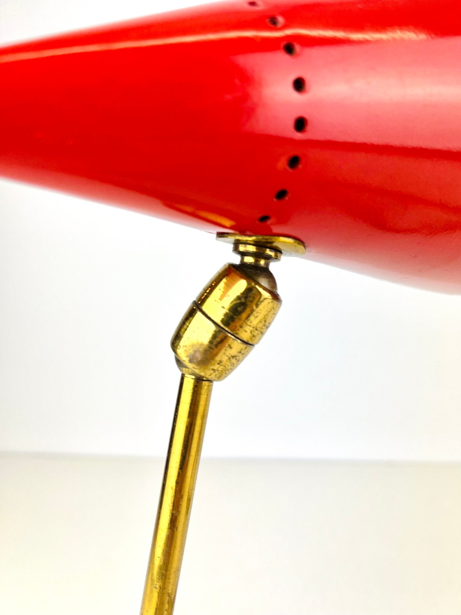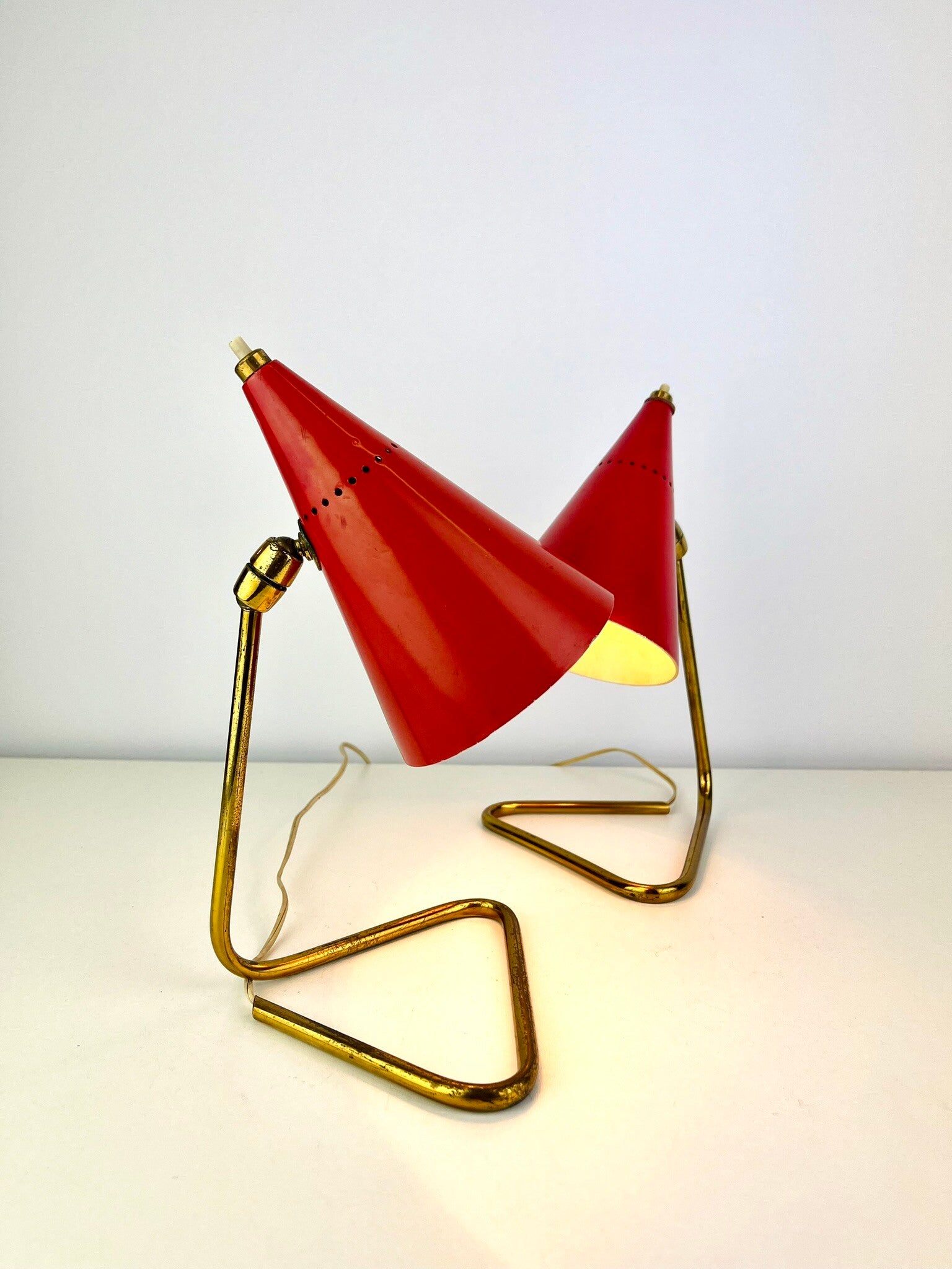 The lamps are completely in original condition, the red lacquered shades still retain their beautiful color. The lampshades can be rotated in all directions.