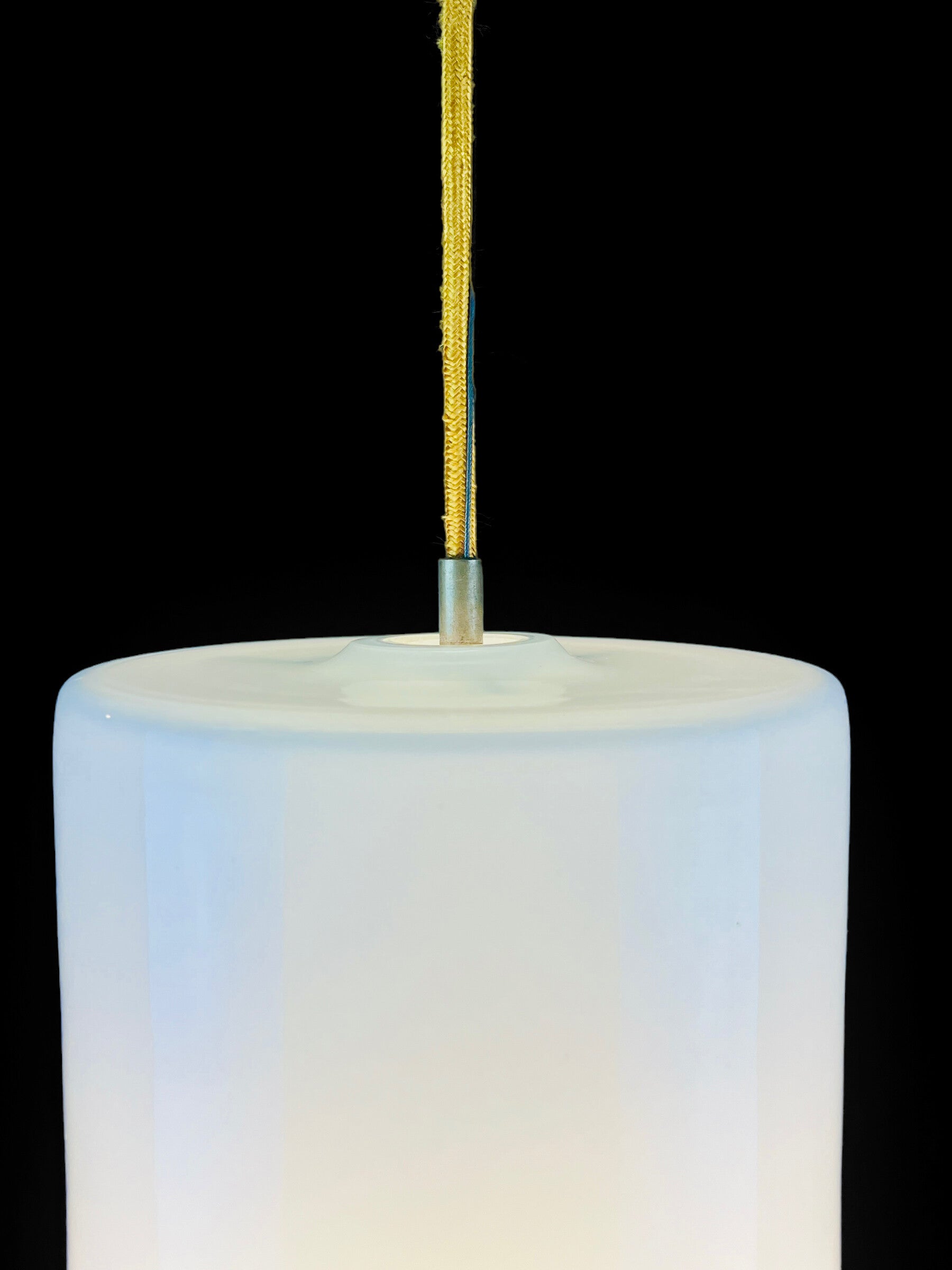 As the lamp is presented in our photo series, it hangs down to approximately 84 cm, measured from the ceiling cup.