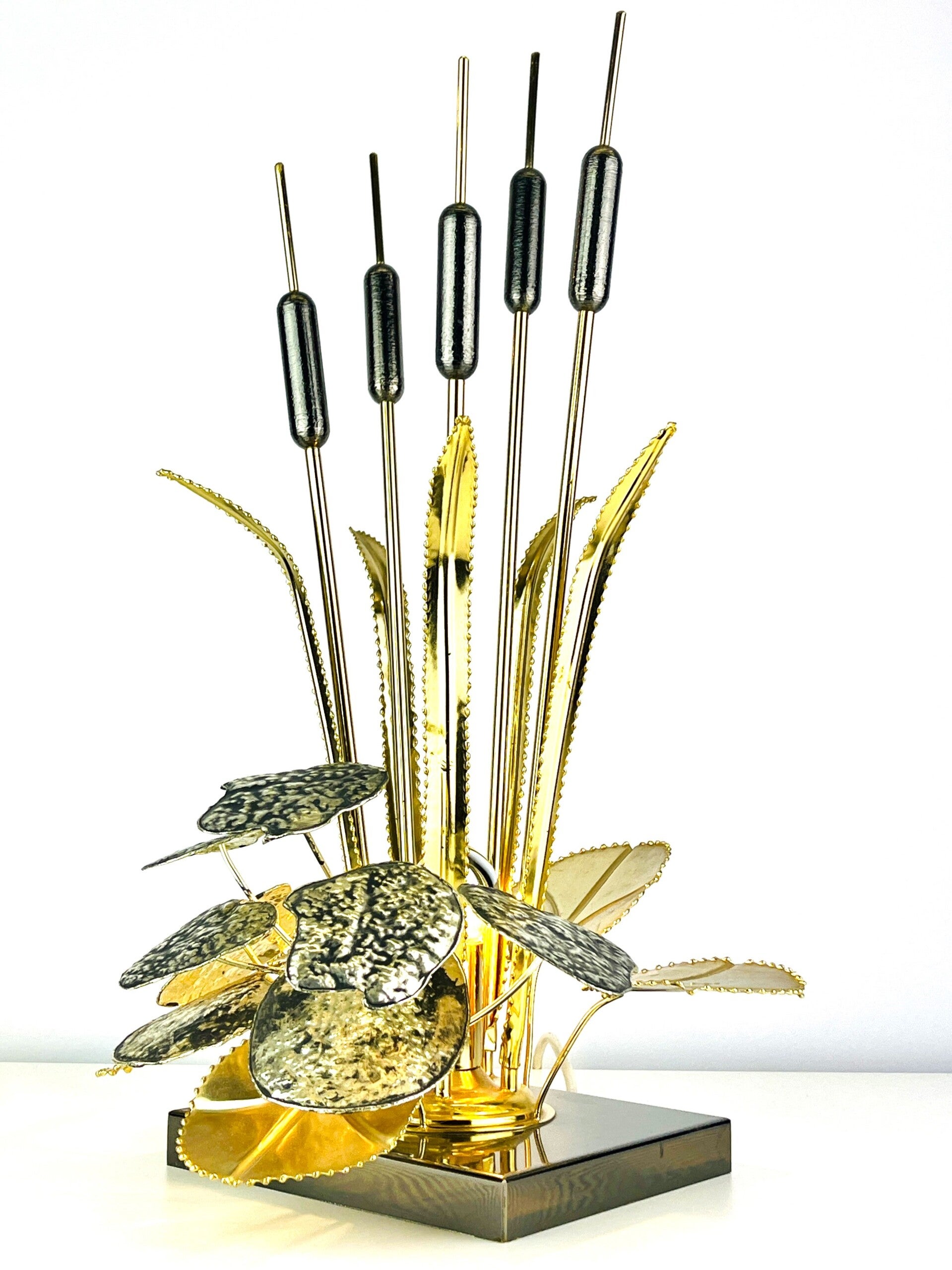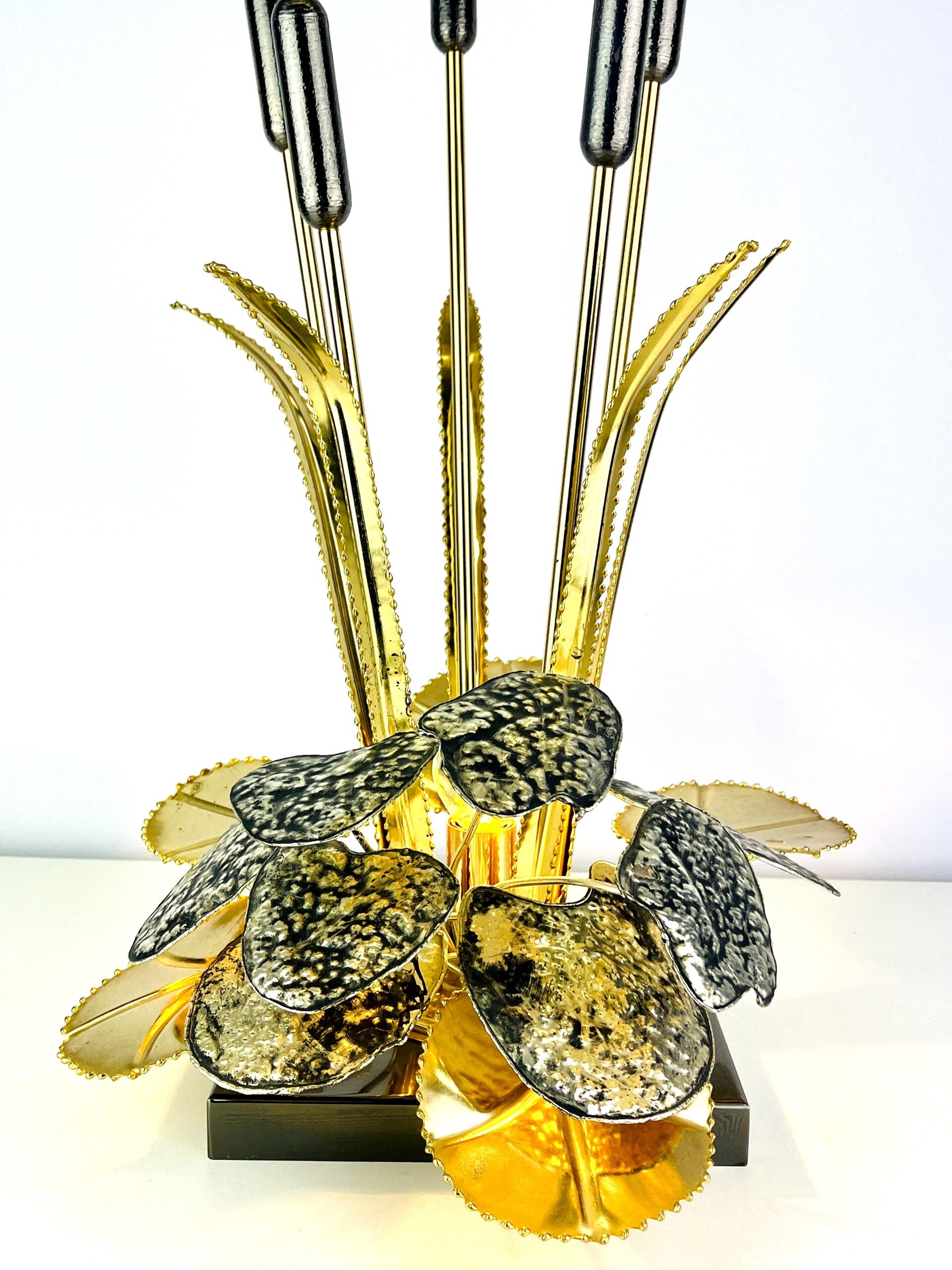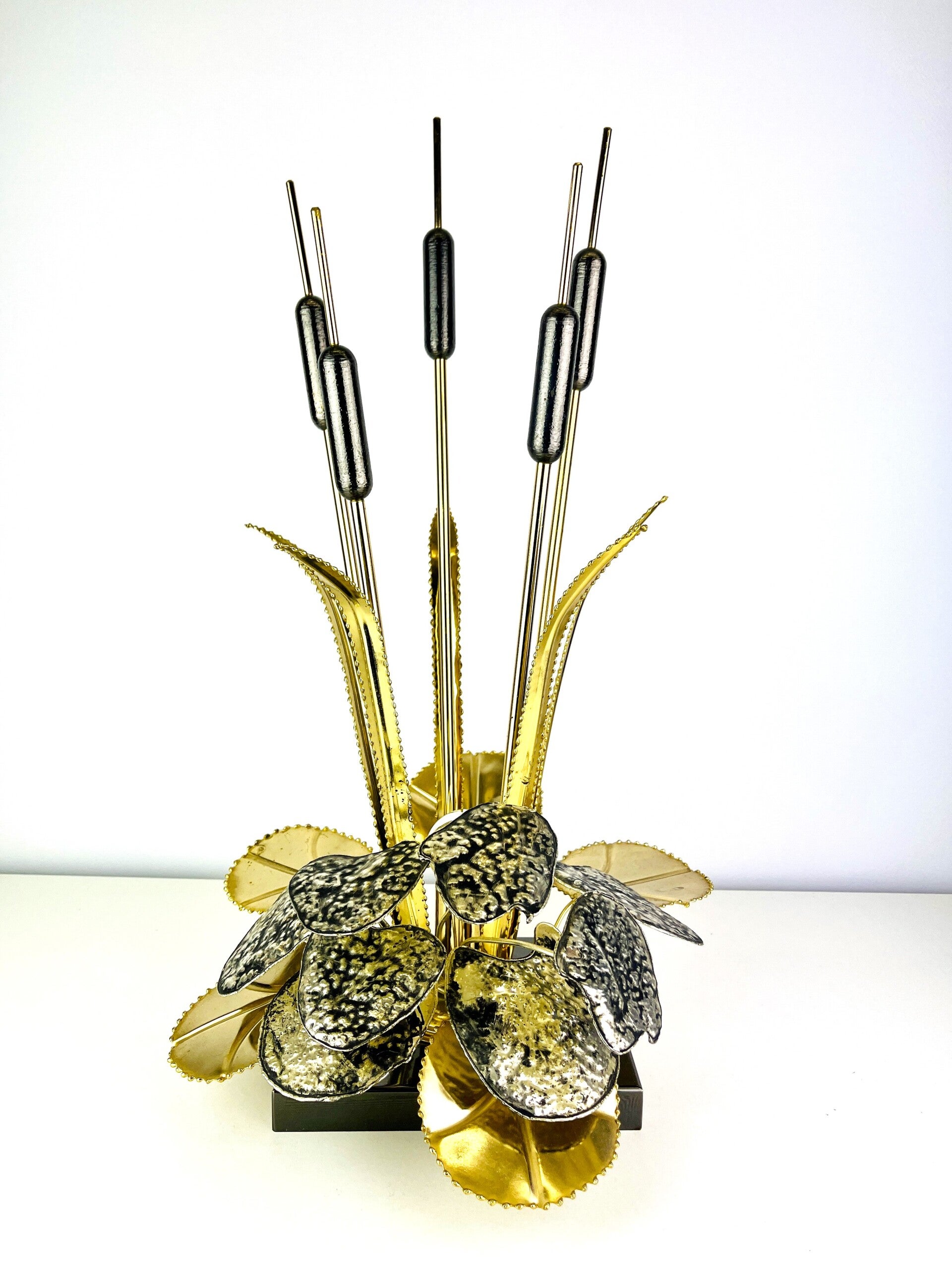 This beautiful table lamp has one central light point, which when lit gives a particularly beautiful effect on the brass leaves and stems of the reed.
