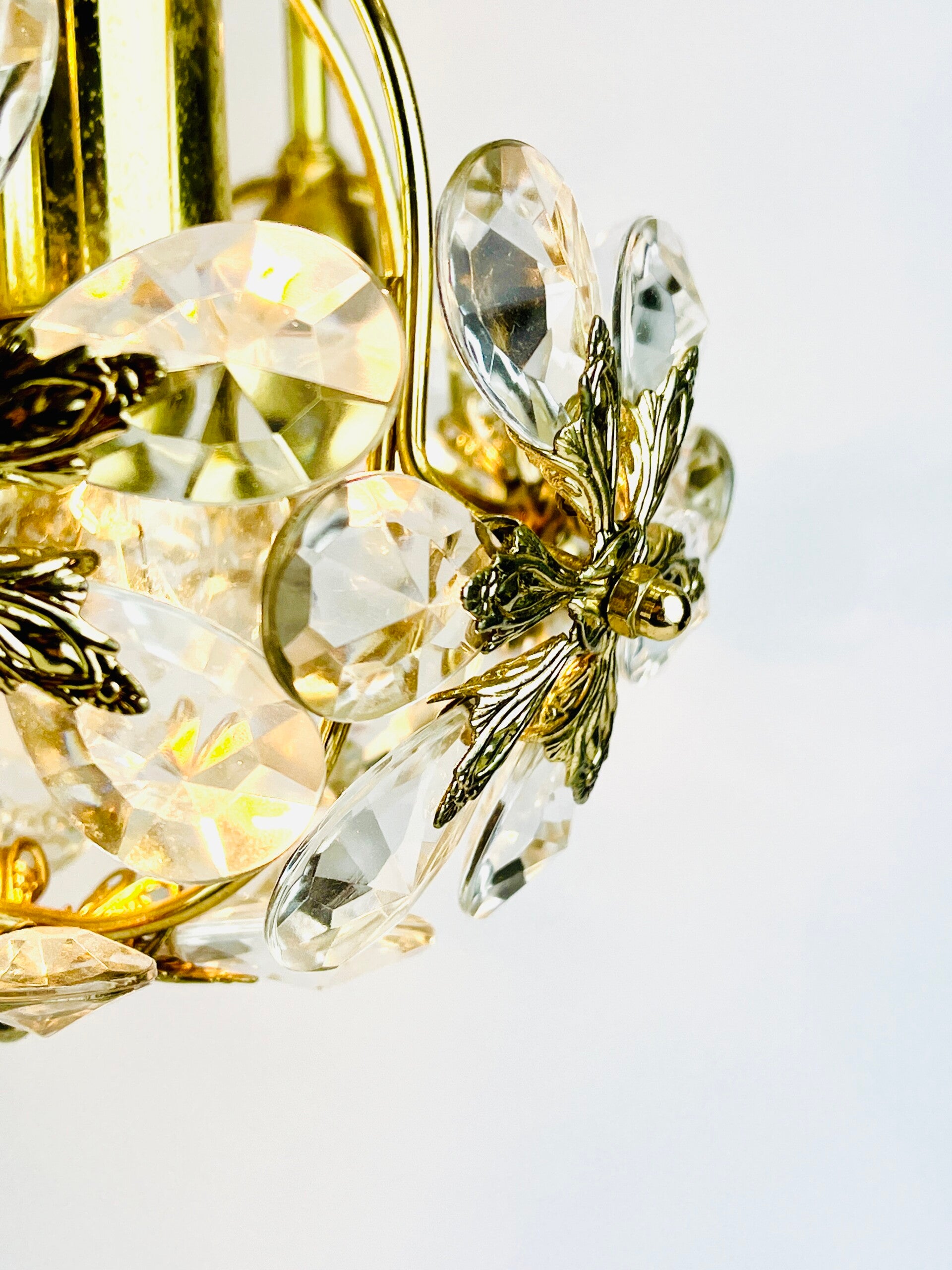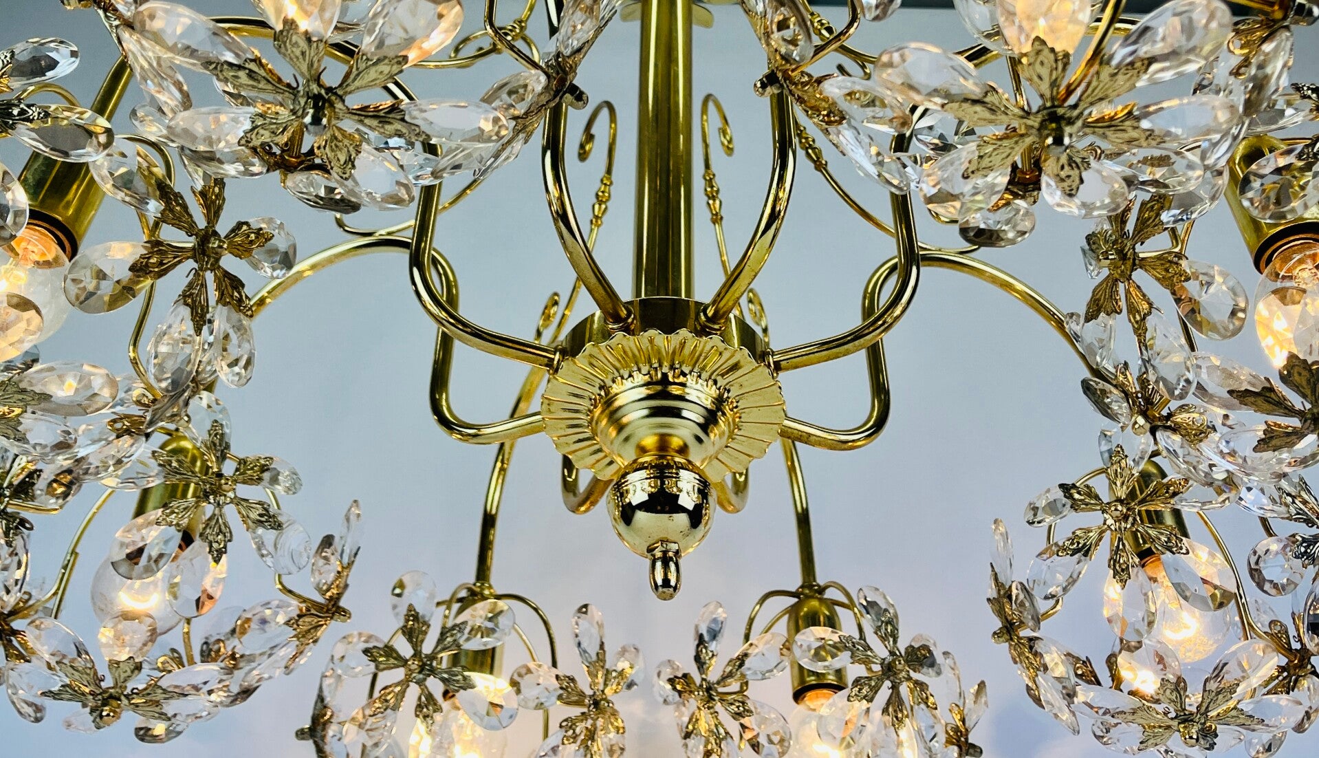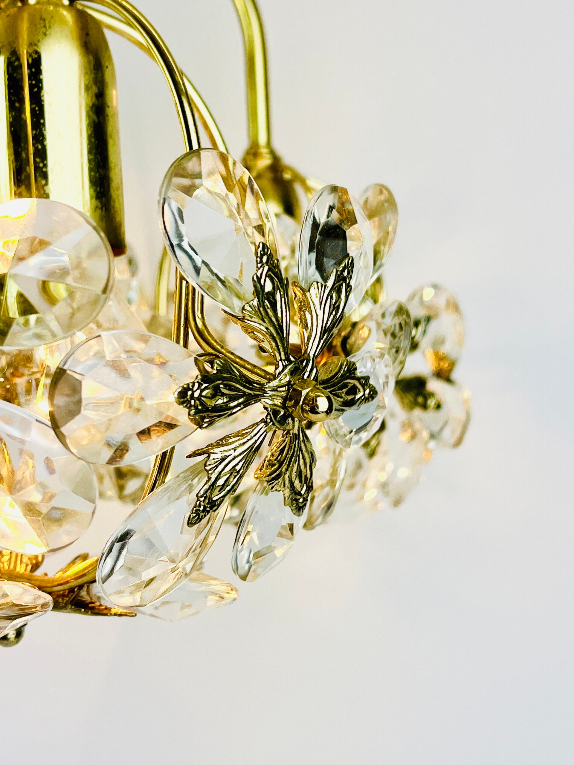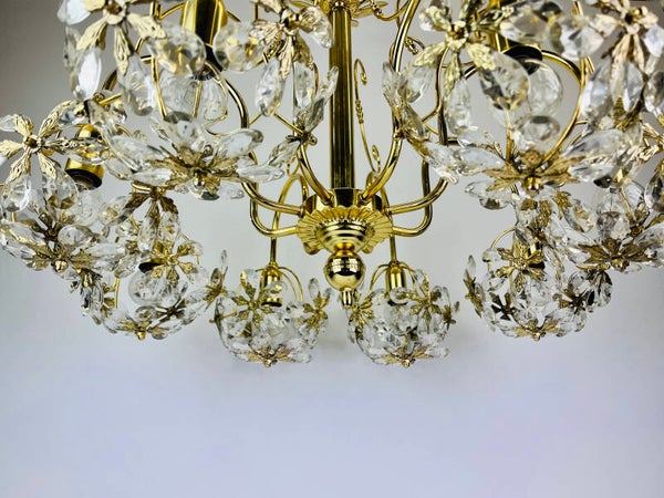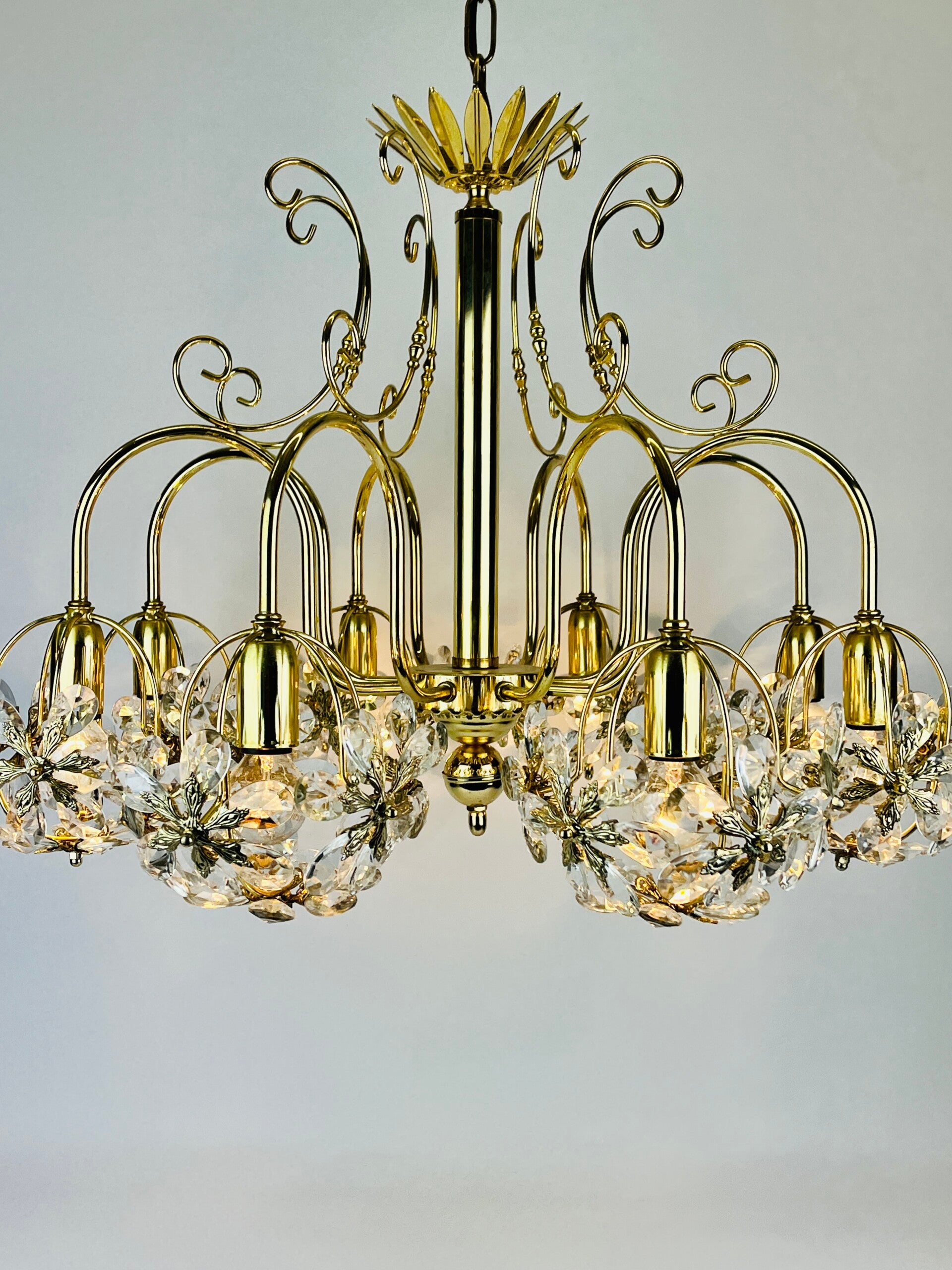 Beautiful large elegant Palwa chandelier from the 1970s. This chandelier is full of cut crystals, which are mounted around the lamp like Edelweiss flowers.