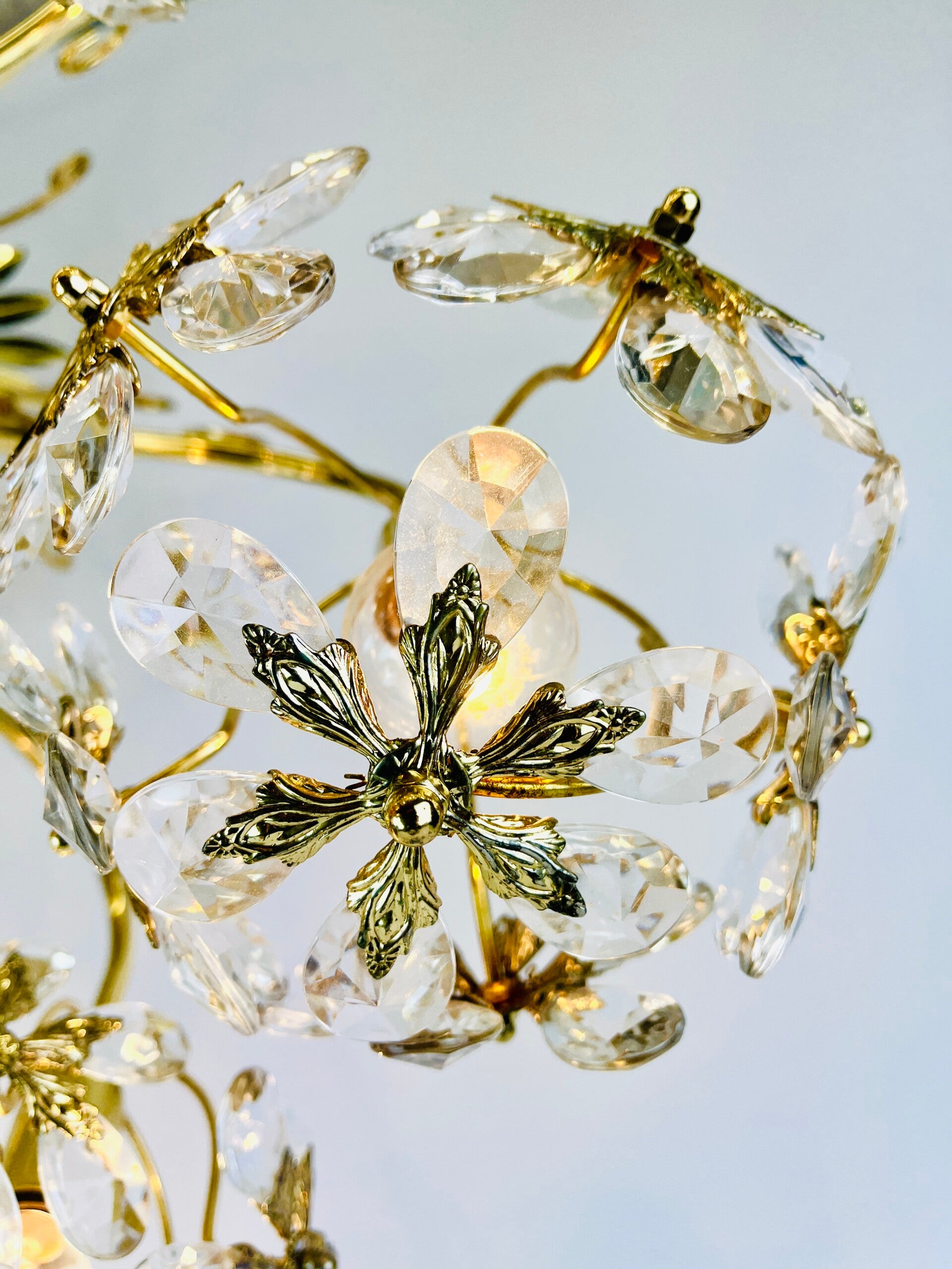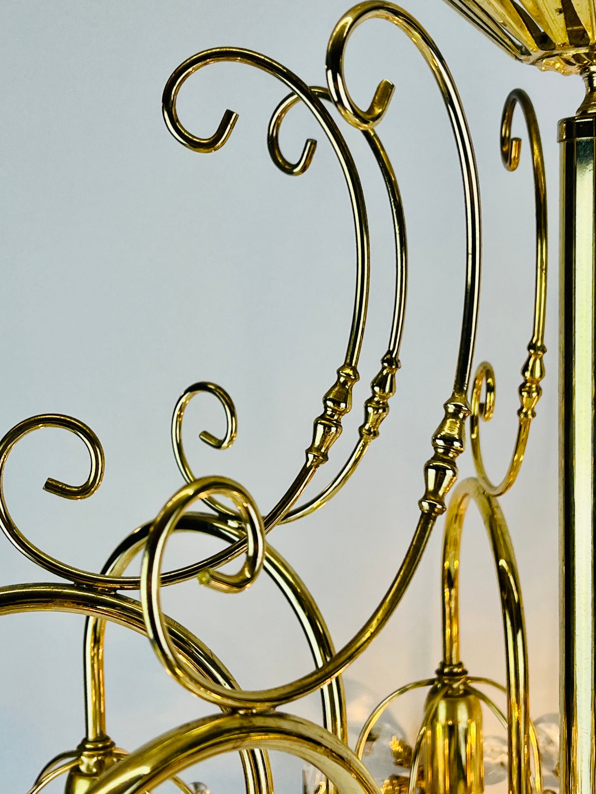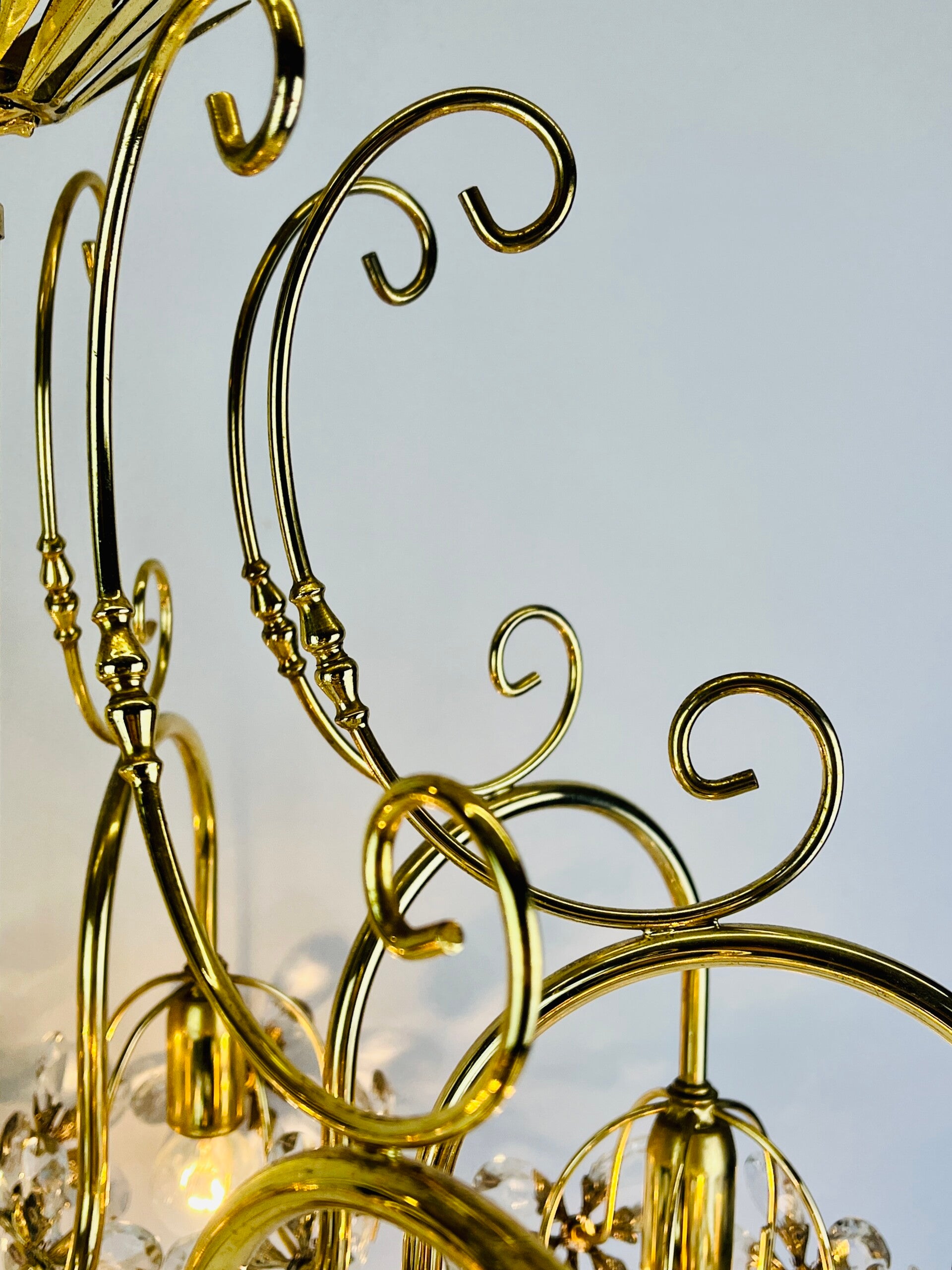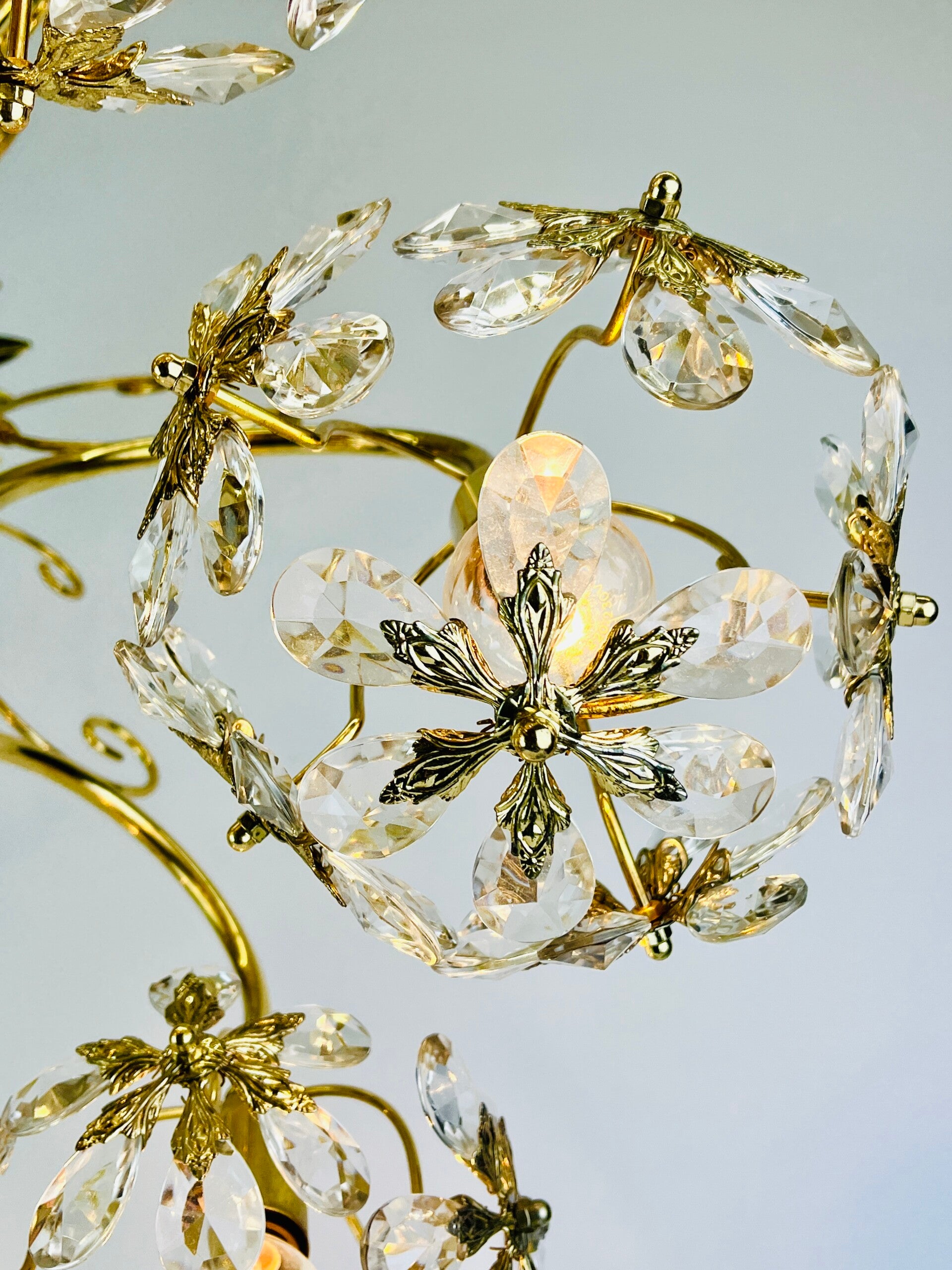 Beautiful large elegant Palwa chandelier from the 1970s. This chandelier is full of cut crystals, which are mounted around the lamp like Edelweiss flowers.