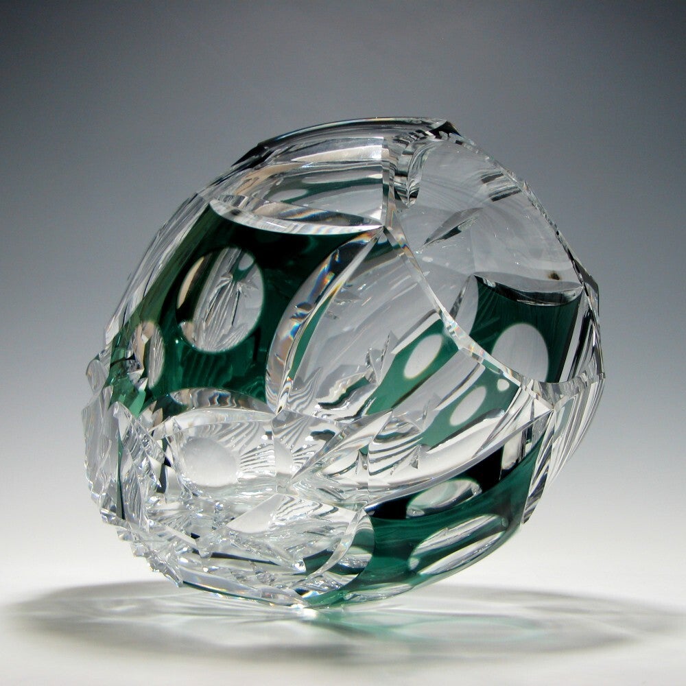 A Val Saint Lambert spherical vase, green and colorless crystal by Hubert Lega.