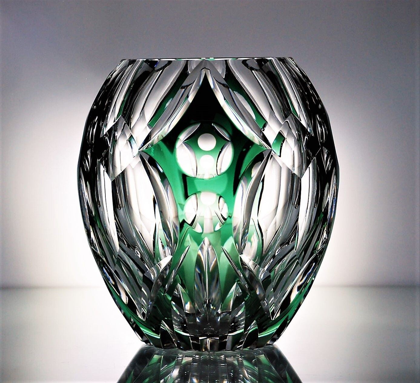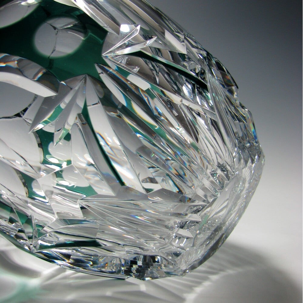 Val Saint Lambert - Green Overlay Crystal Cut Vase - Hubert Lega