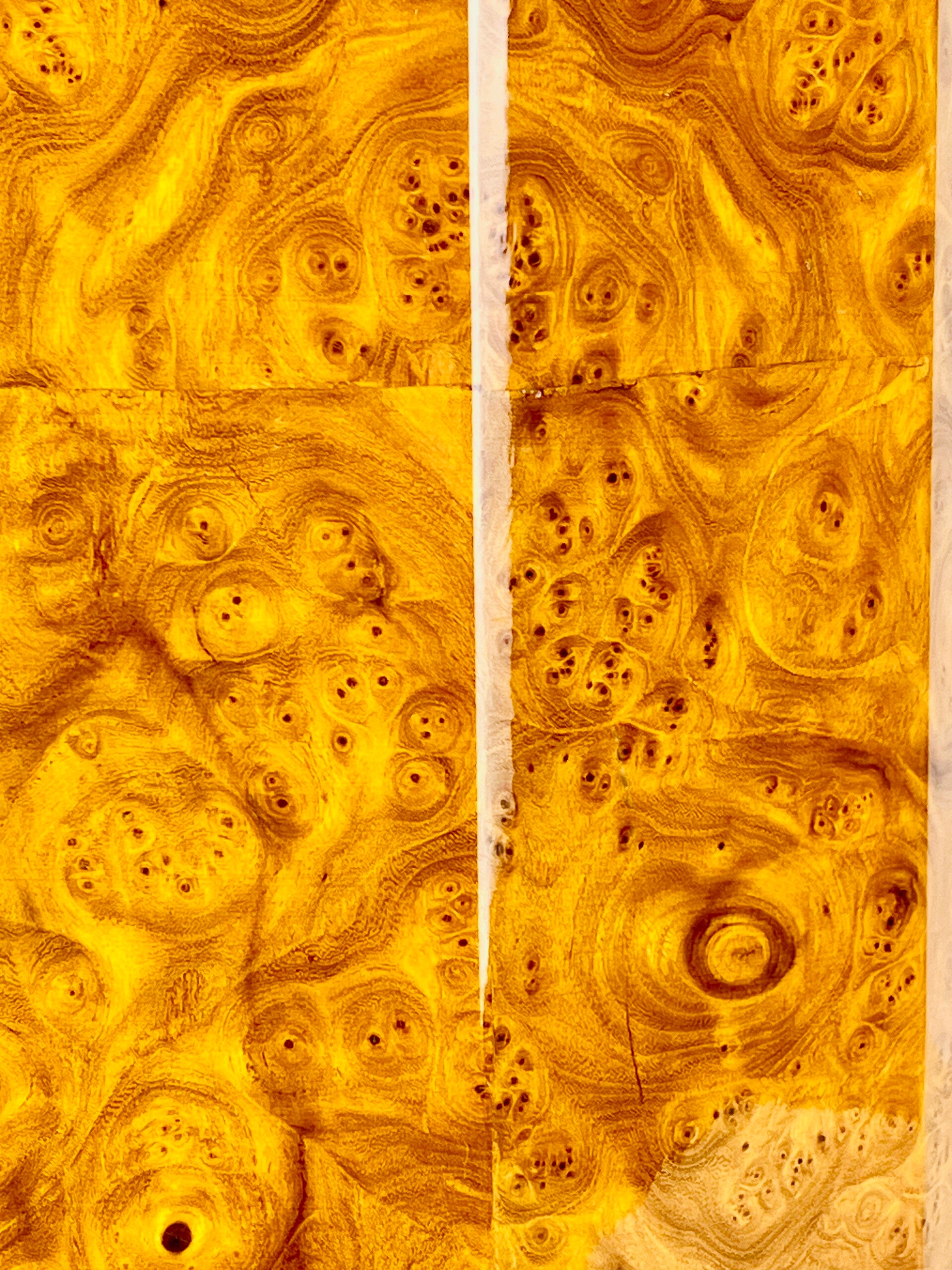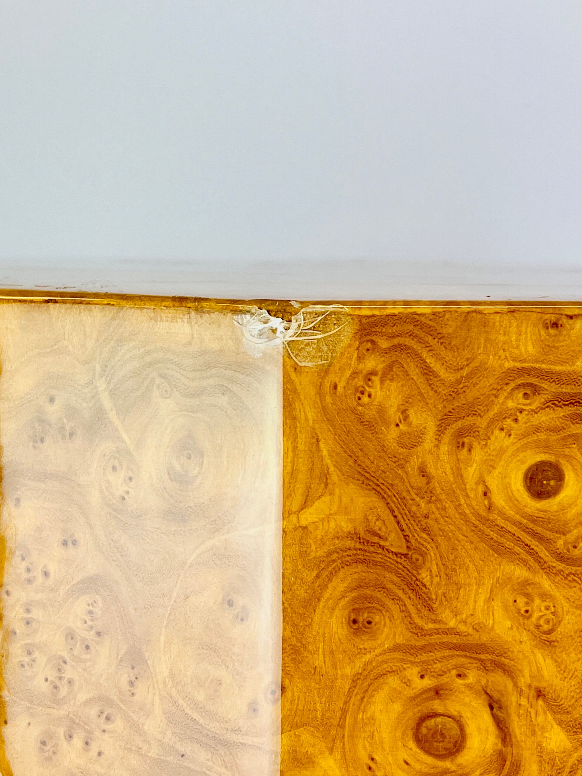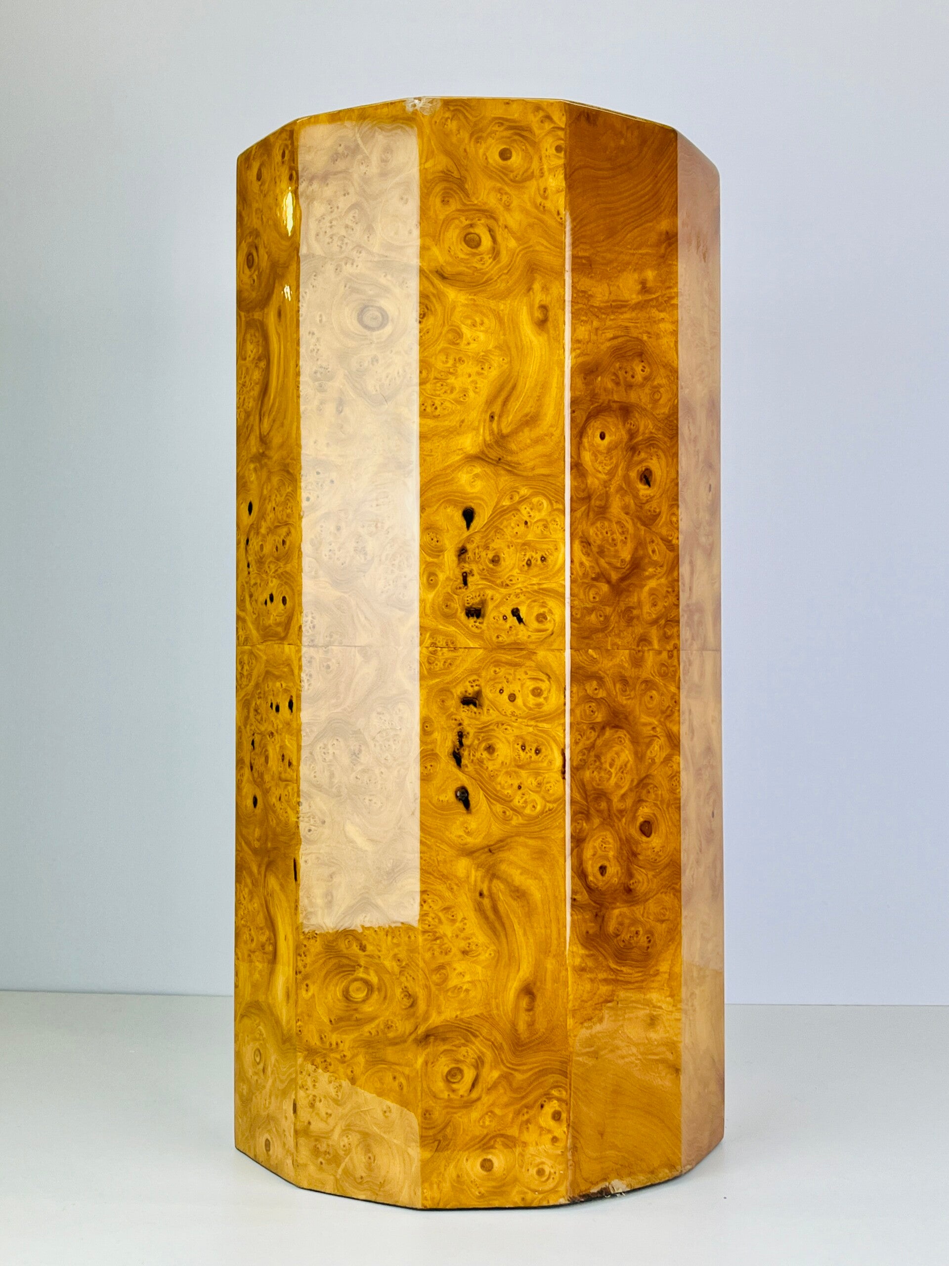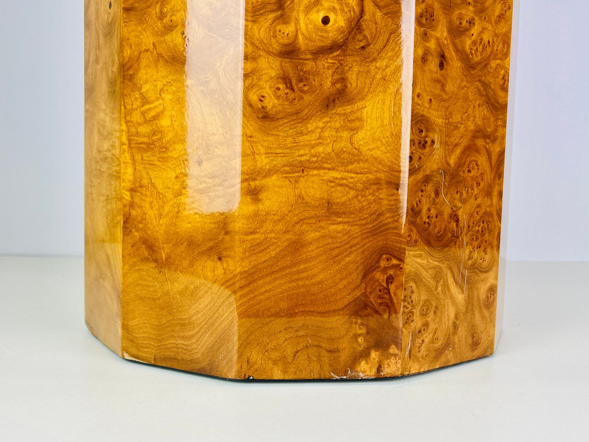 Beautiful 12 angular column made of polished burl wood, the column has a beautiful shine due to the deep layer of lacquer applied to the veneer.