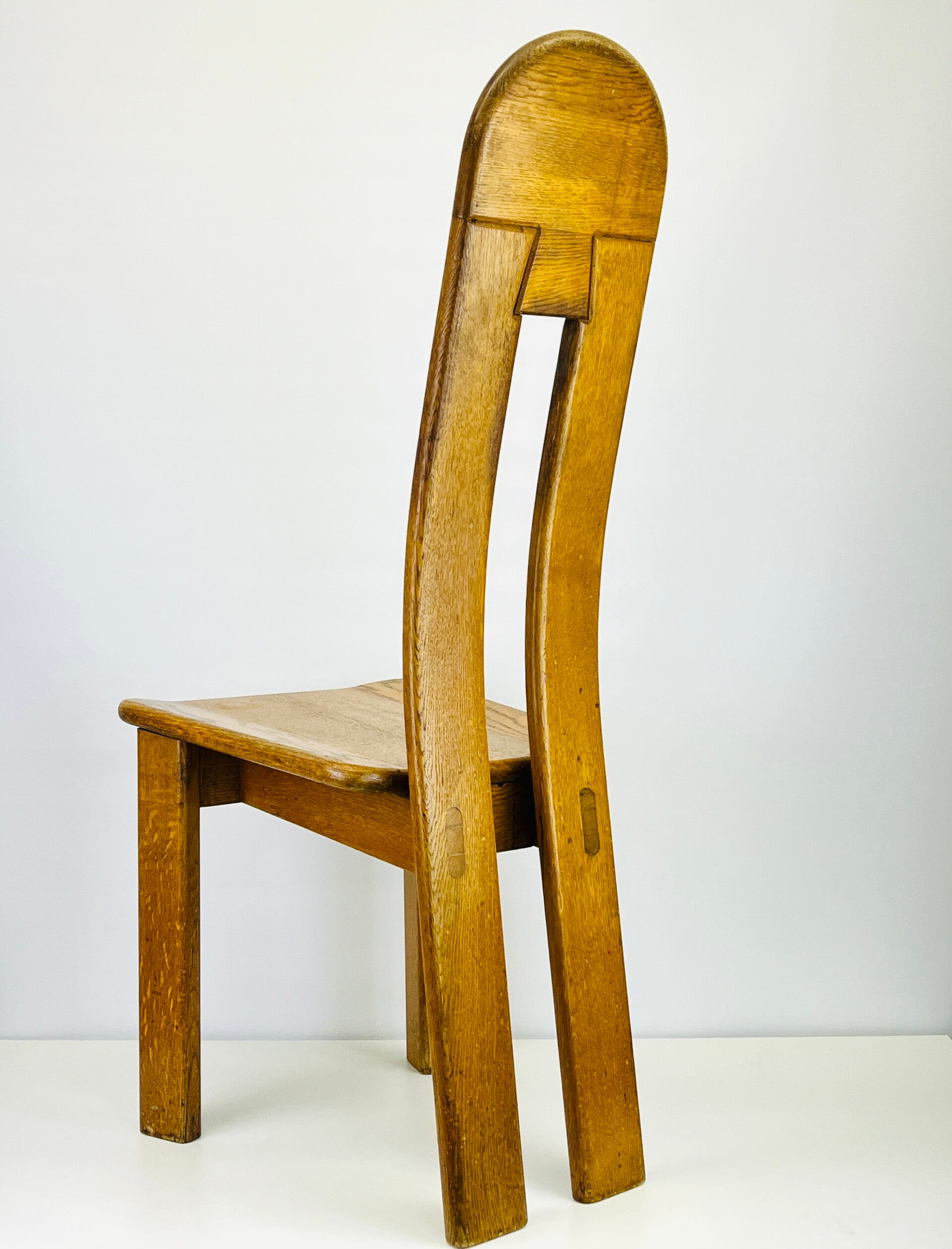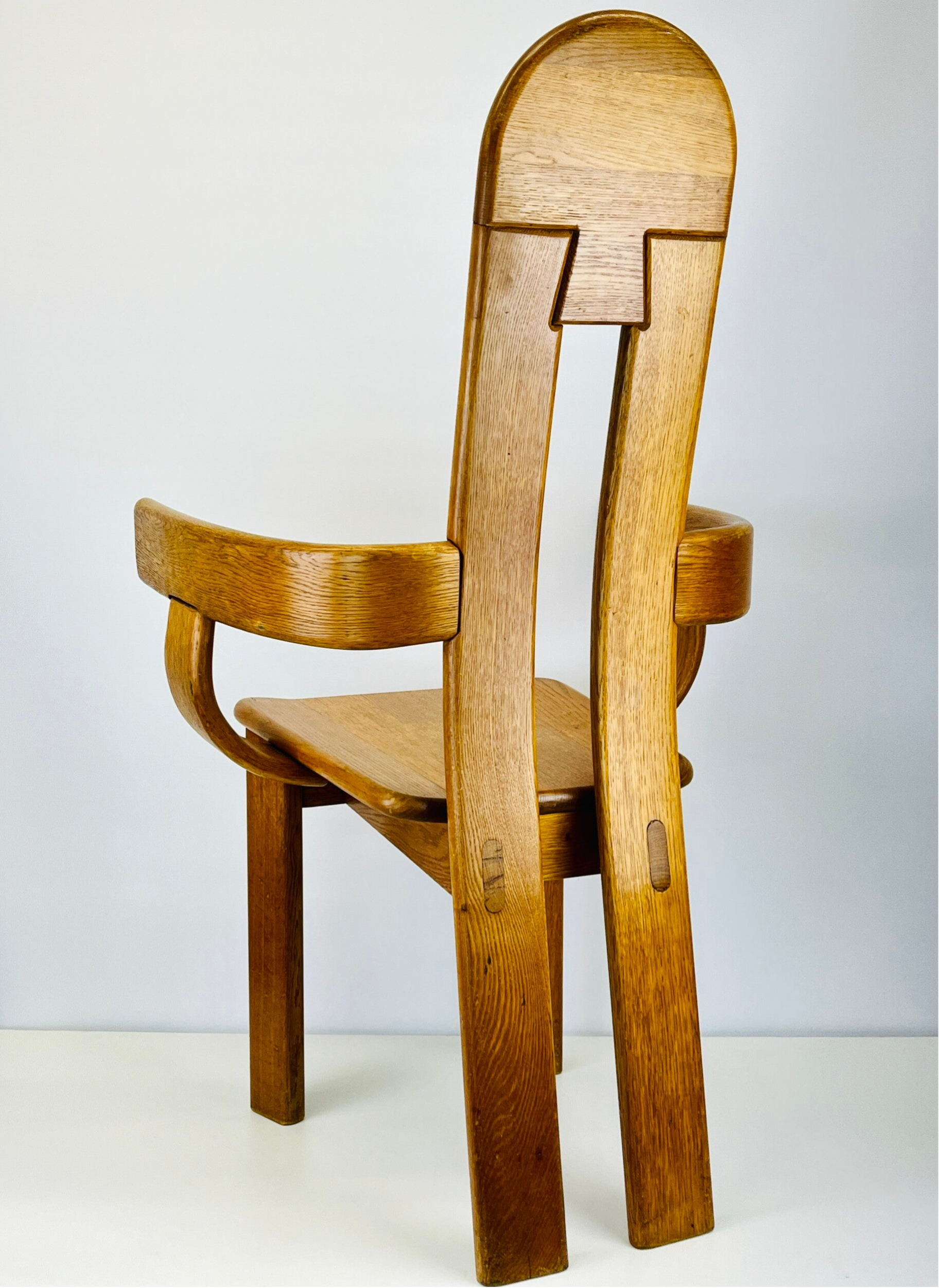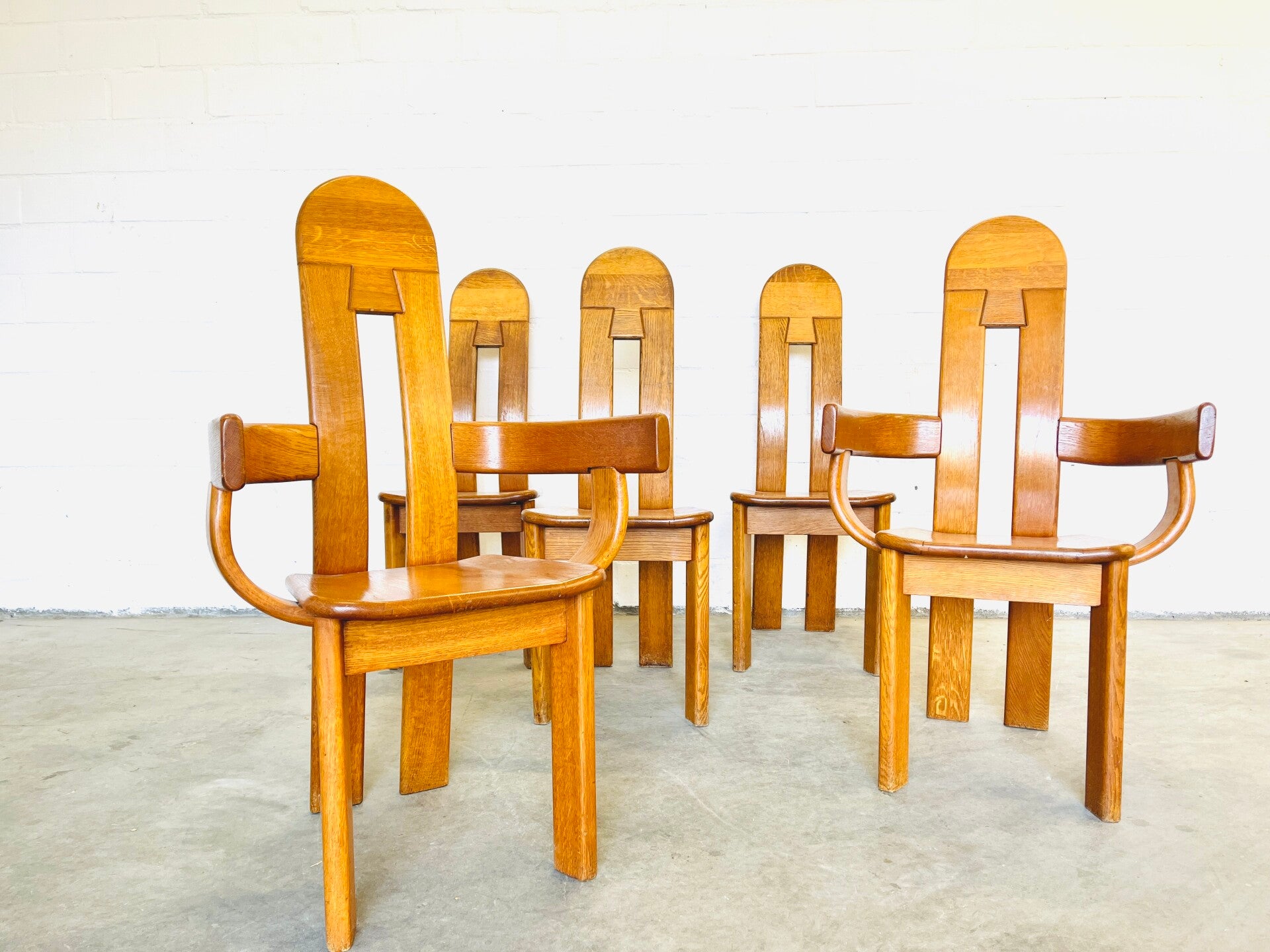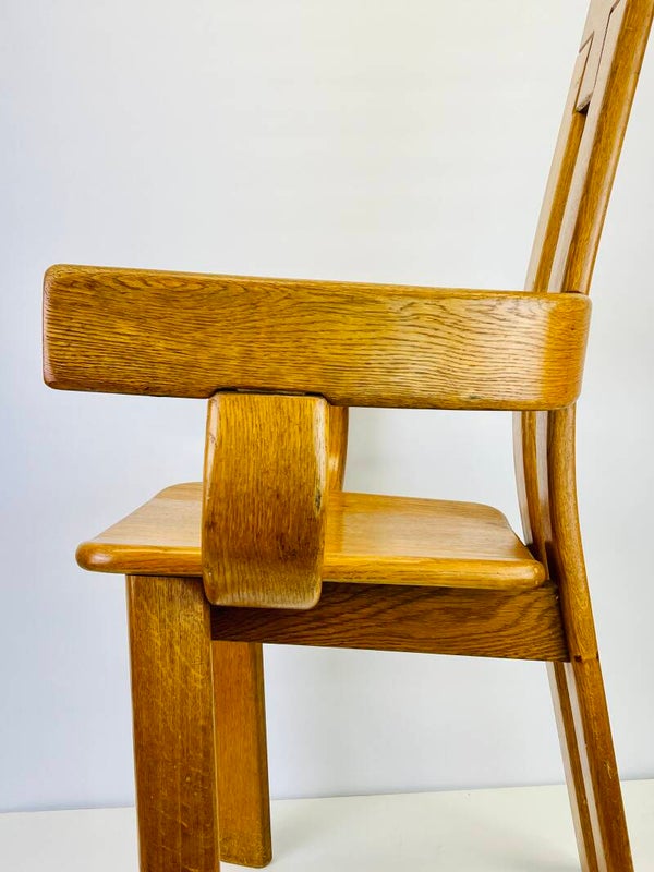 Set of five Brutalist chairs in oak from the 1970s, produced by the Belgian furniture maker De Puydt.
