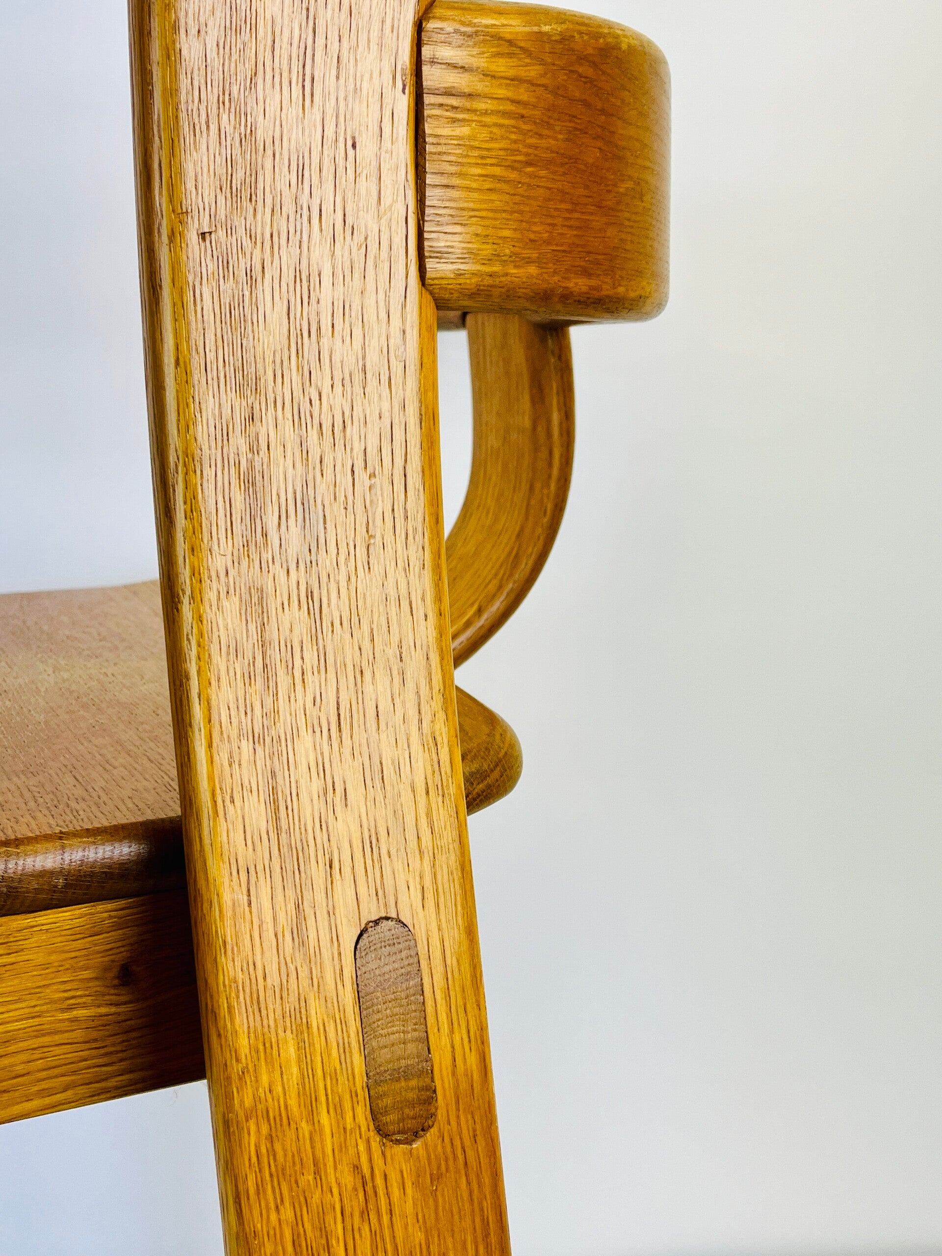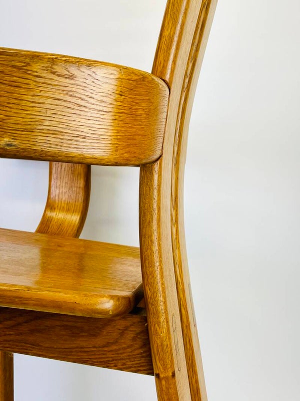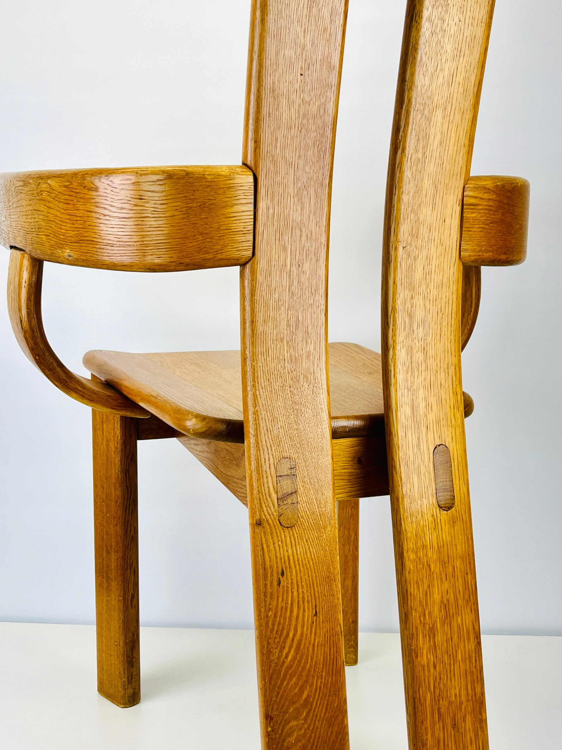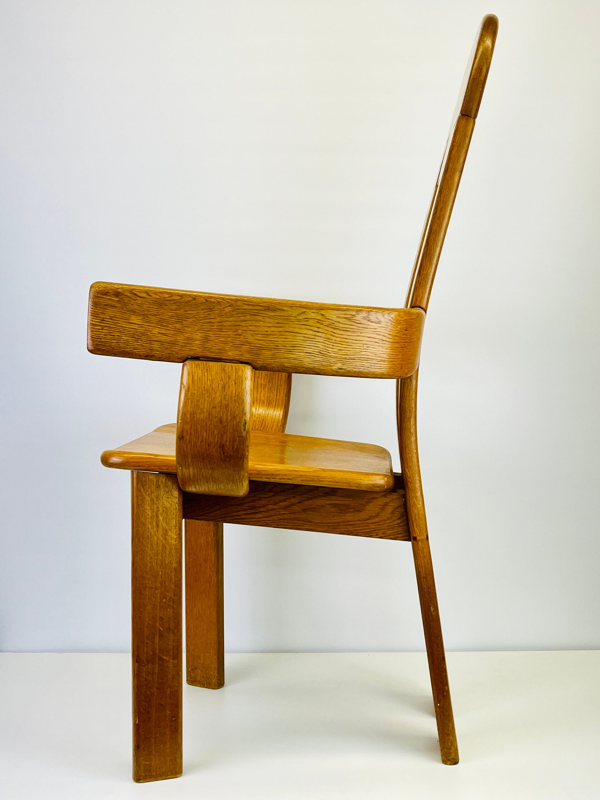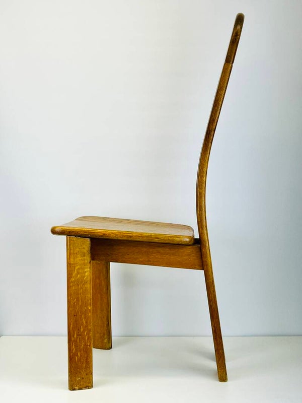 Set of five Brutalist chairs in oak from the 1970s, produced by the Belgian furniture maker De Puydt.