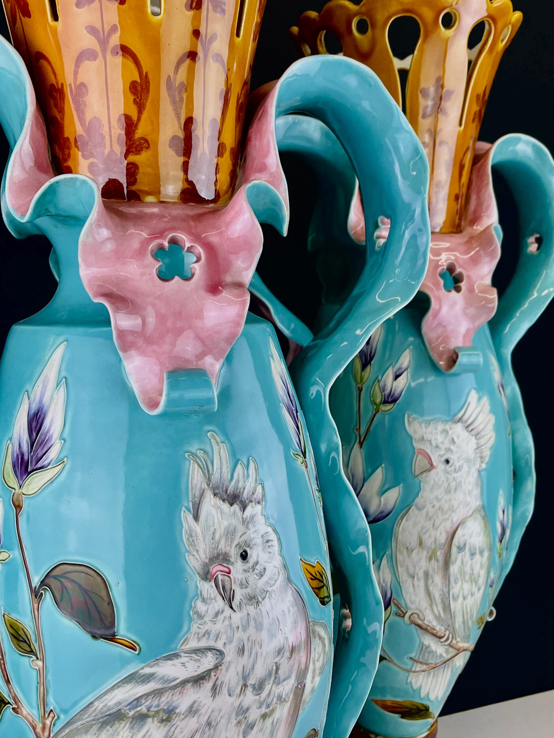 19th Century Ceramic Cockatoo Vases