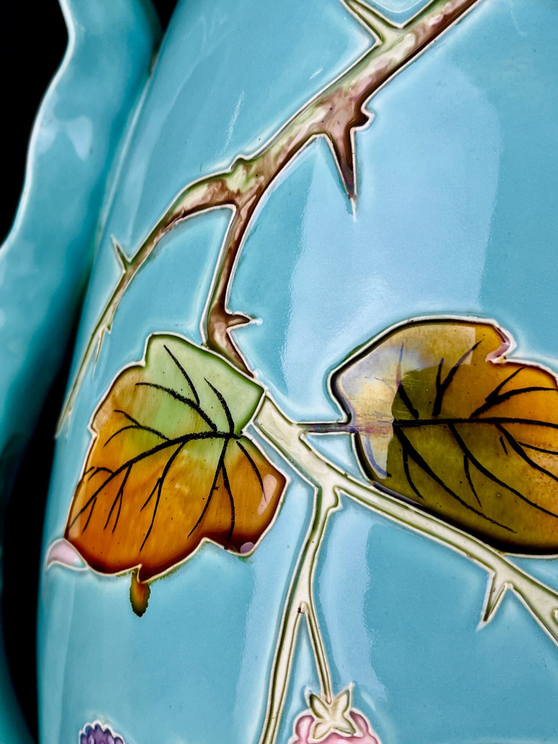 Important late 19th century work. Impressive pieces that catch the eye because of their large and striking color combinations.