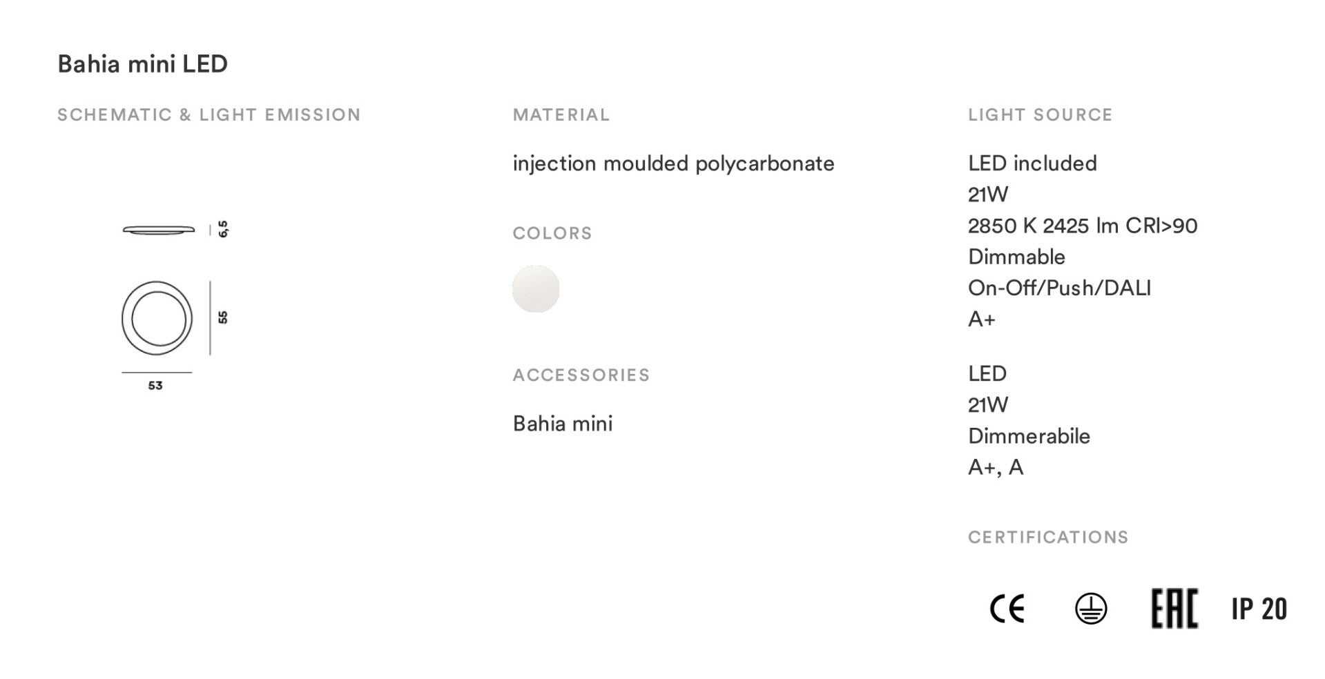 Bahia LED, dimmable model with integrated LED that can be used as a wall or ceiling lamp. A design by the duo Lucidi e Pevere for Foscarini.