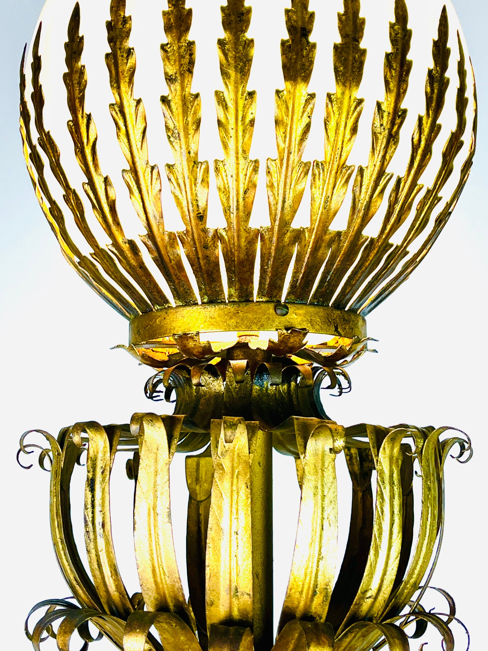 The crown of the lamp is finished with a glass opaline ball that fits perfectly between the branches of the lamp.