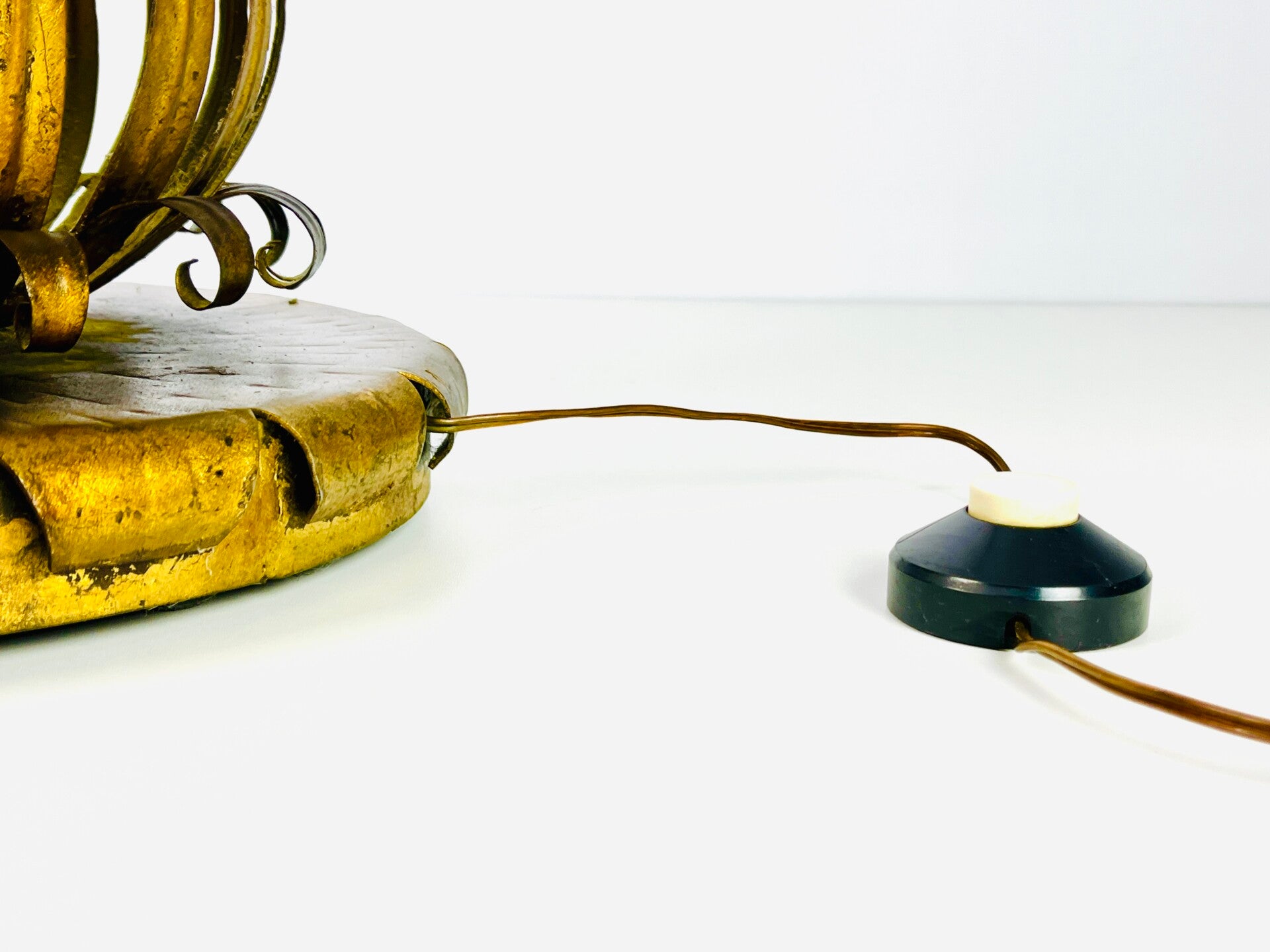 The lamp is made of a metal, gold-plated structure, very sturdy