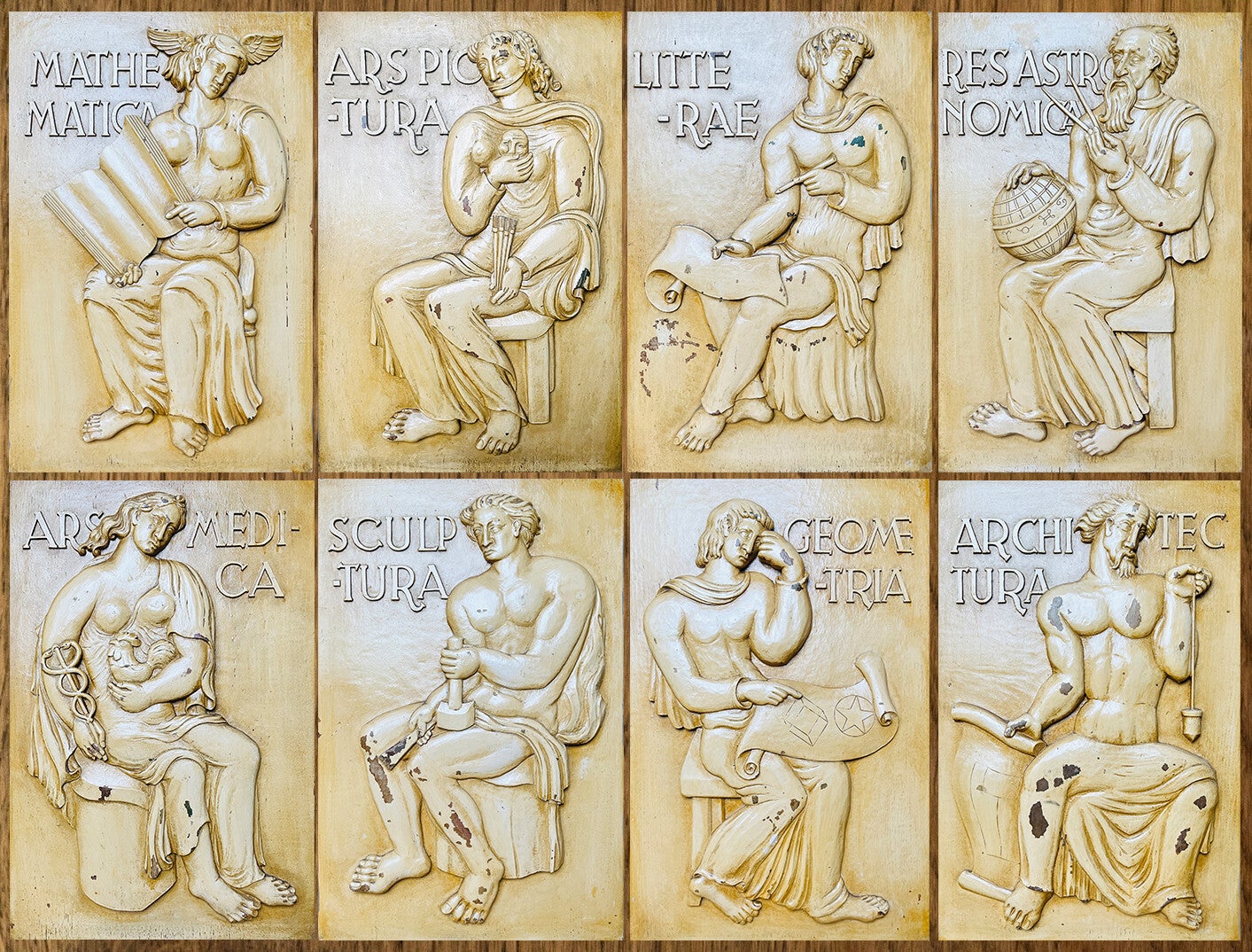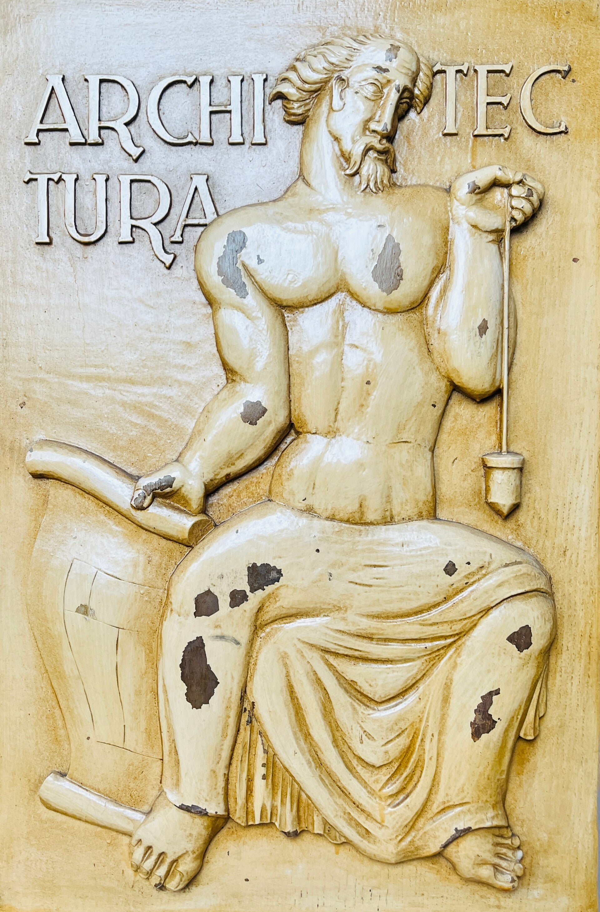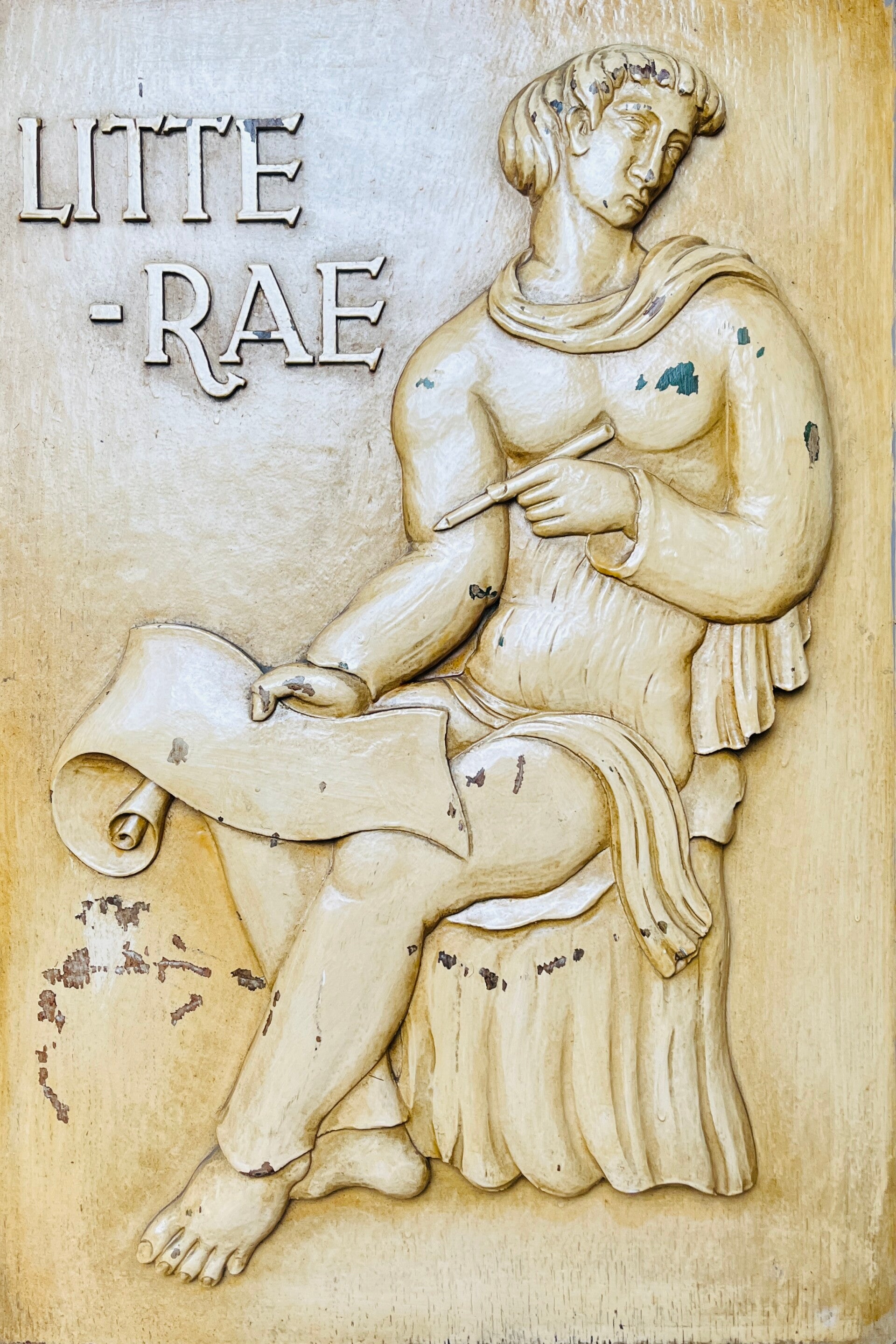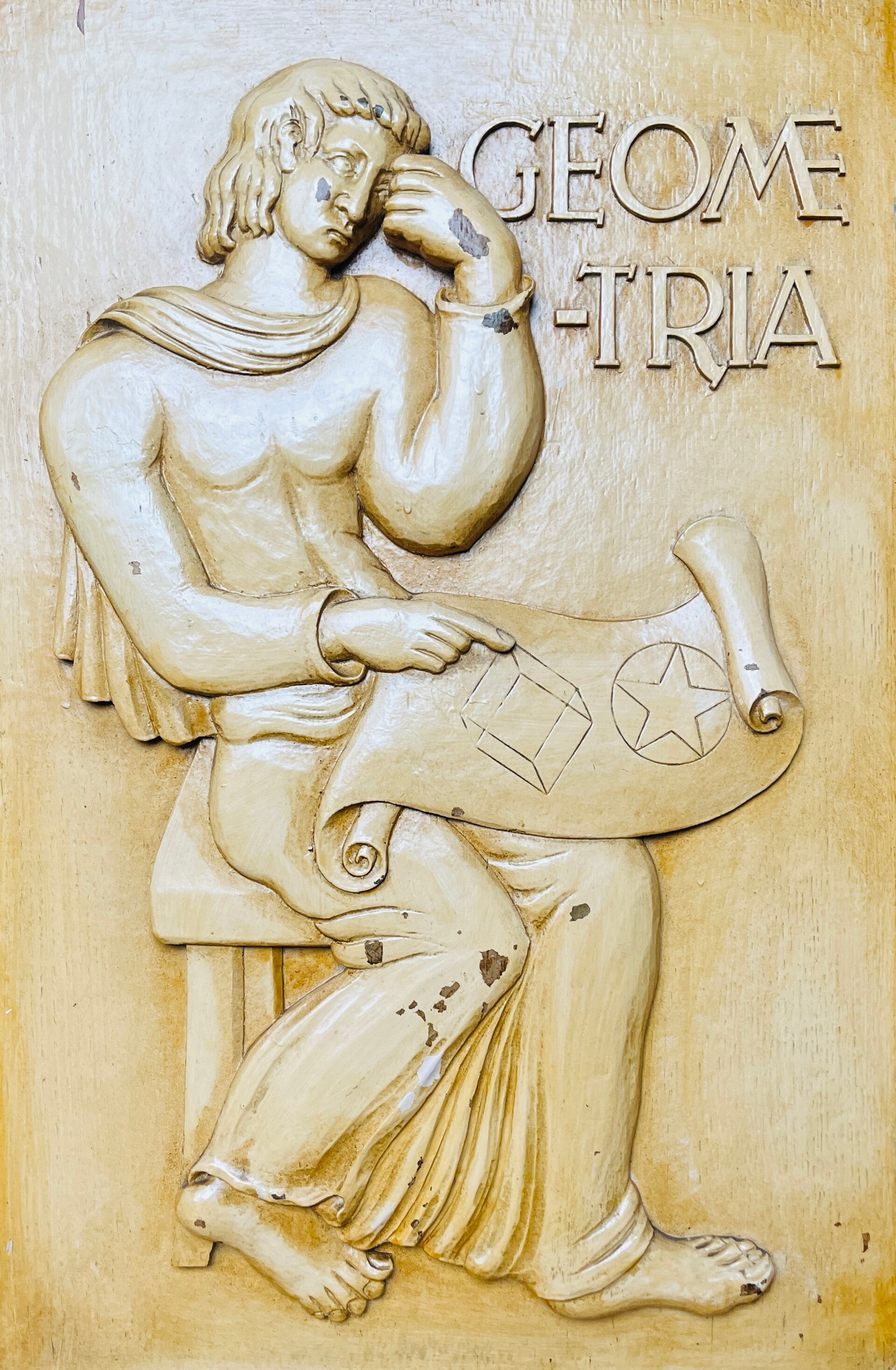 The set represents Greek Latin texts of educational forms. Each wall panel has been worked out in detail and the texts are very finely cut. Lacquered in a white ecru lacquer layer.