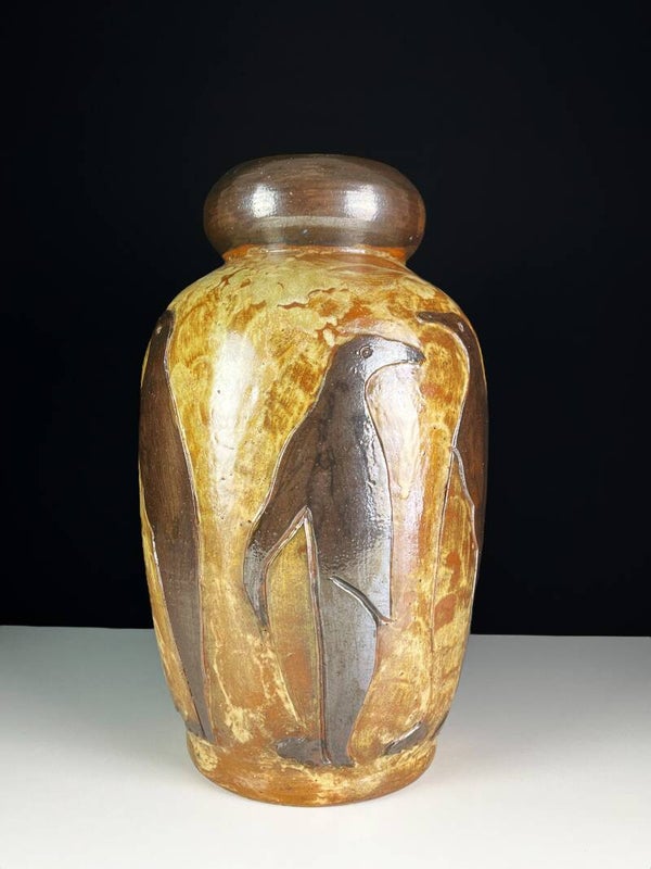 Rare Art Deco Penguin vase by the Belgian ceramist Jules Guerin