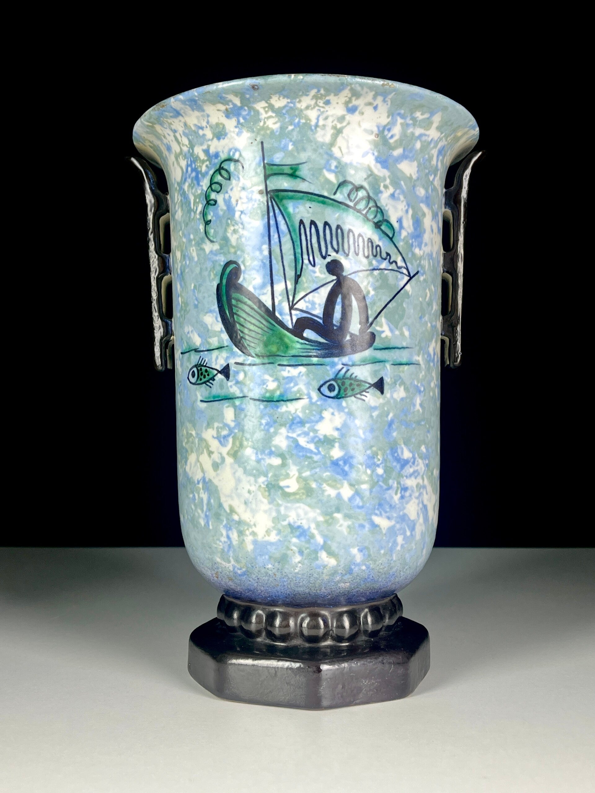 Special limited vase, designed by Raymond Chevalier for Boch Keramis. Circa 1950.