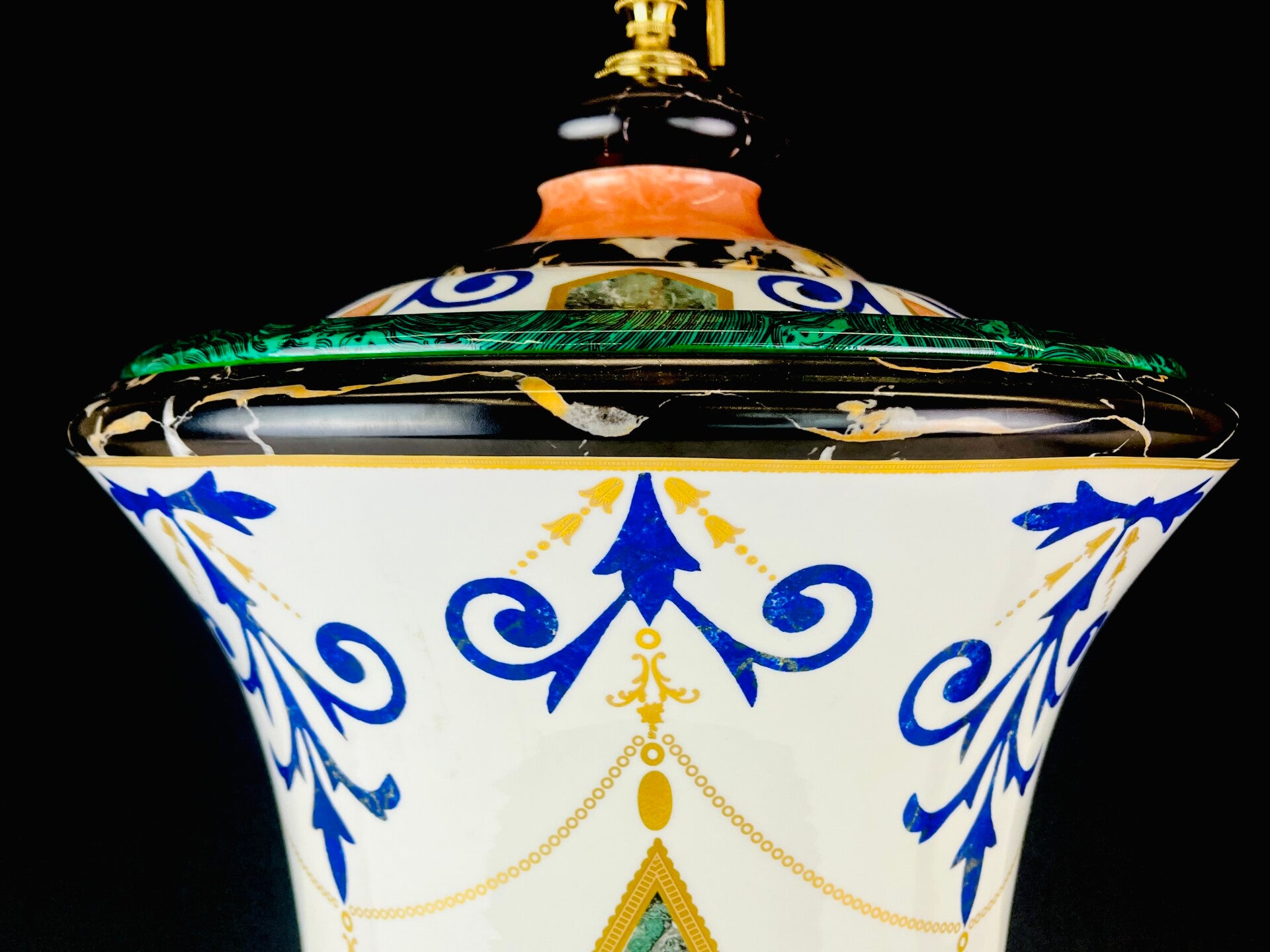 Giulia Mangani - New Rare Table Lamp - Pietra Dura Style, Inlay Malachite & Marble