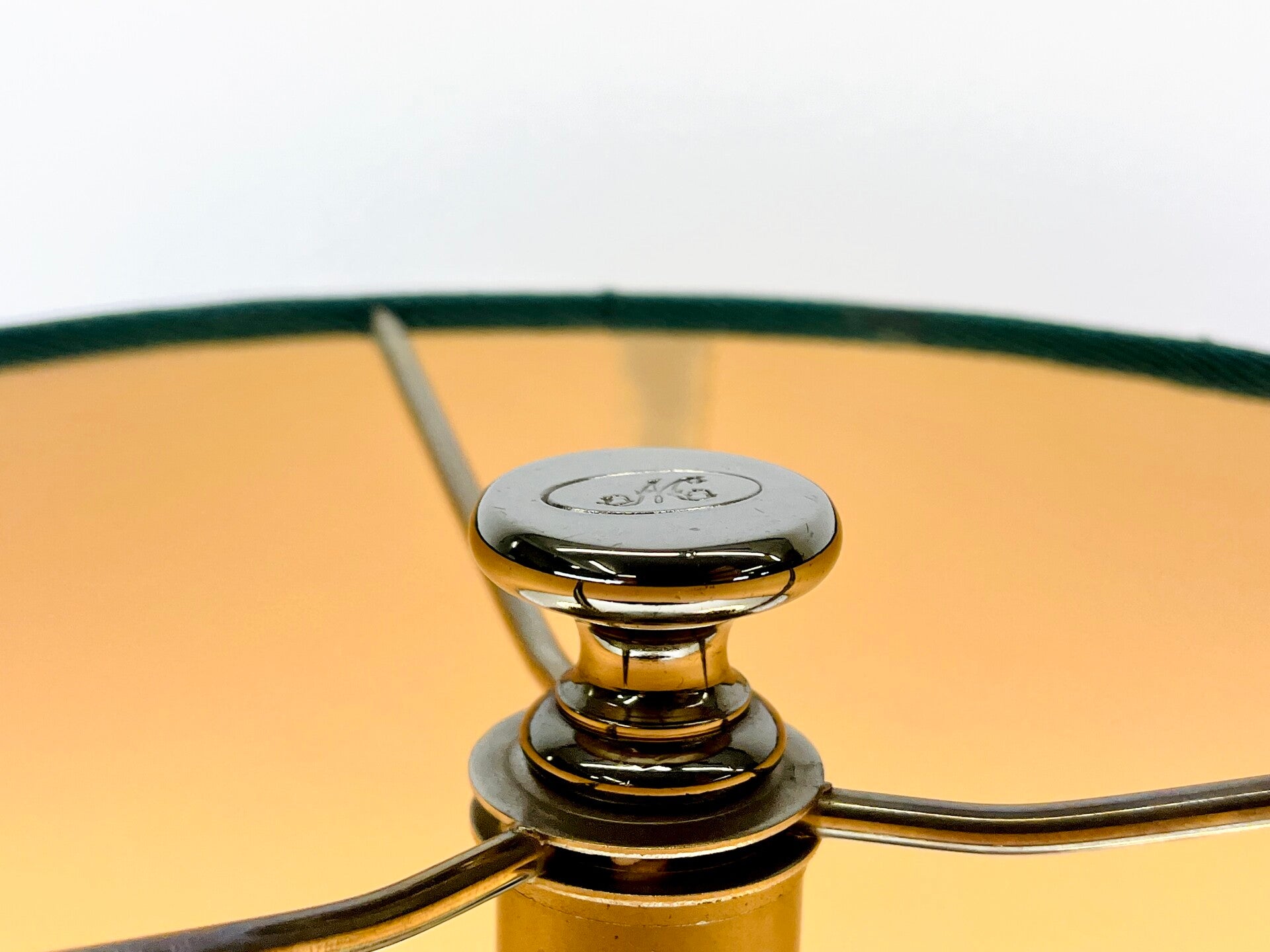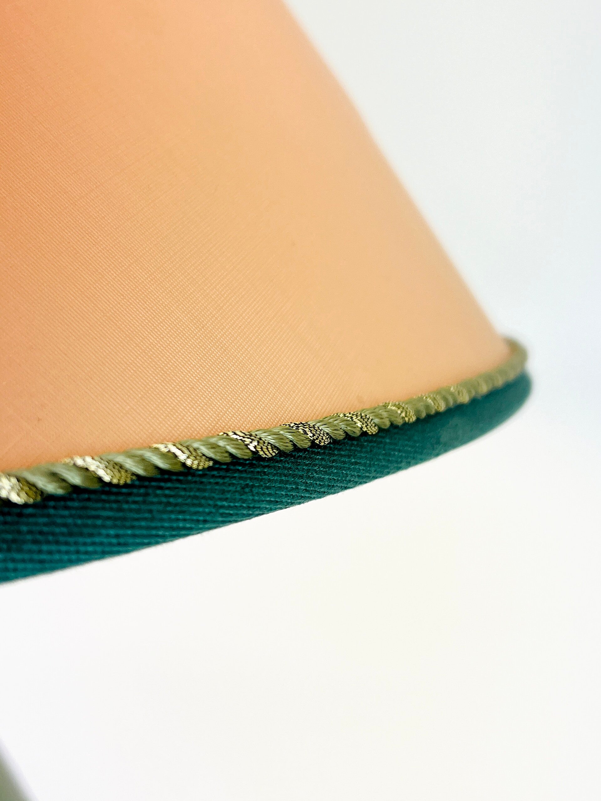 For this model, an appropriate lampshade was provided with borders in the main colors of the base. The lampshade is screwed on with an elegant screw cap from Mangani.