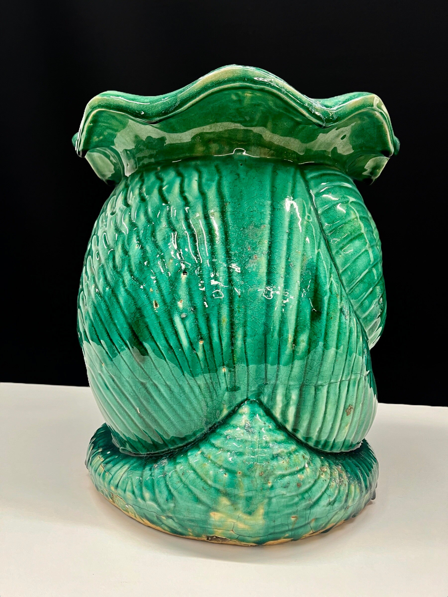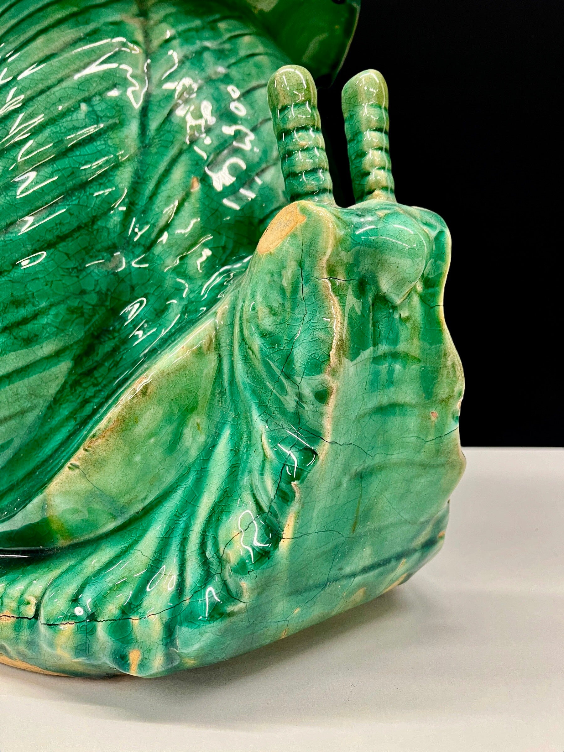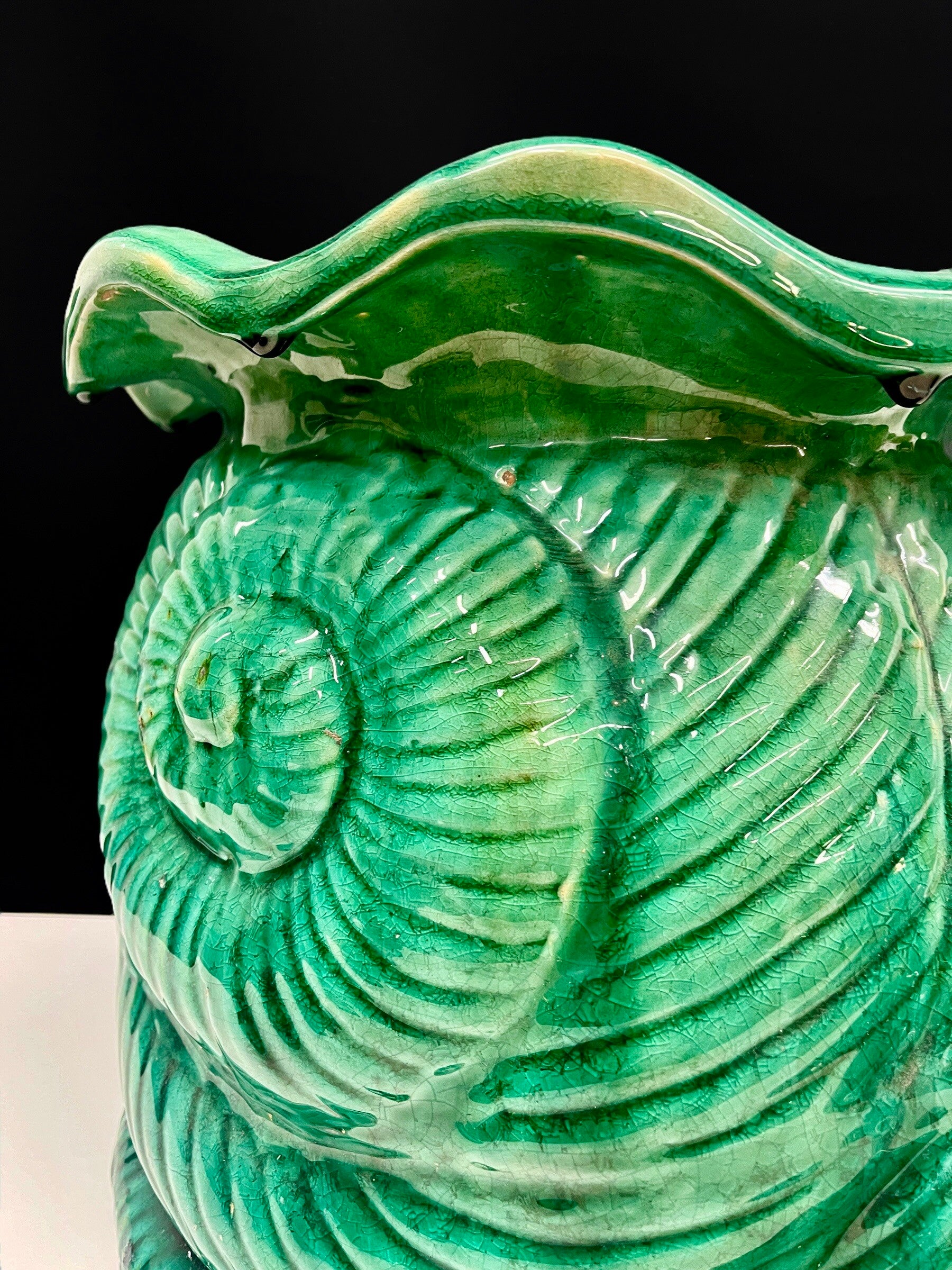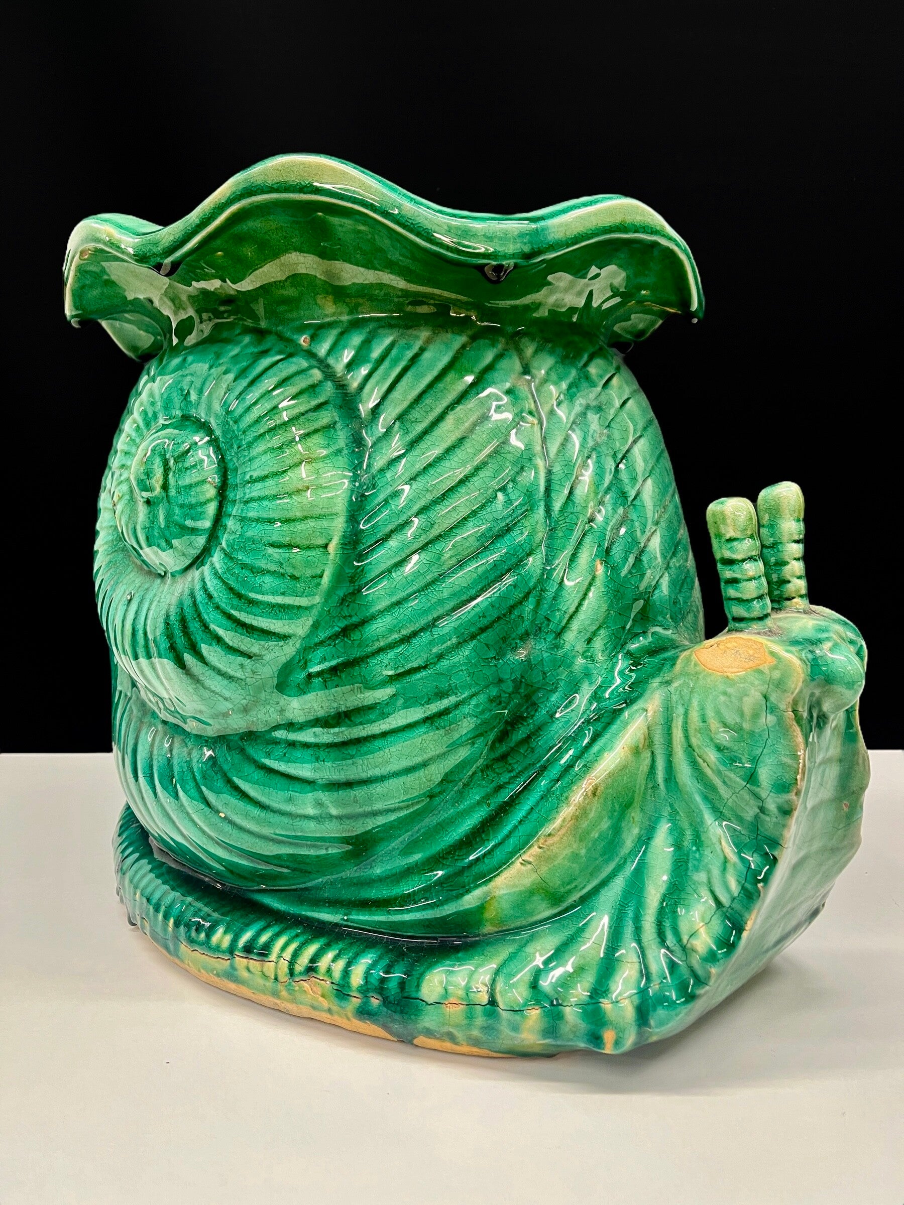 Exceptionally large planter made of terracotta, green glazed snail. Circa 1940-1950. Very decorative piece that has formed its own character over the years.