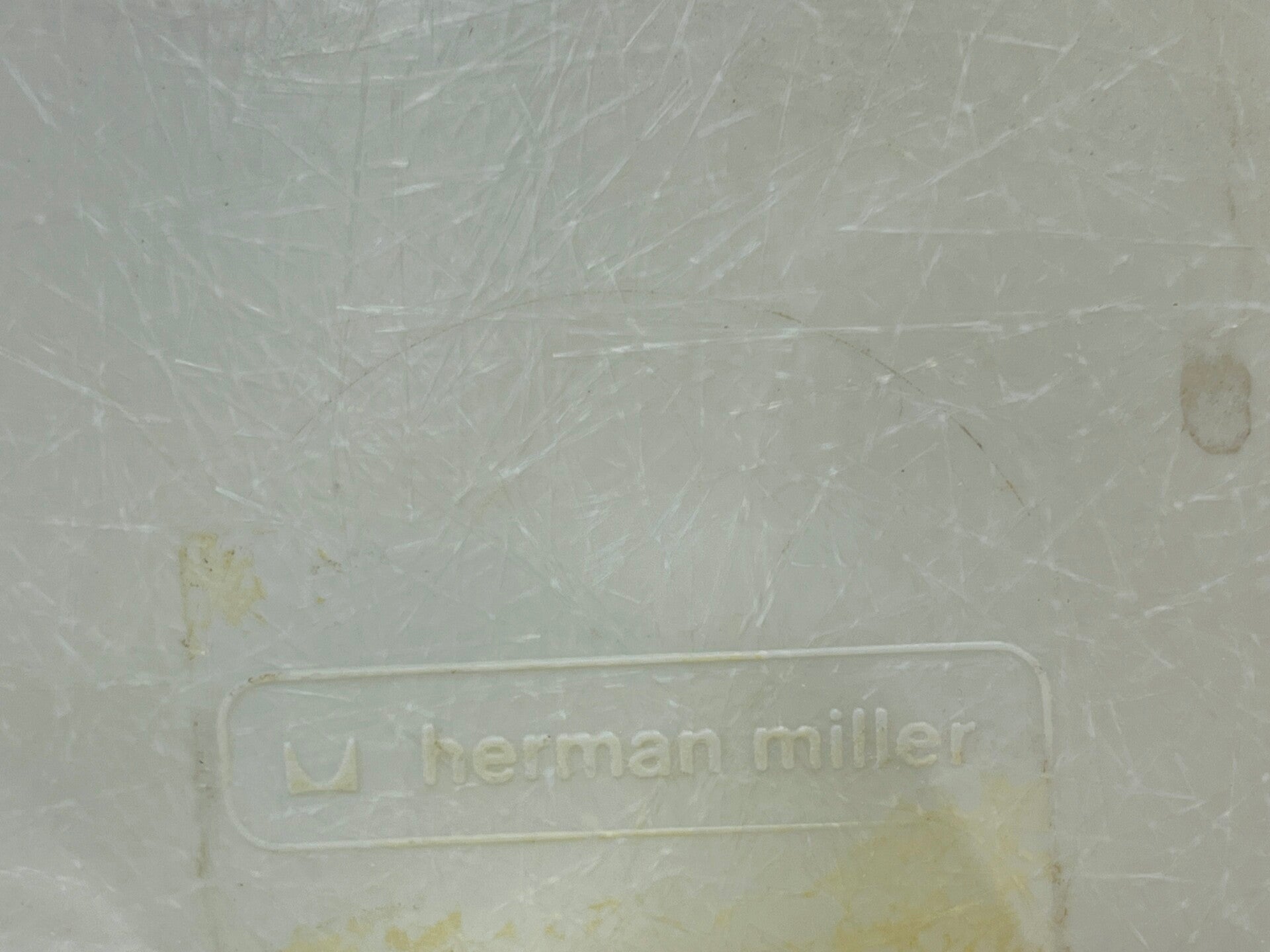 White lacquered legs of the La Fonda type, All chairs are marked at the bottom and labeled with the Herman Miller impression logo and a Vitra label.
