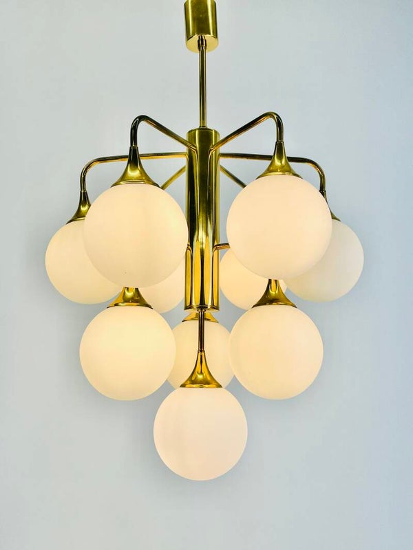 Boulanger - 70s Hanging Lamp in Brass - 10 Opaline Spheres