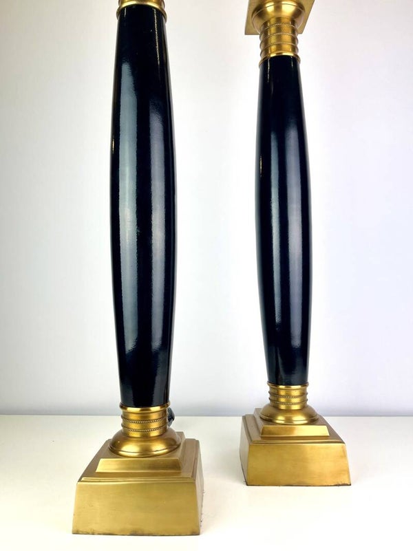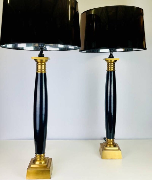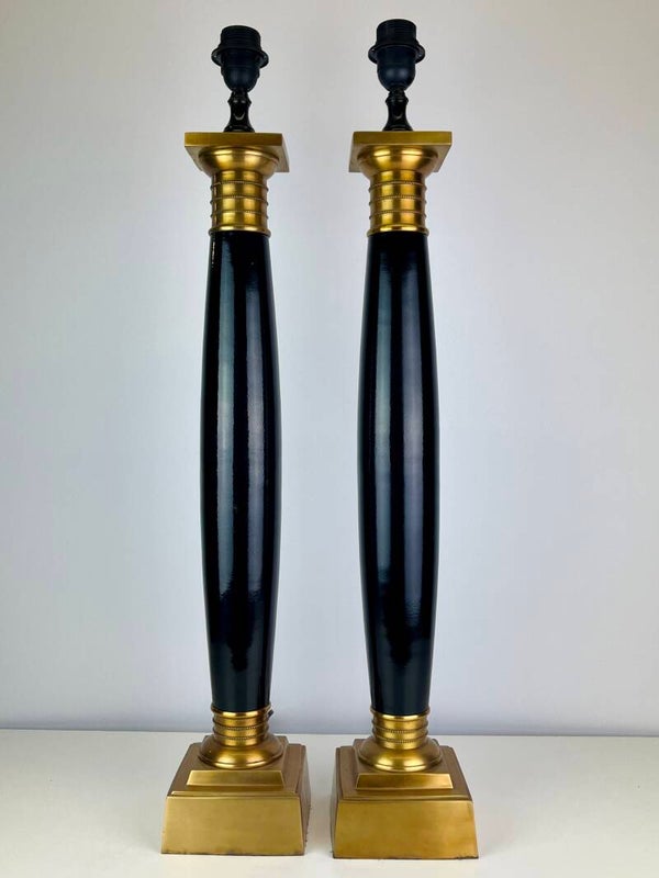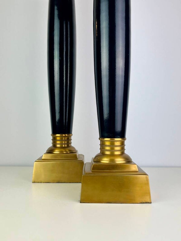 Very high pair of table lamps in lacquered steel, mounted on a brass base. Very stylish design from the Eichholtz collection.