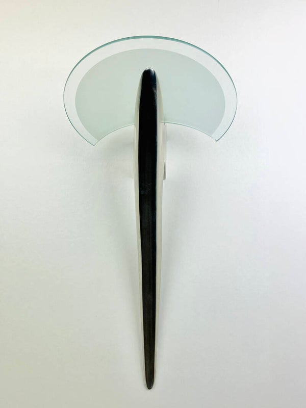 This futuristic design is made of polished aluminum. The diffuser is made of glass, satin-finished and clear glassware. Provides a beautiful distribution of light.