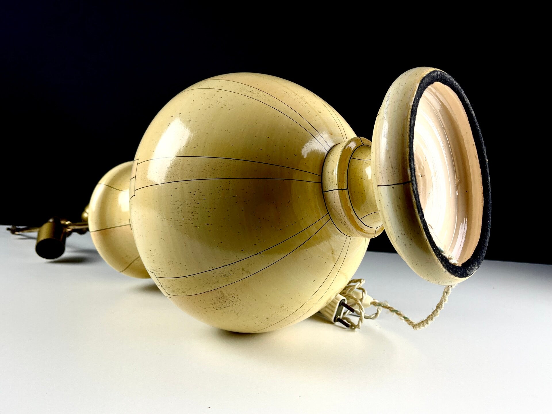 This is an early model signed at the bottom of the lamp in the ceramic. Equipped with upholstered cabling and fittings that can be rotated.