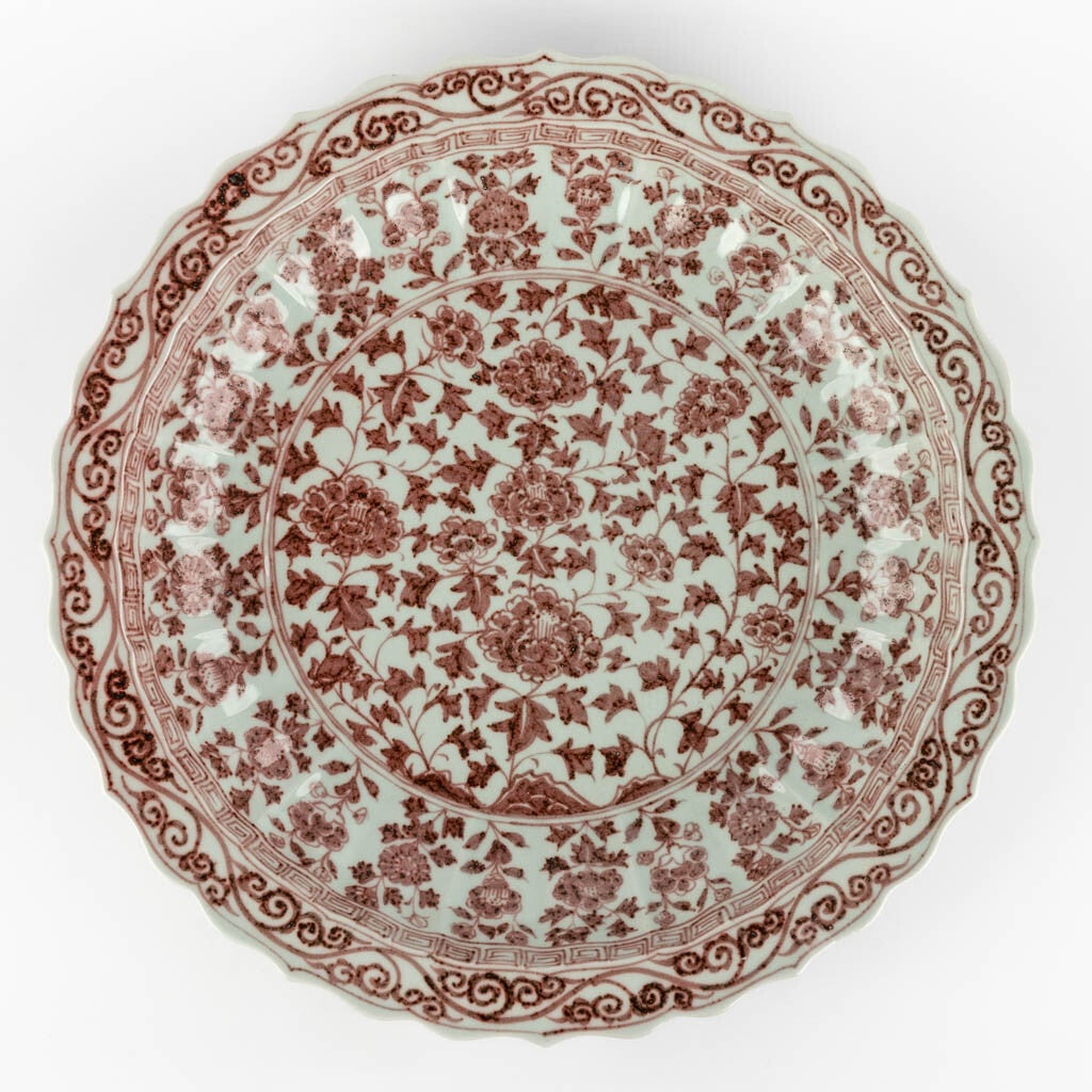 A Chinese Copper-Red Peonies Plate - Qing Dynasty ( 1644-1911)