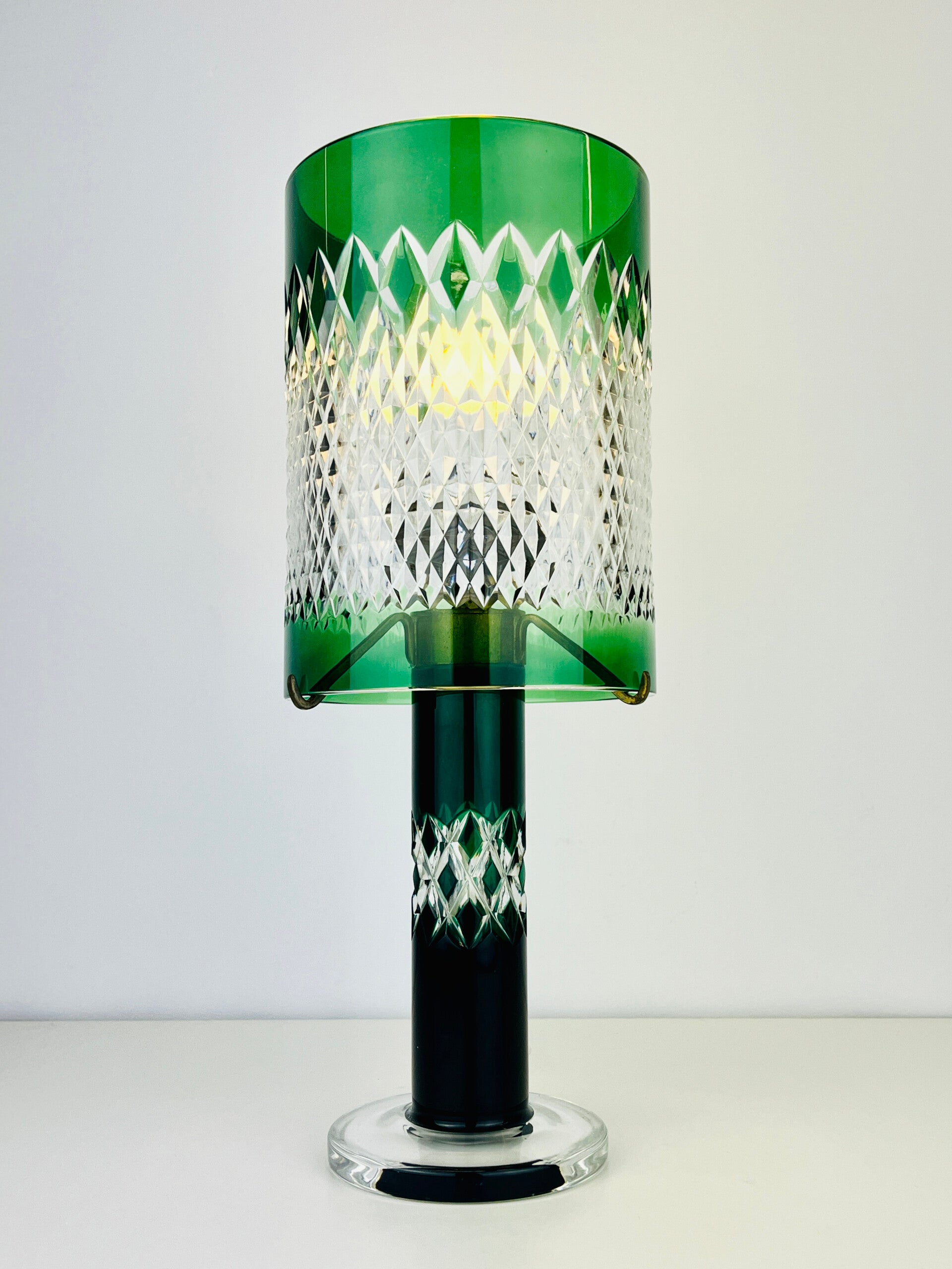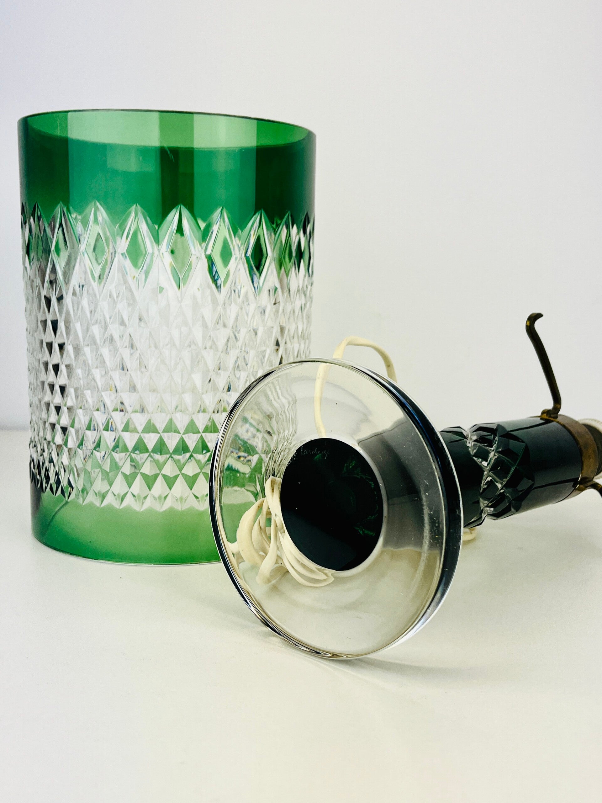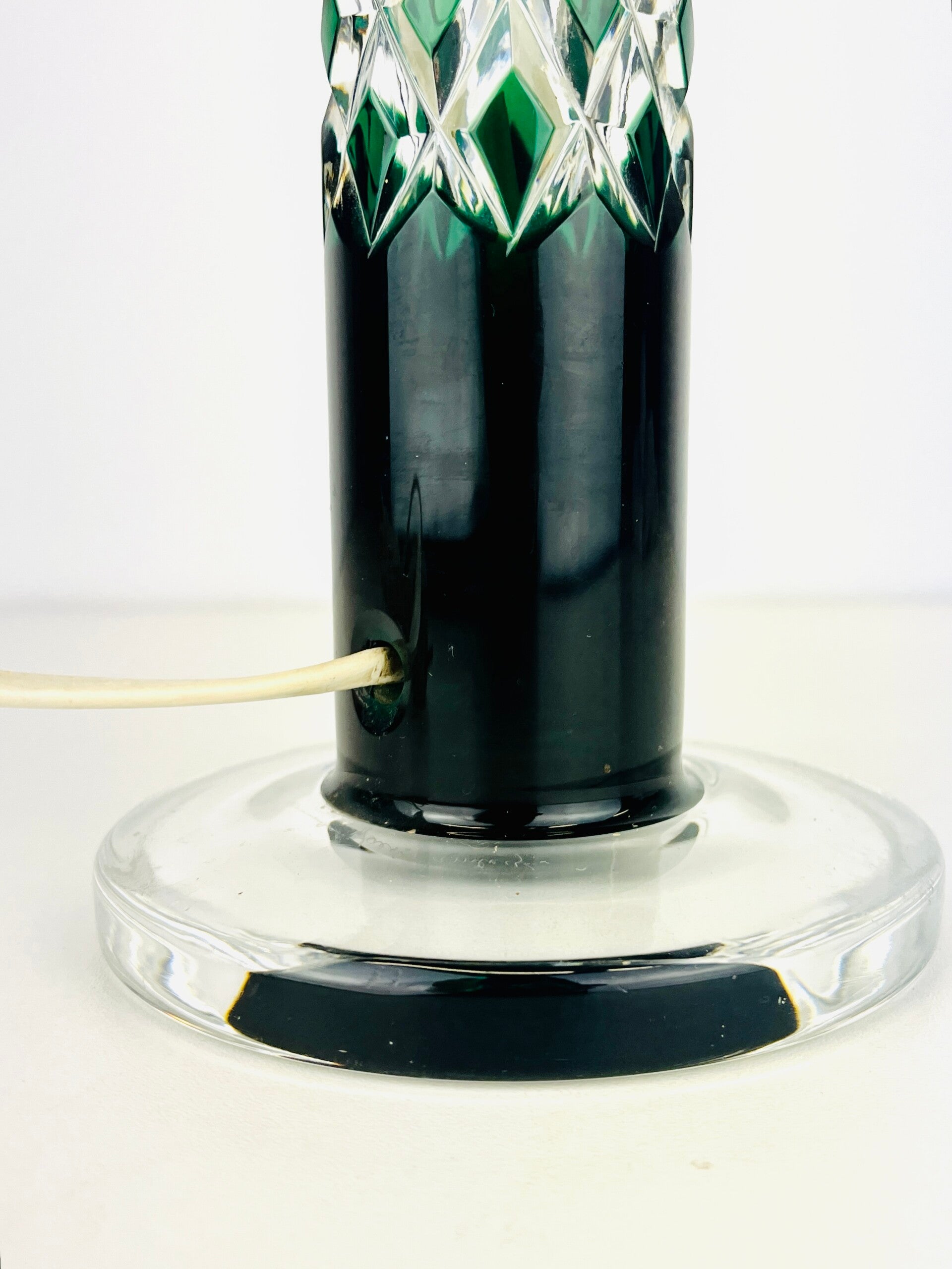 Val Saint Lambert - Green Crystal Table Lamp - Linares