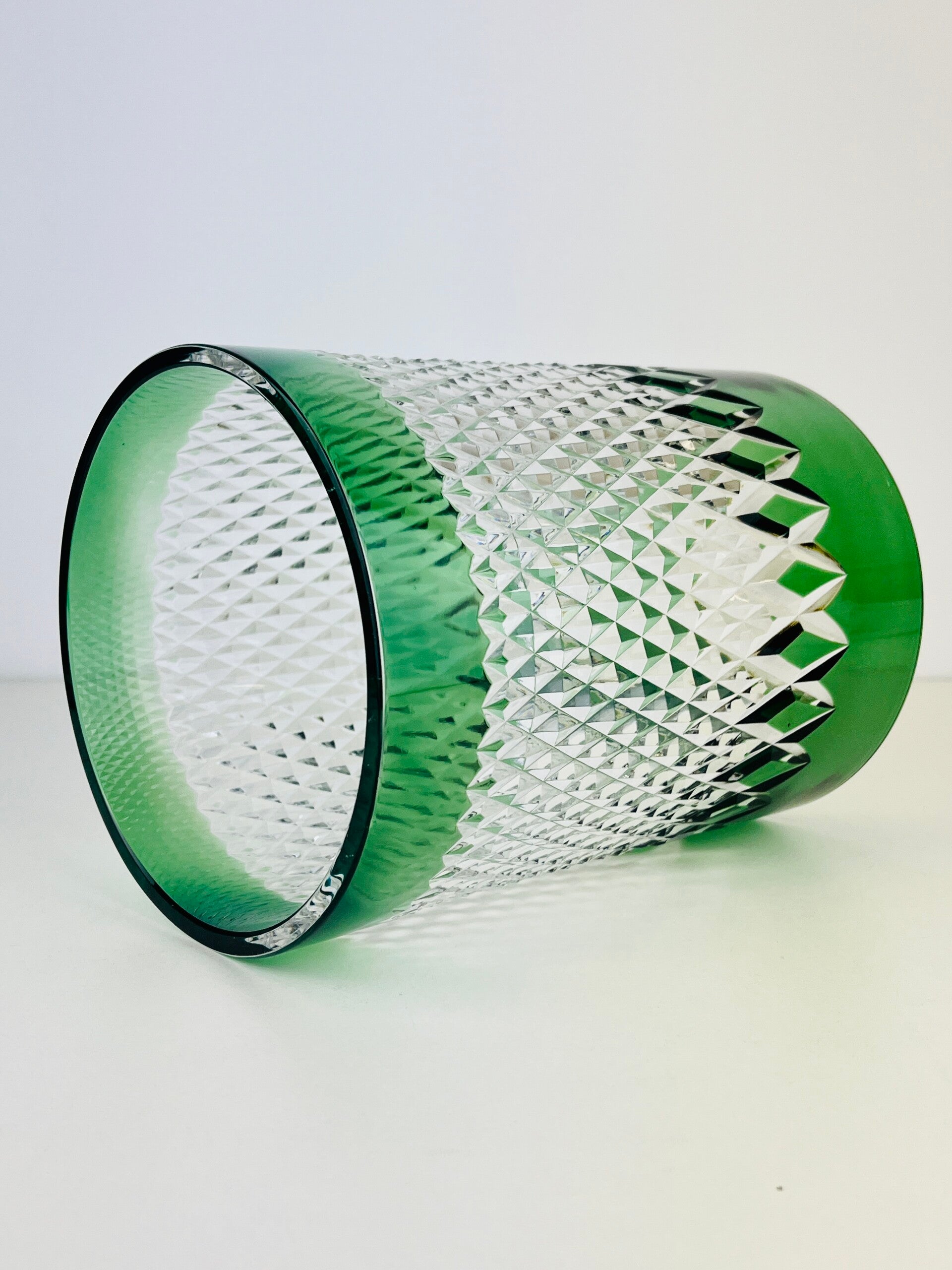 Green crystal table lamp by Val Saint Lamber, ype Linares from the 60s.