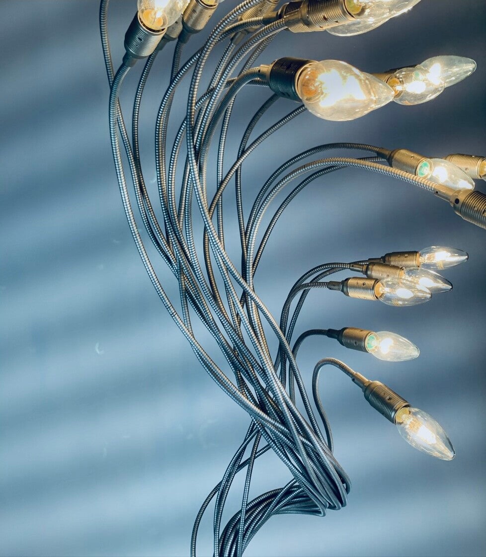 Dimmable Sottovento Floor lamp with 16 flexible arms that can be bent into any desired position. The arms are produced from nickel.