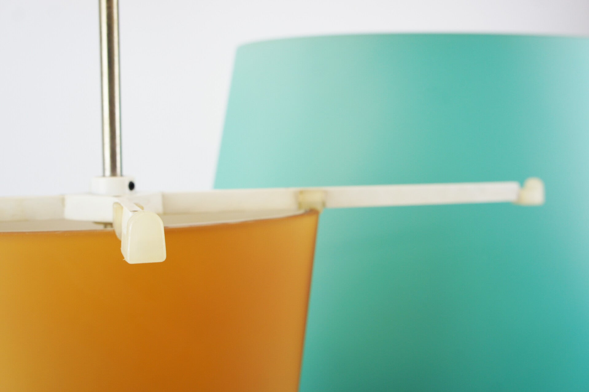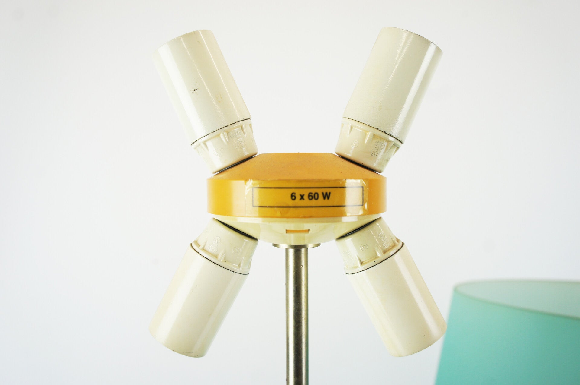4 light points distribute the light from under the green shade, two light points are installed in the orange base