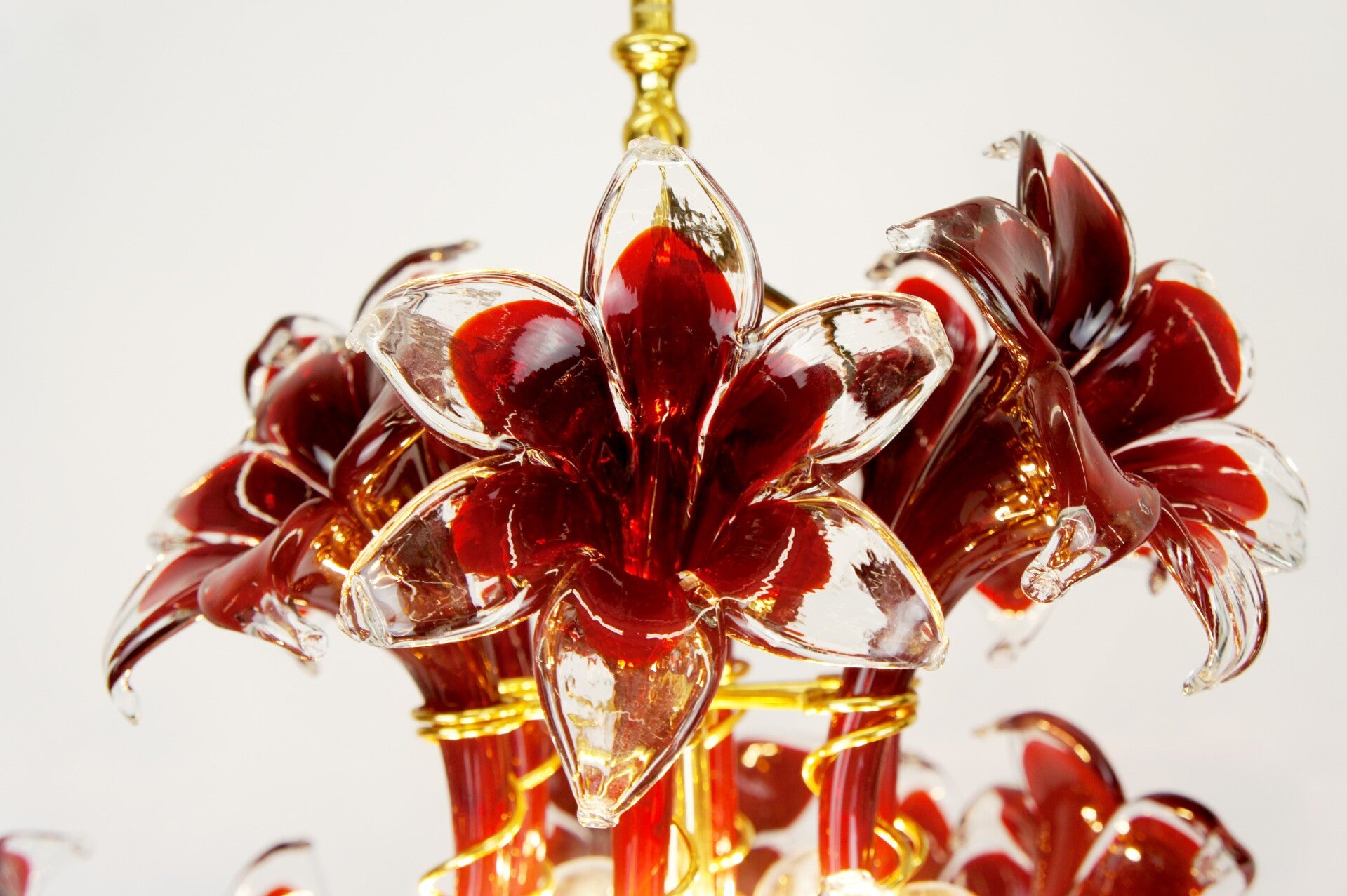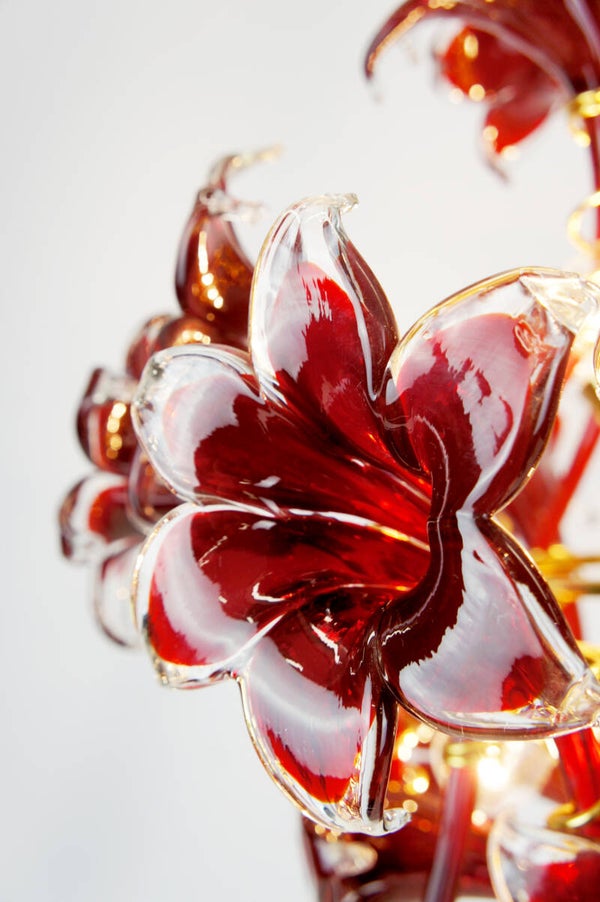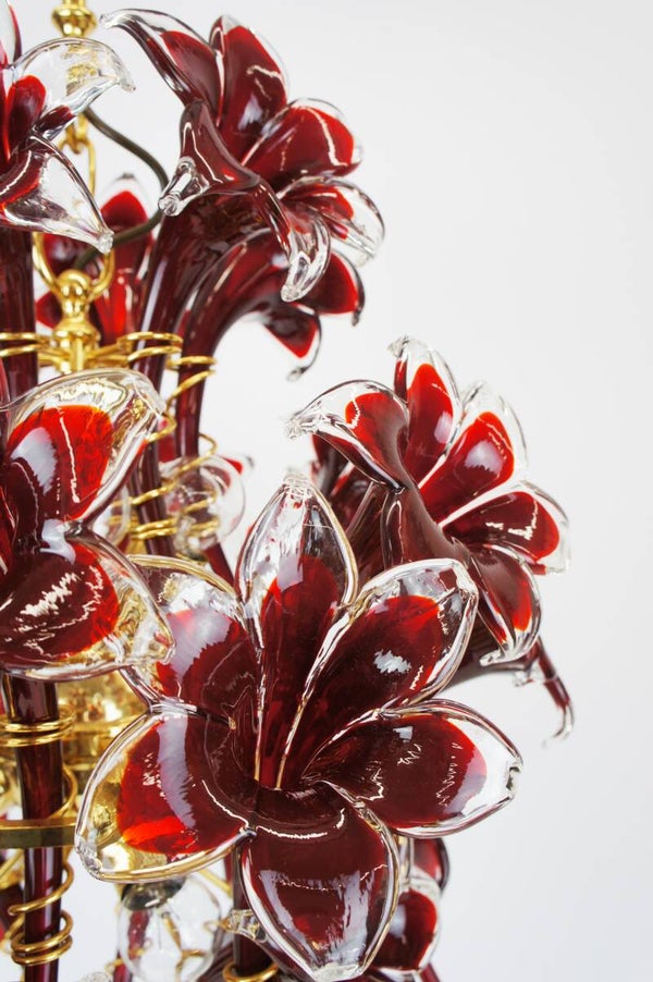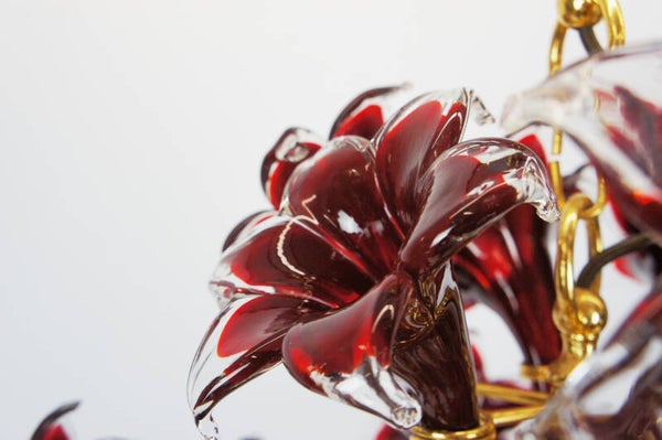 Franco Luce - Italian Red Murano Flowers - Chandelier