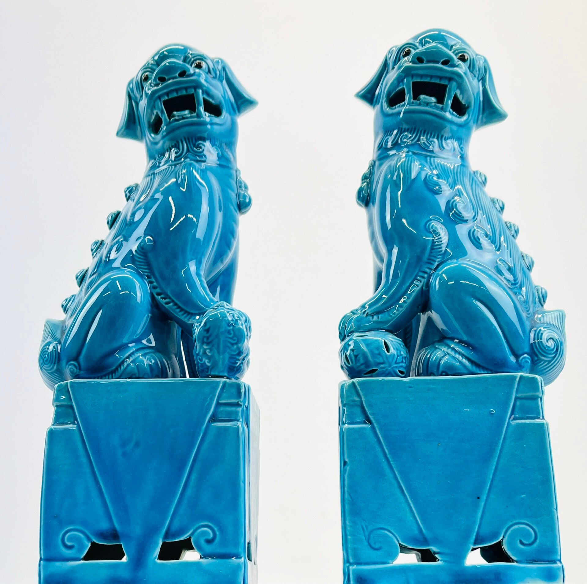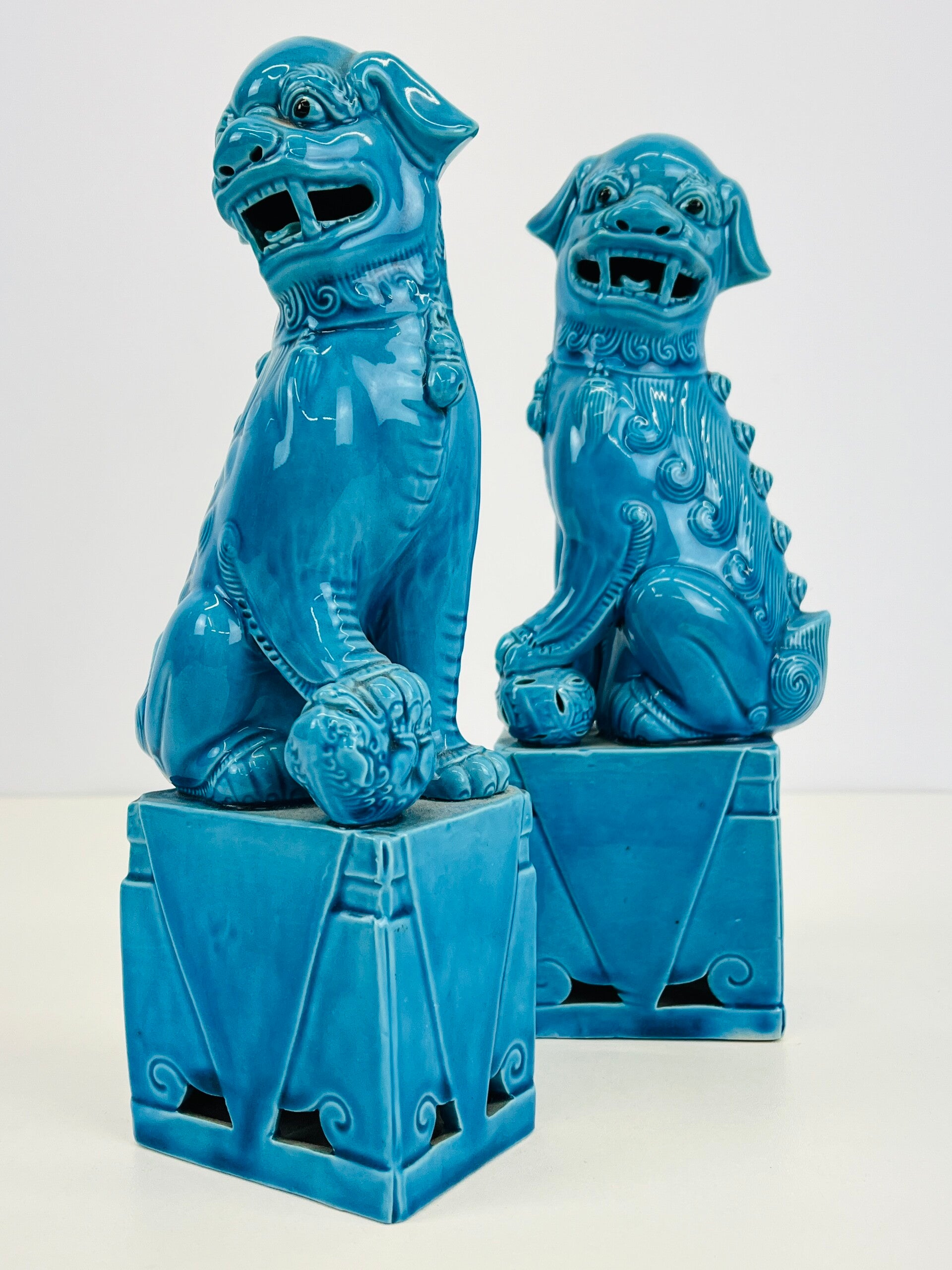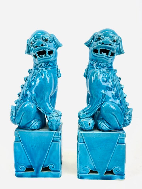 Foo Dogs - Nice Pair of blue Chinese Temple Lions - Early 20 century