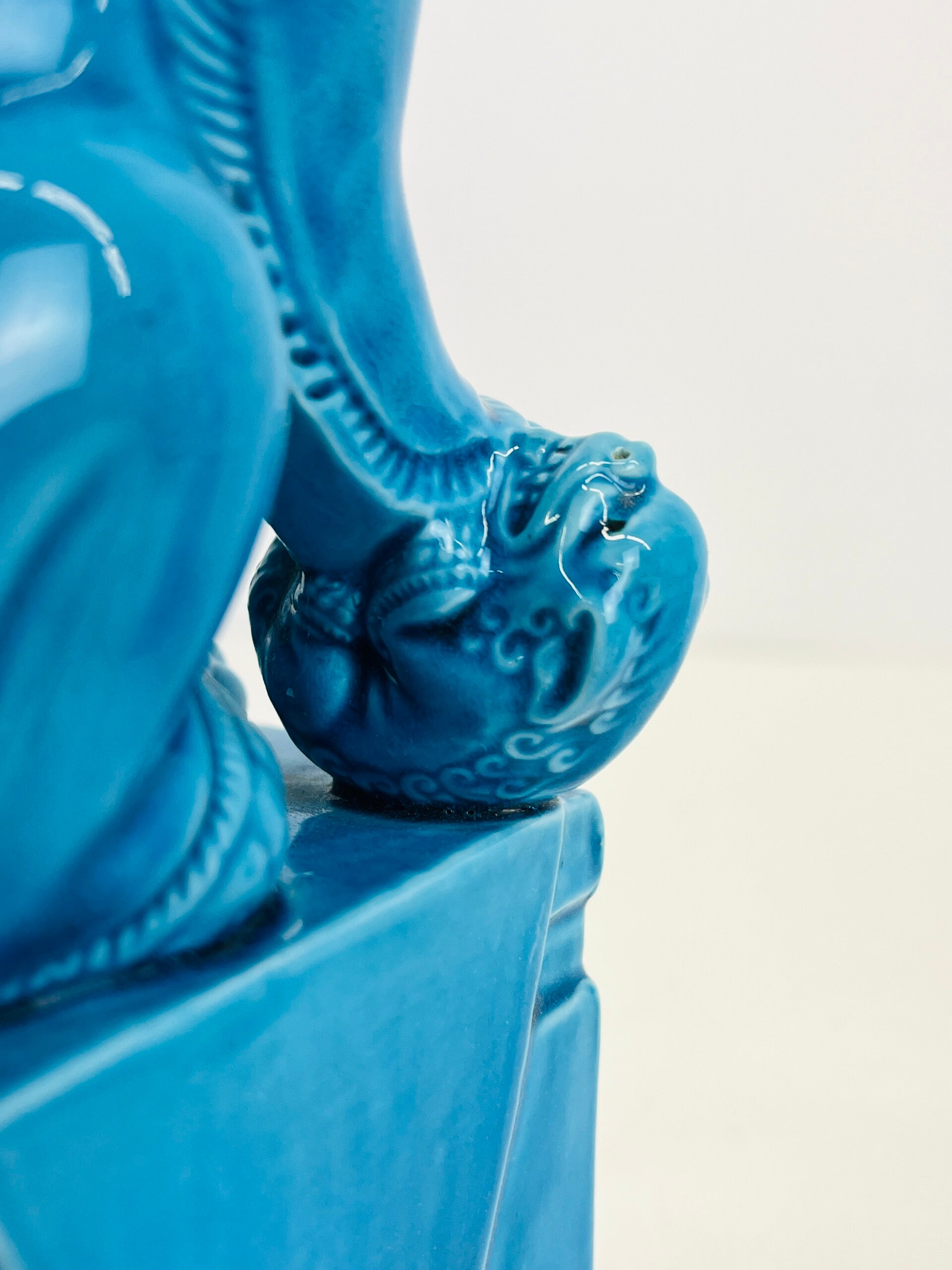 A finely detailed pair of Chinese temple lions, in blue glaze. The numerous details make this pair an exceptional pair from the first half of the 20th century.